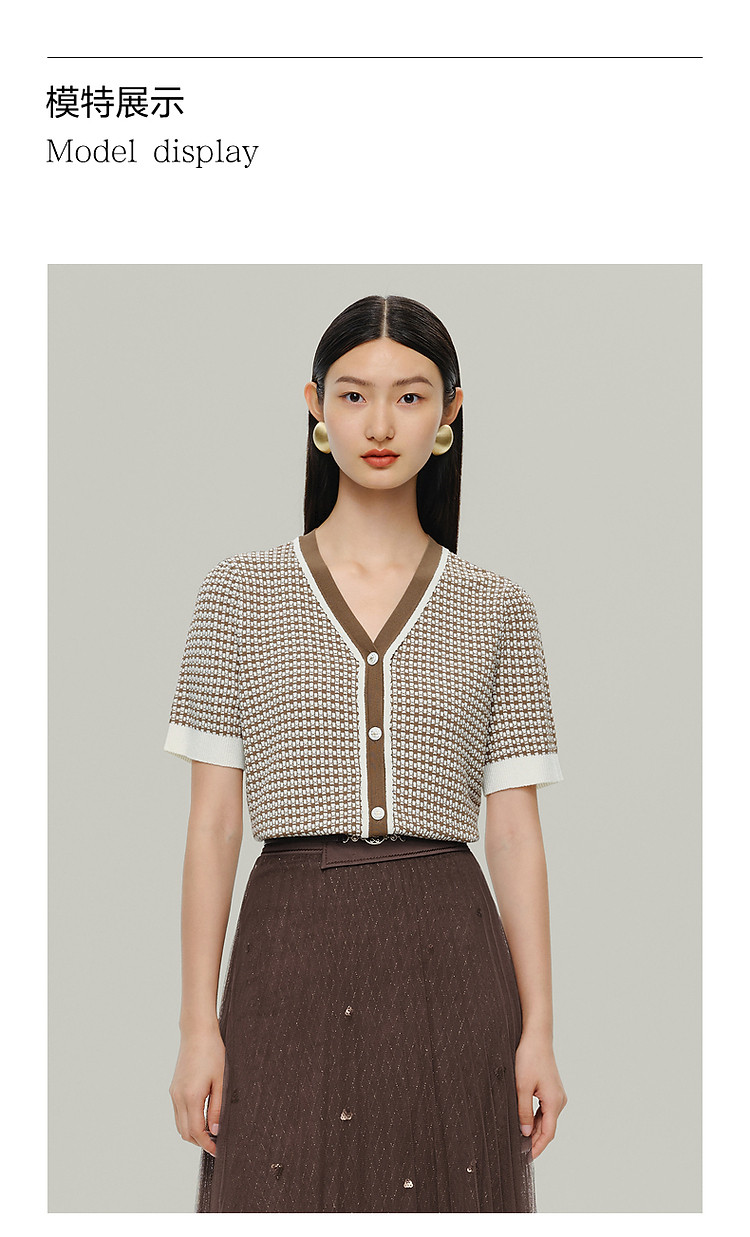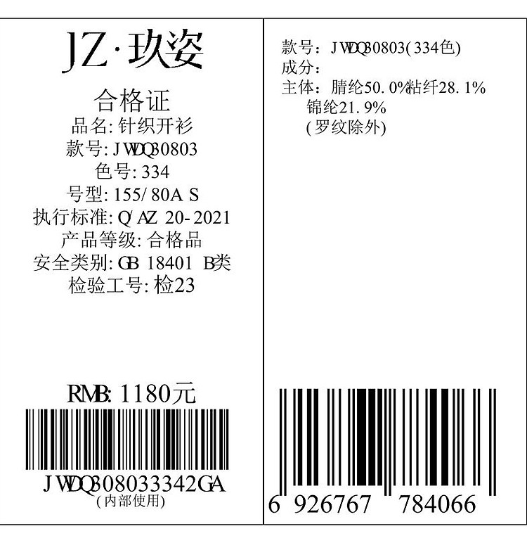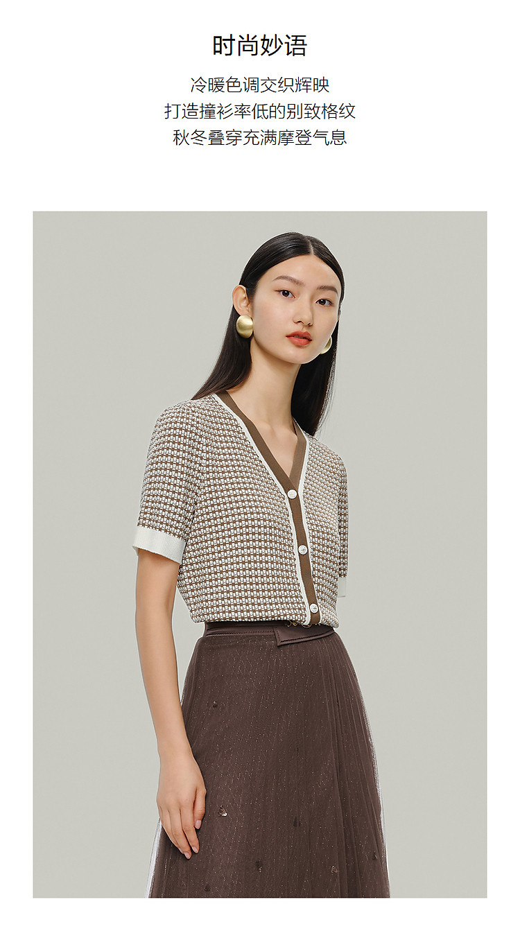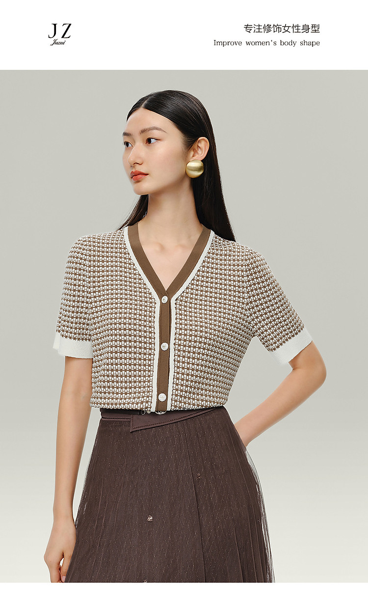 商品名称:商场同款JZ玖姿肌理格纹直筒针织开衫女秋JWDQ30803 929356