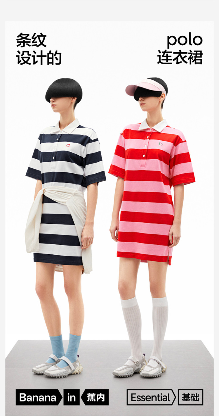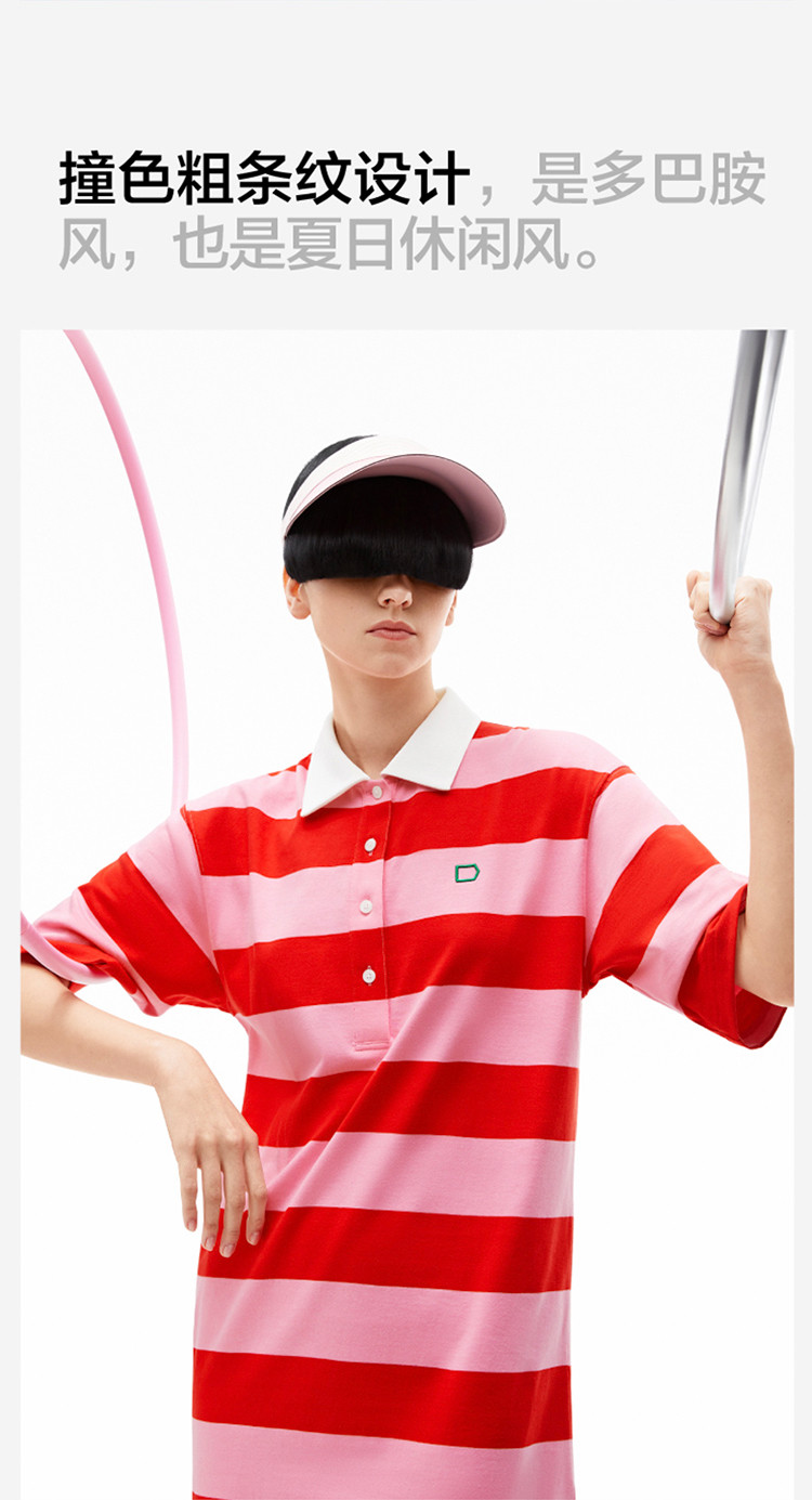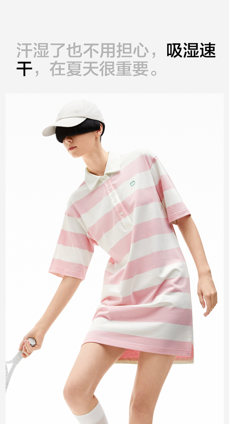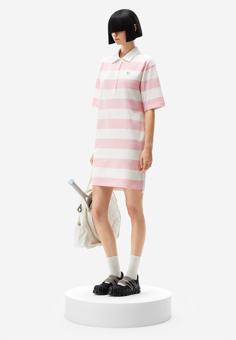 503Go女士条纹POLO裙100%棉透气休闲宽松翻领连衣裙 710981