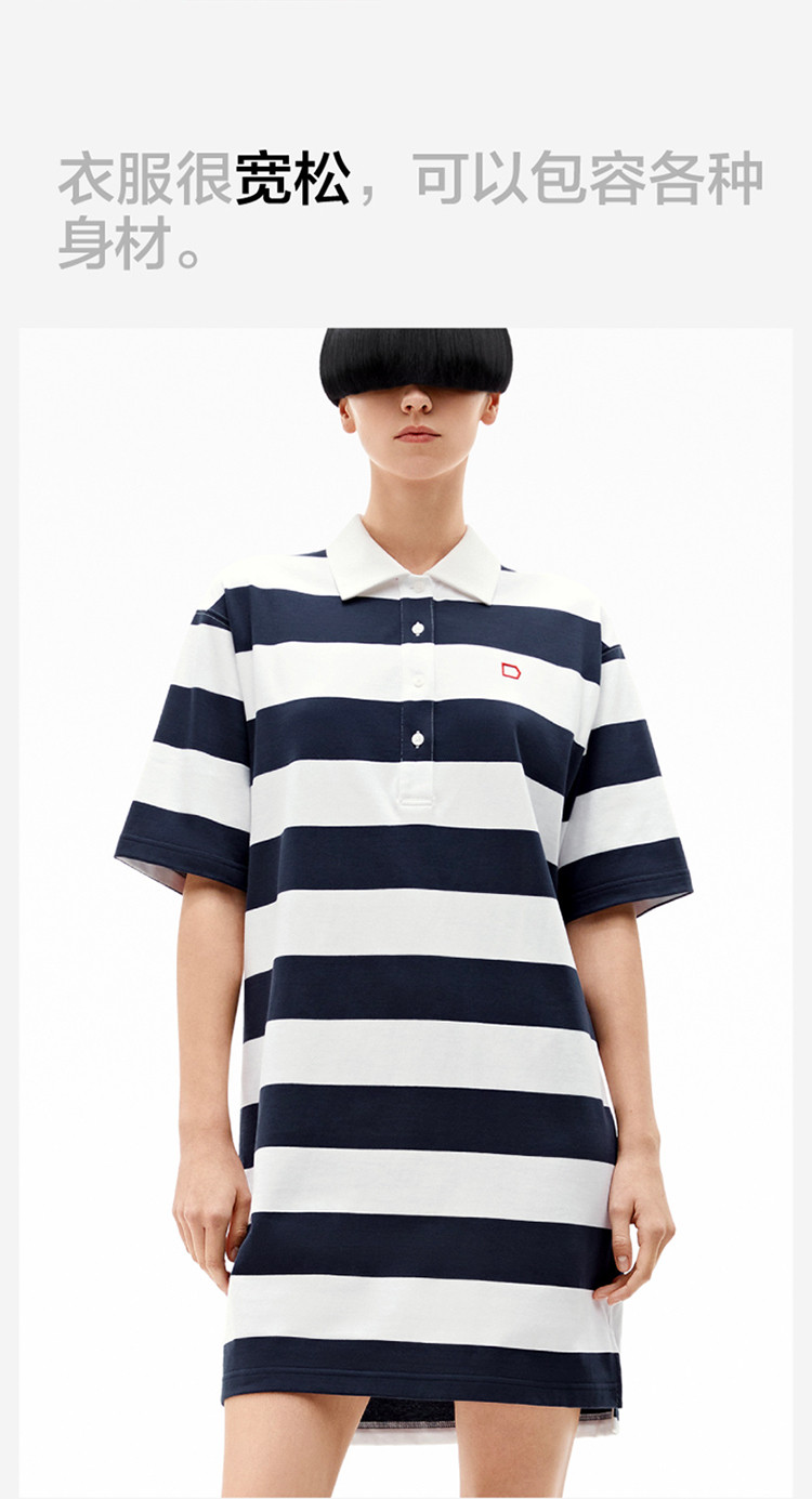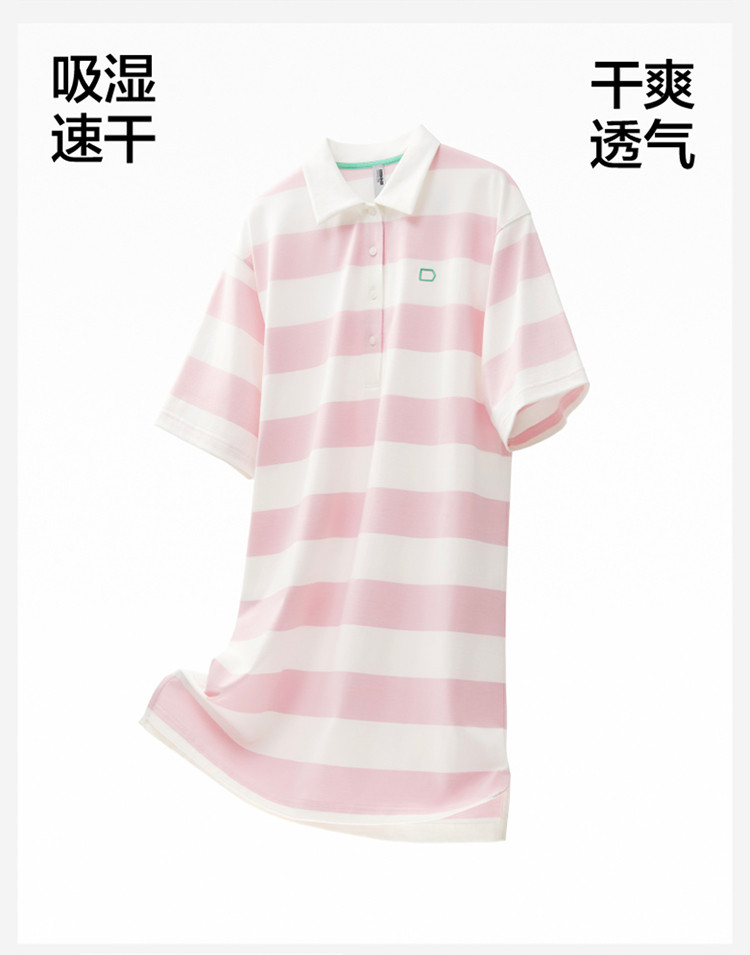 商品名称:503Go女士条纹POLO裙100%棉透气休闲宽松翻领连衣裙 710981