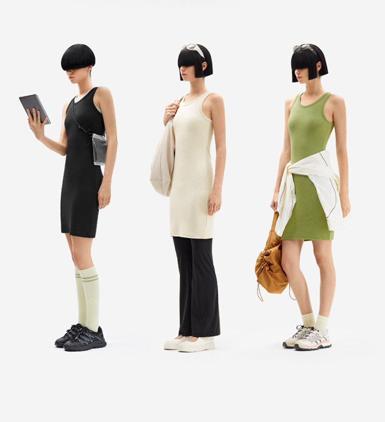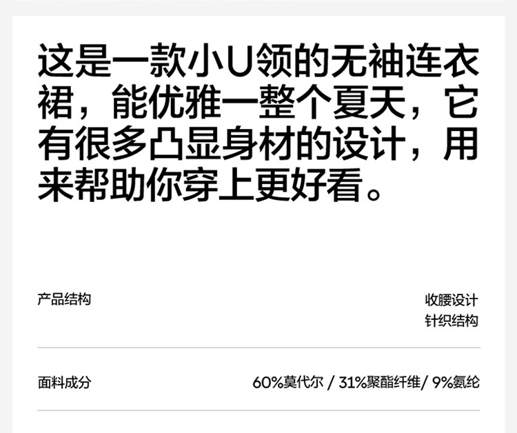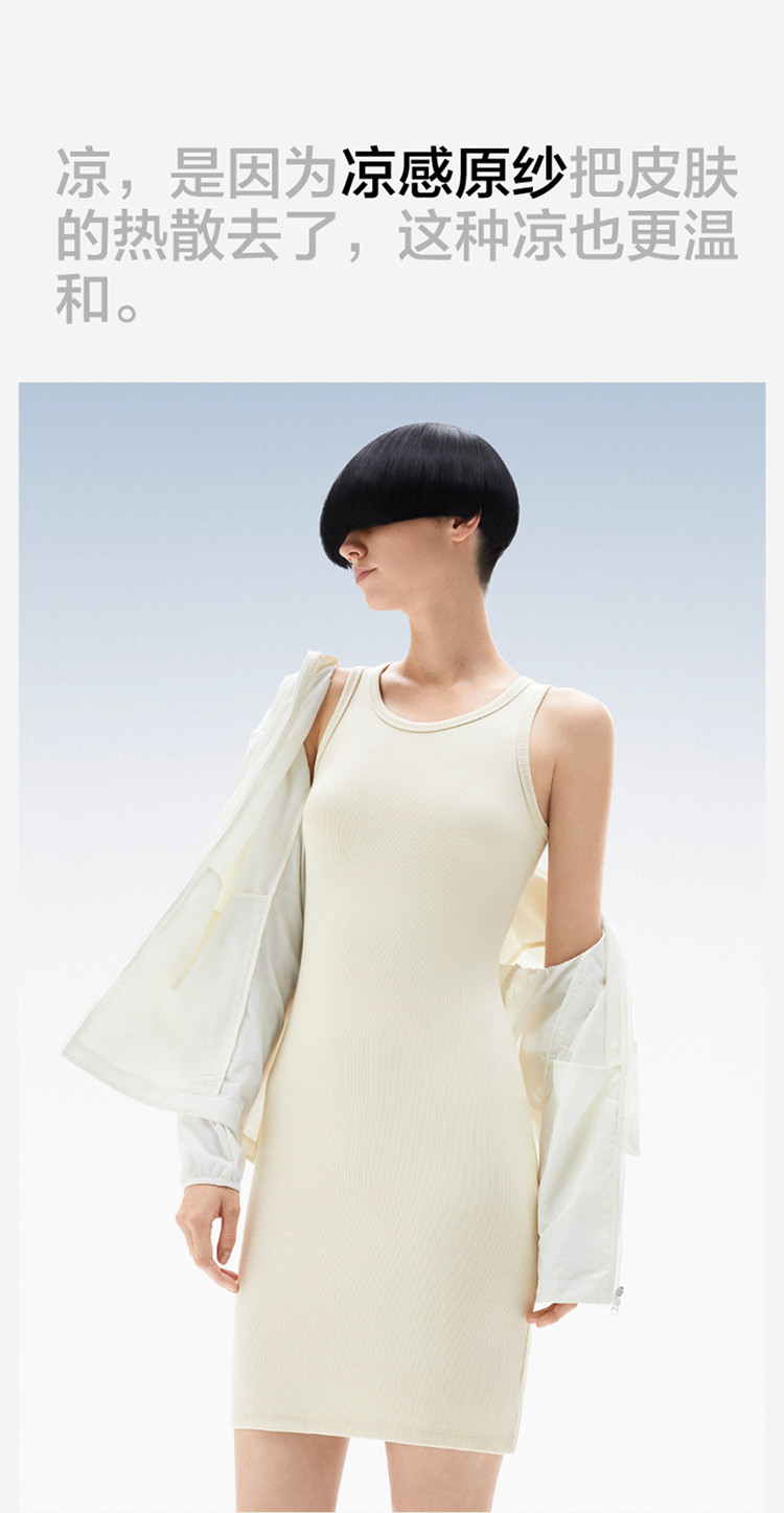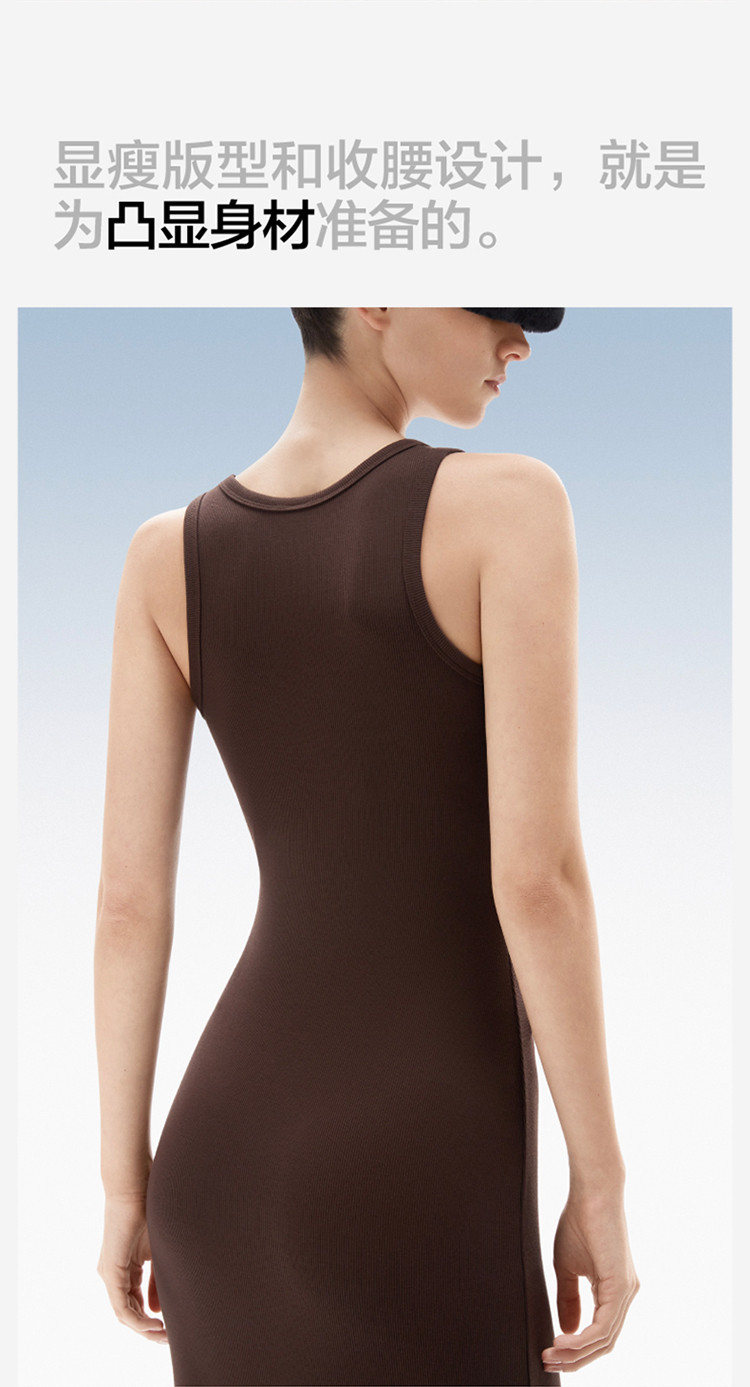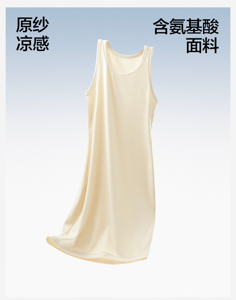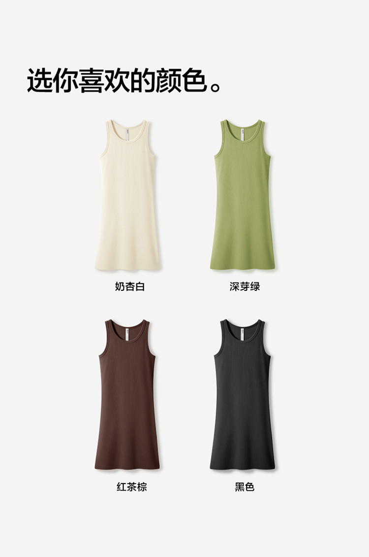 商品名称:凉皮501Cool中长款罗纹无袖有弹力修身显瘦凉感U领连衣裙 293061