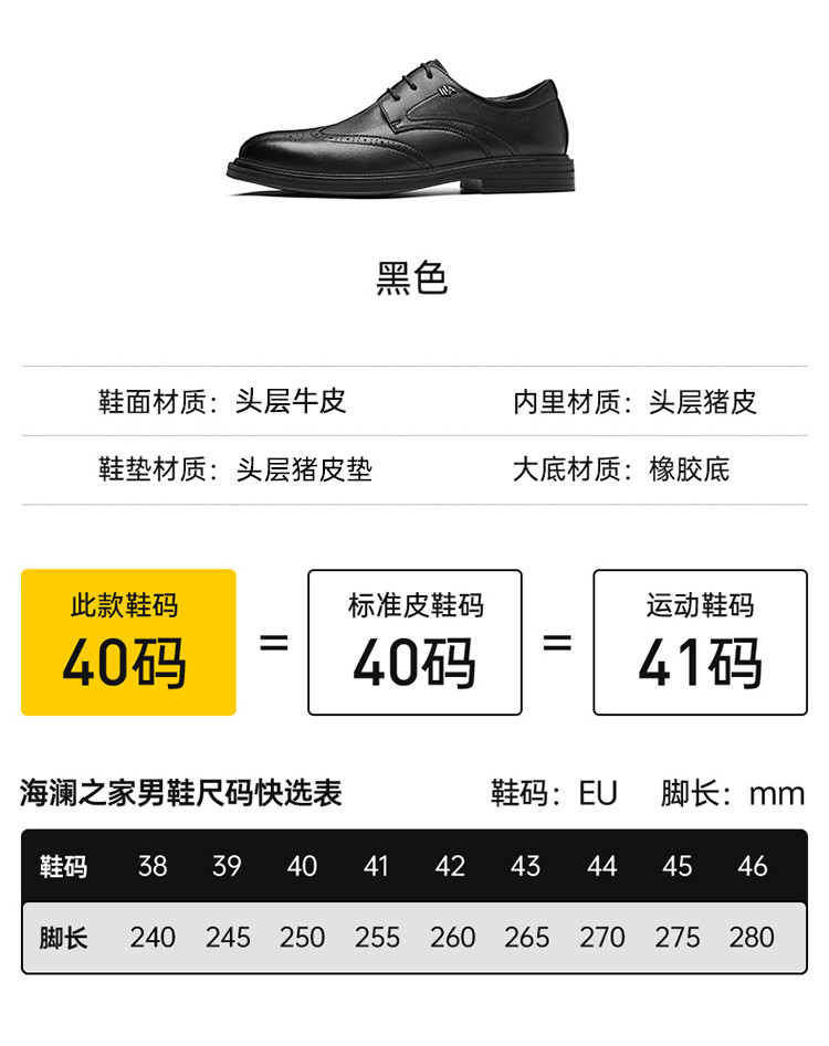 商品名称:【牛头层革】男士正装真皮鞋子商务休闲皮鞋百搭舒适男鞋 630287