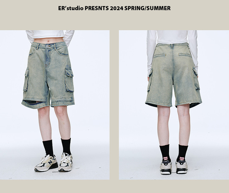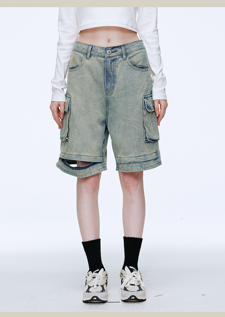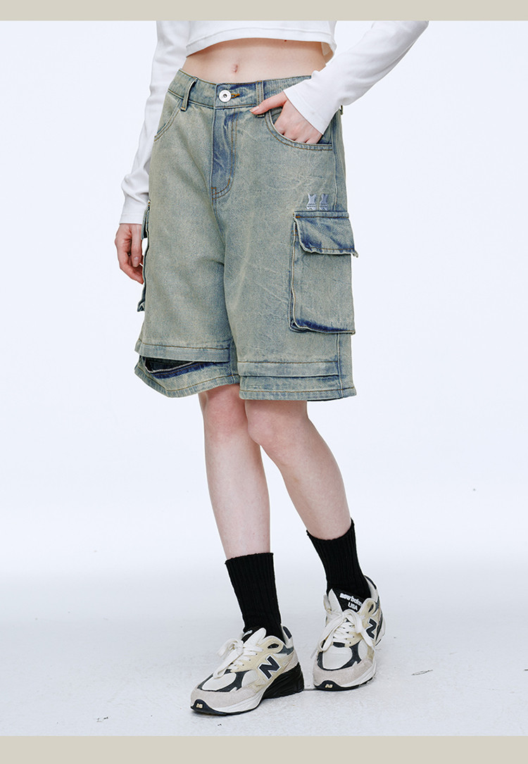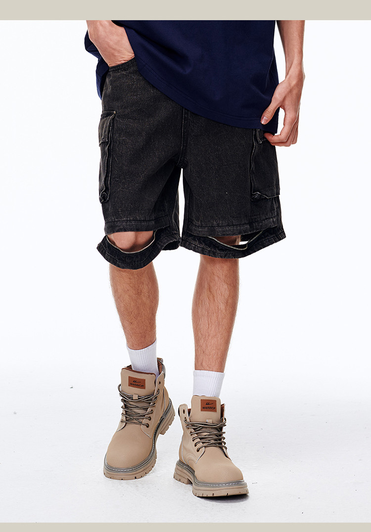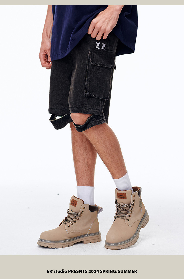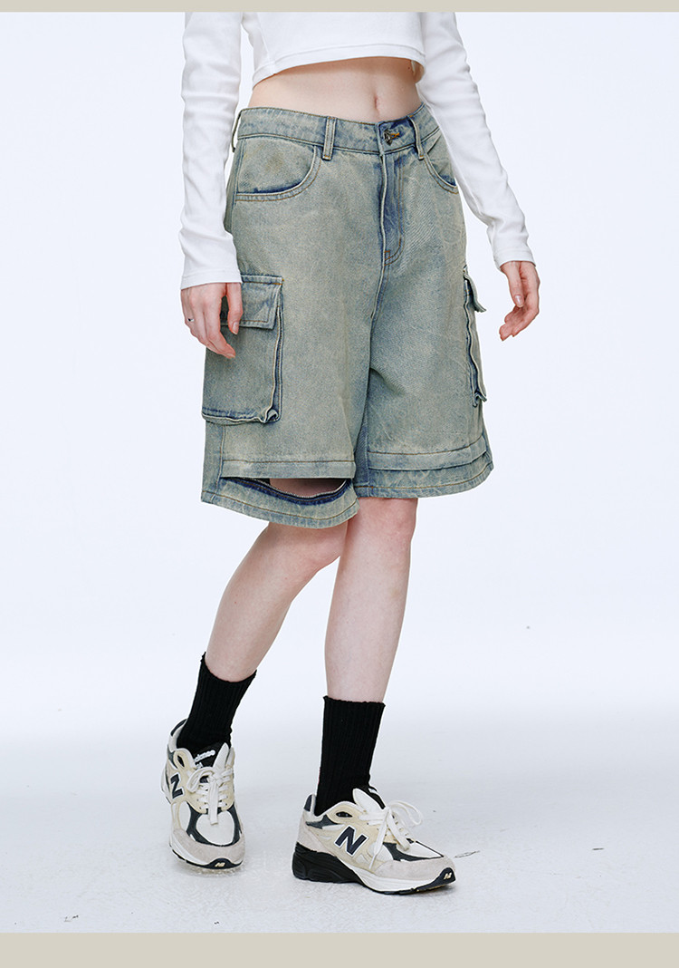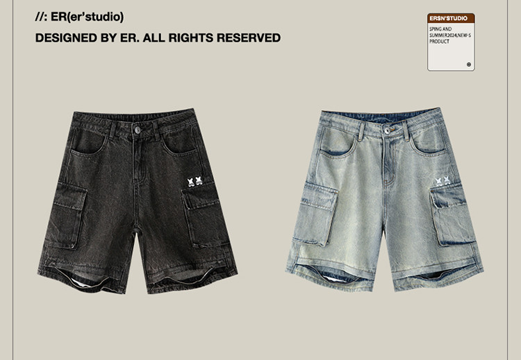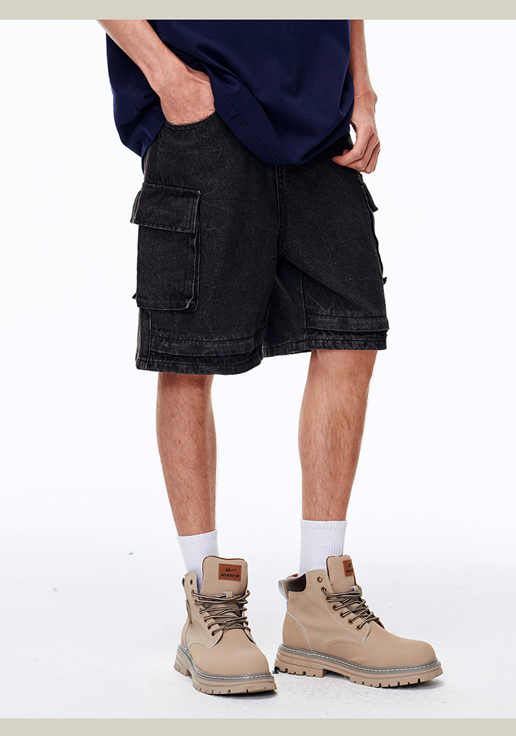 美式潮牌休闲牛仔短裤情侣夏季宽松多口袋工装五分中裤 630295