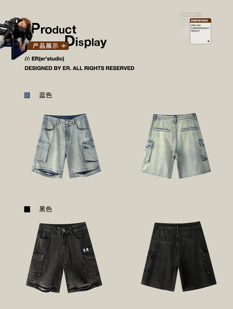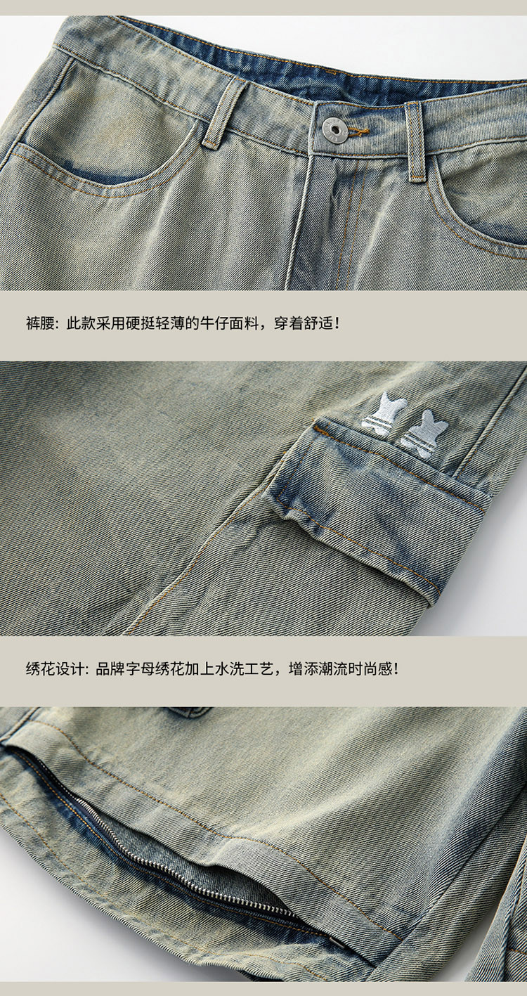 商品名称:美式潮牌休闲牛仔短裤情侣夏季宽松多口袋工装五分中裤 630295