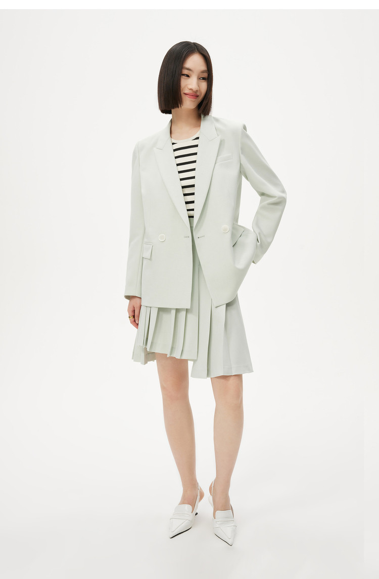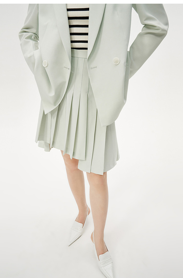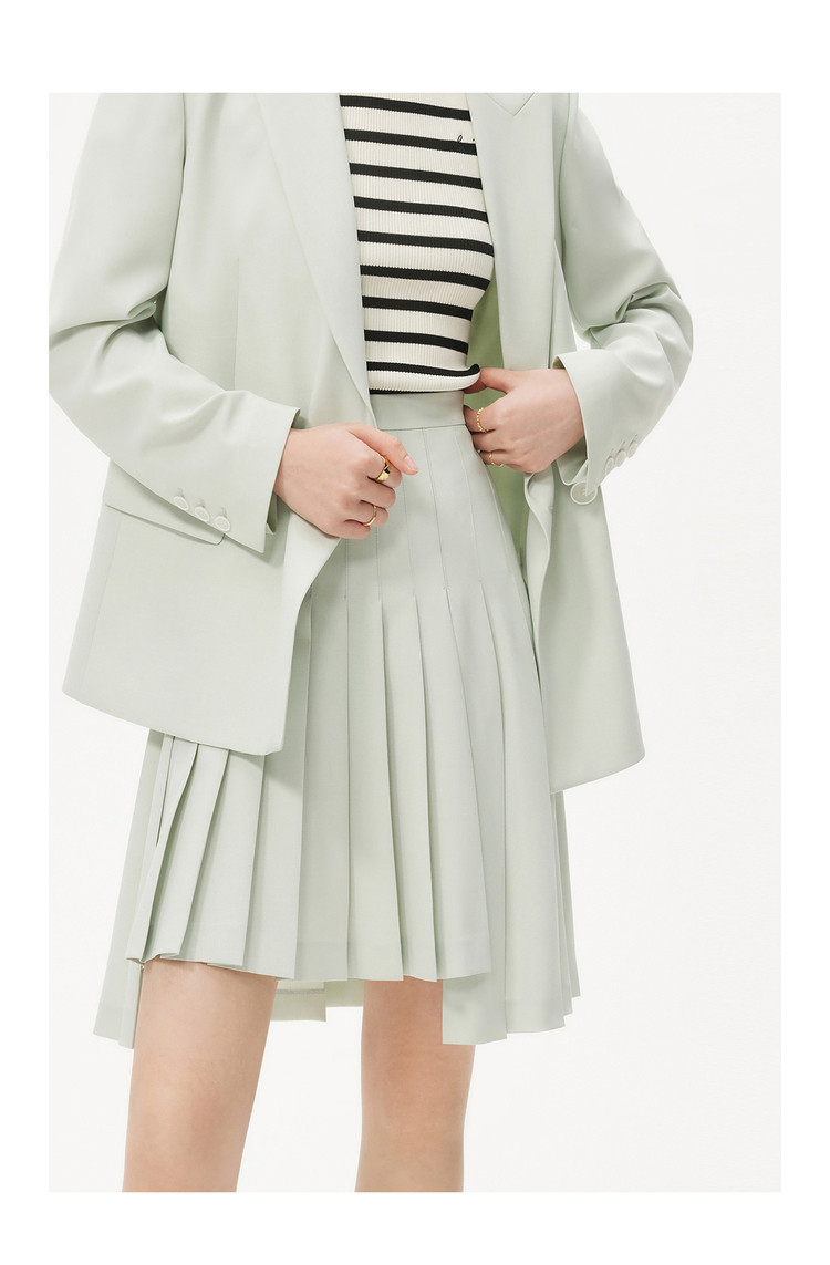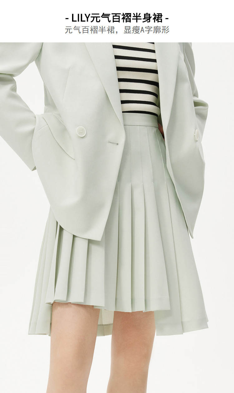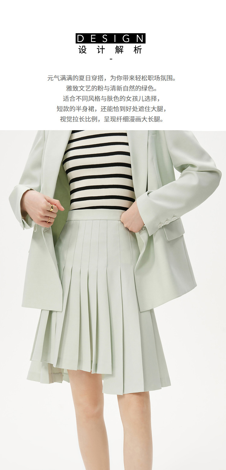 商品名称:【薄荷曼波】半身裙女夏季元气学院减显瘦jk风A字高腰款百褶裙 046107