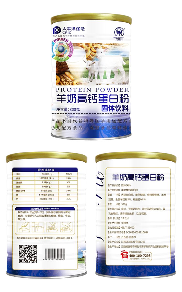 商品名称:羊奶高钙蛋白粉羊奶粉正品成年中老年补钙增强体质营养补充【300克/罐*3罐】