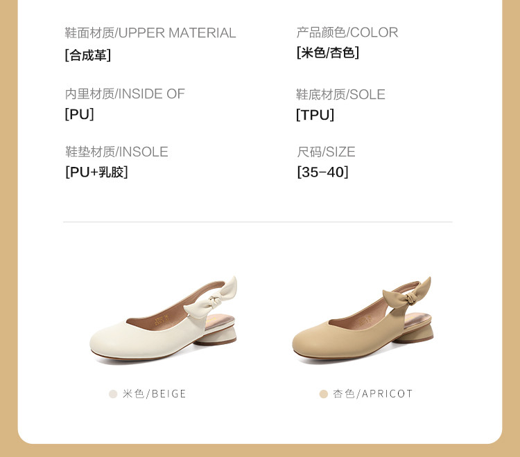 商品名称:【可爱蝴蝶结】简约凉鞋女百搭小个子夏季女鞋包头女凉鞋女士凉鞋 023168