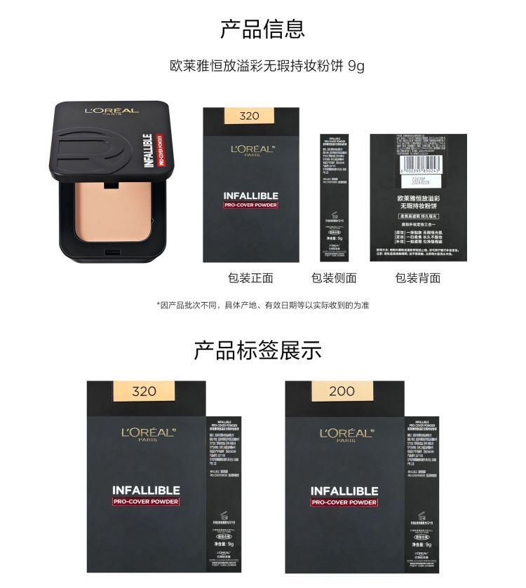 商品名称:L'oreal/欧莱雅 磨皮大王粉饼 #200#320 持妆控油定妆遮瑕