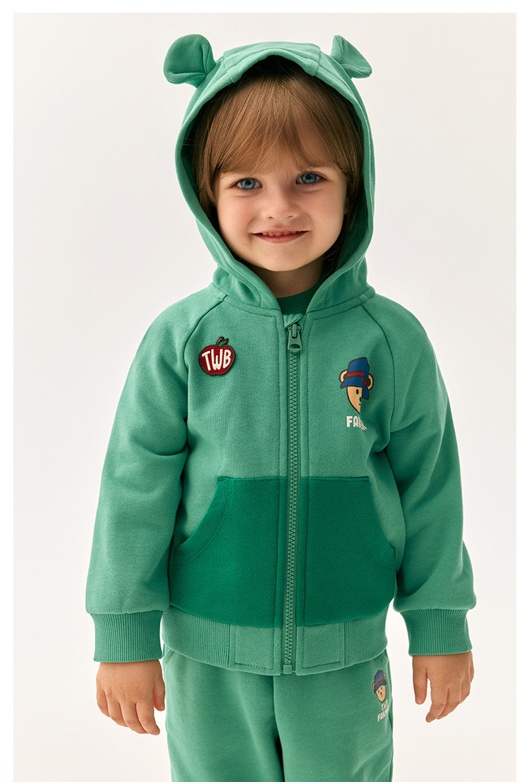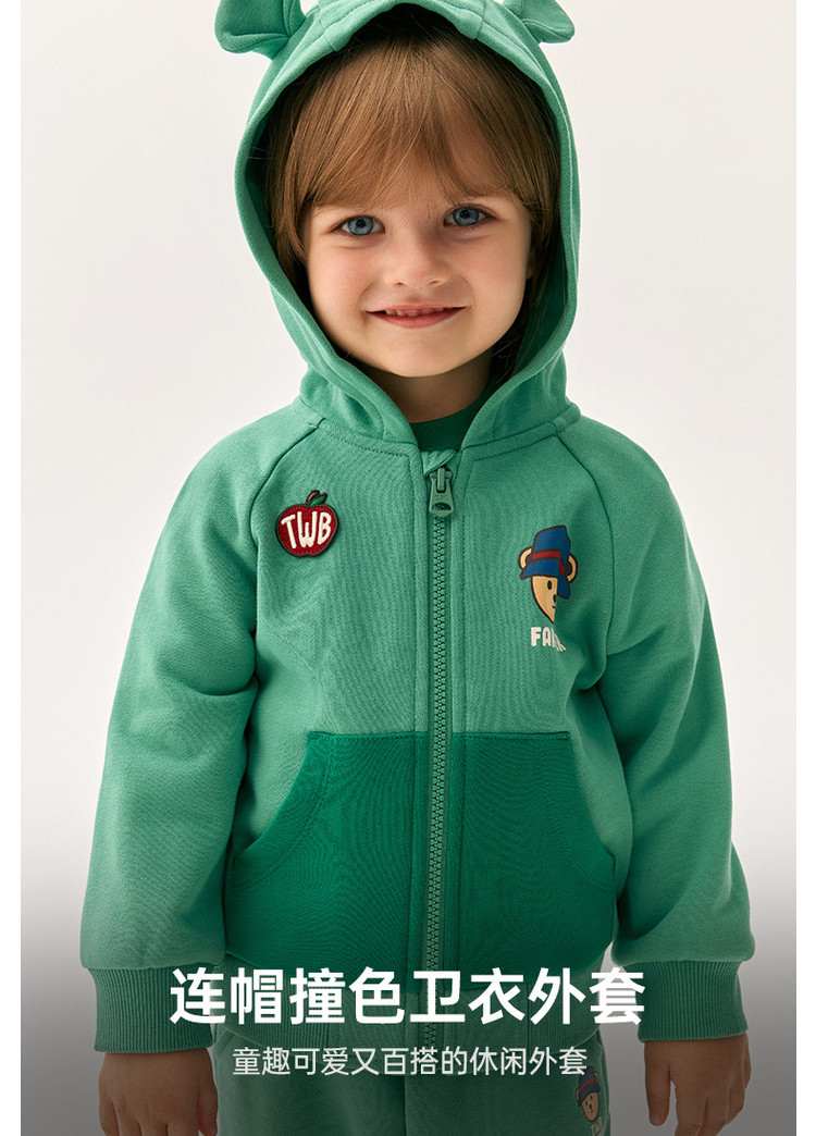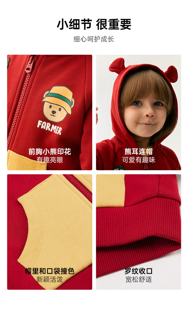 商品名称:小熊童装秋季男女宝宝连帽撞色针织外套 594753