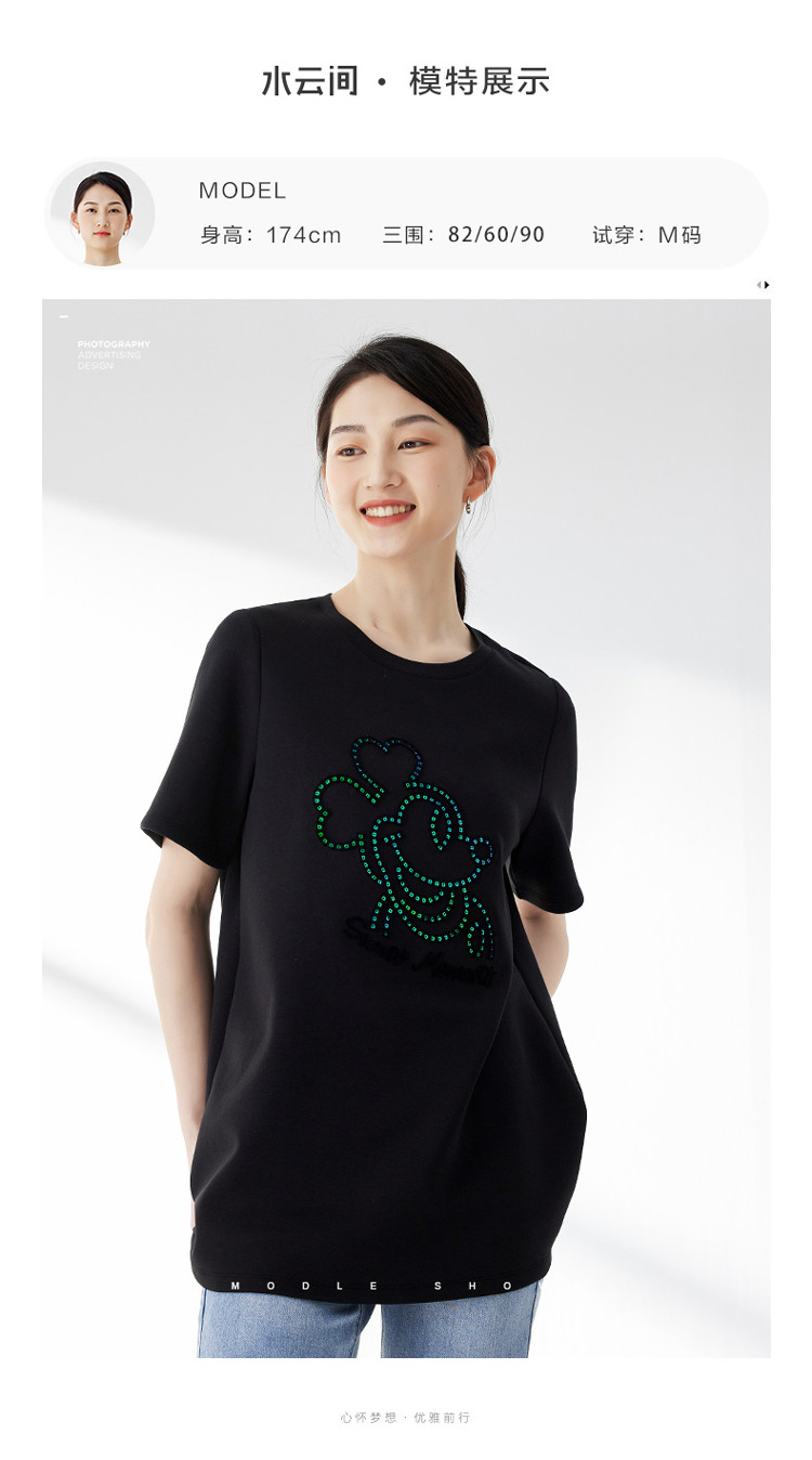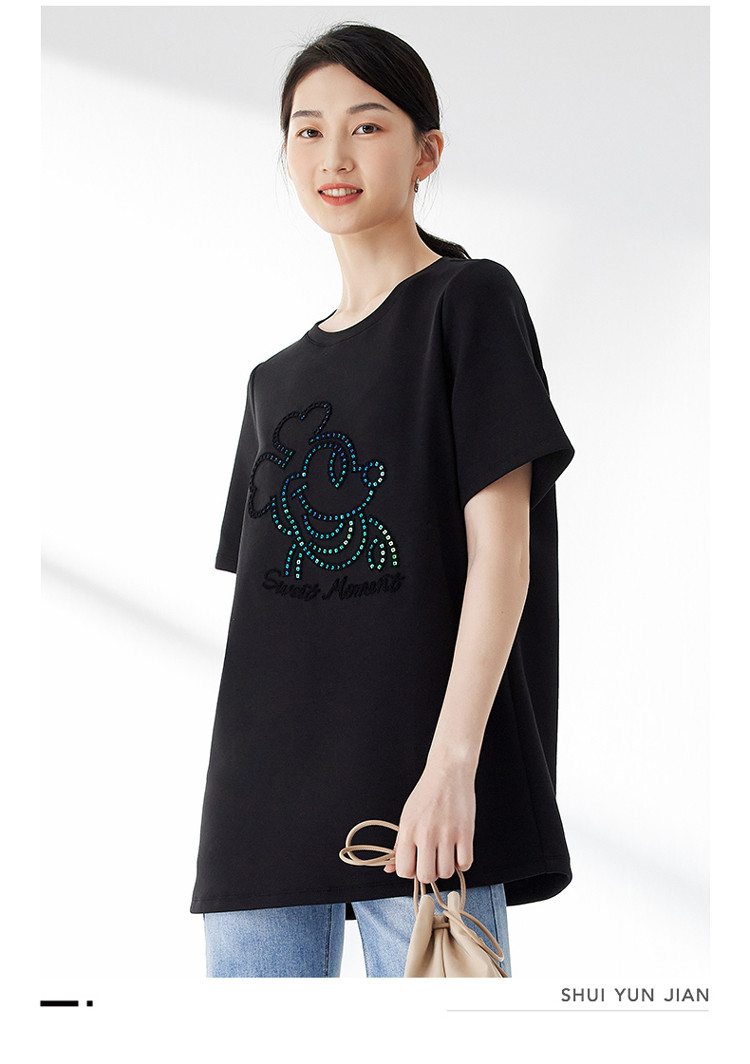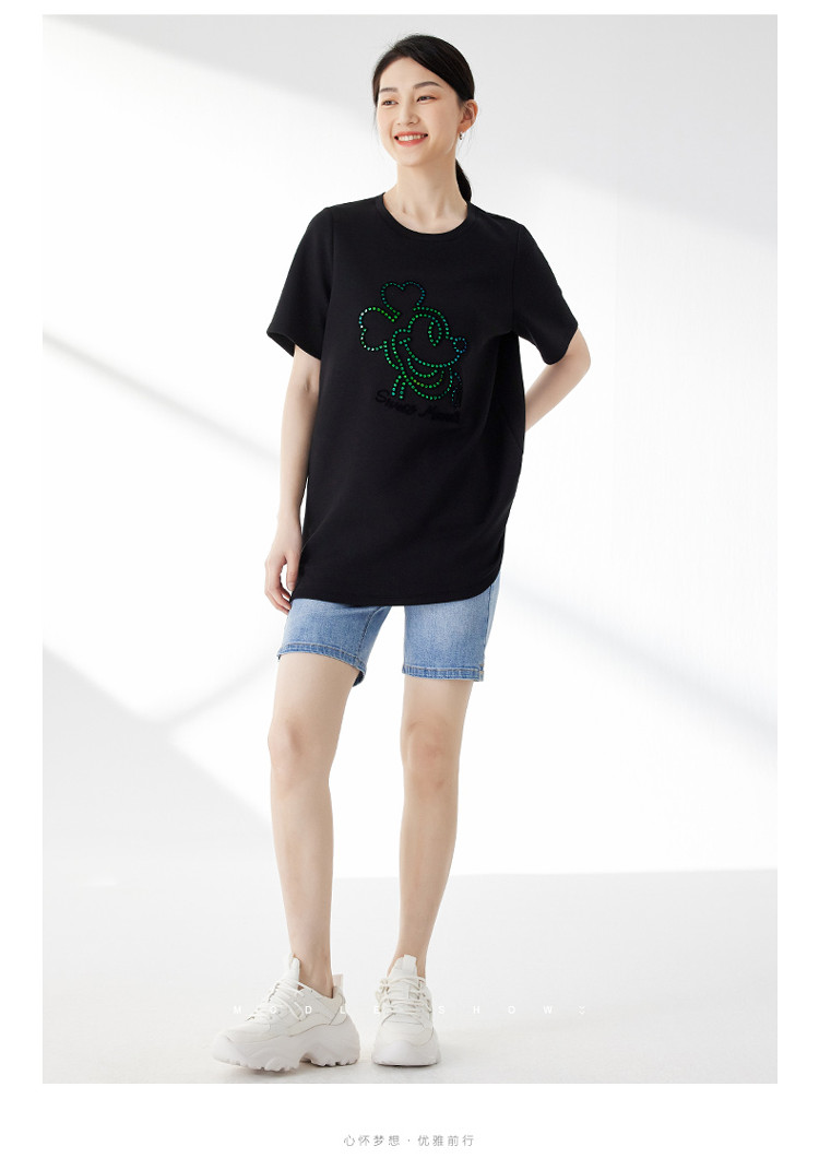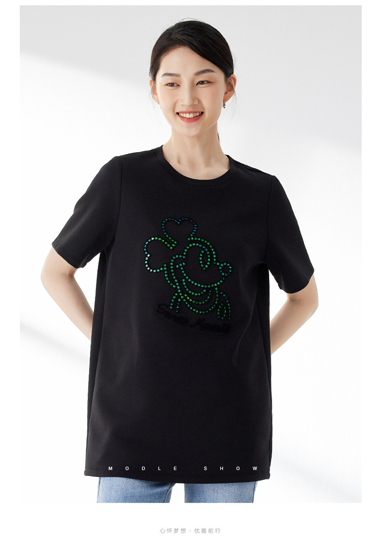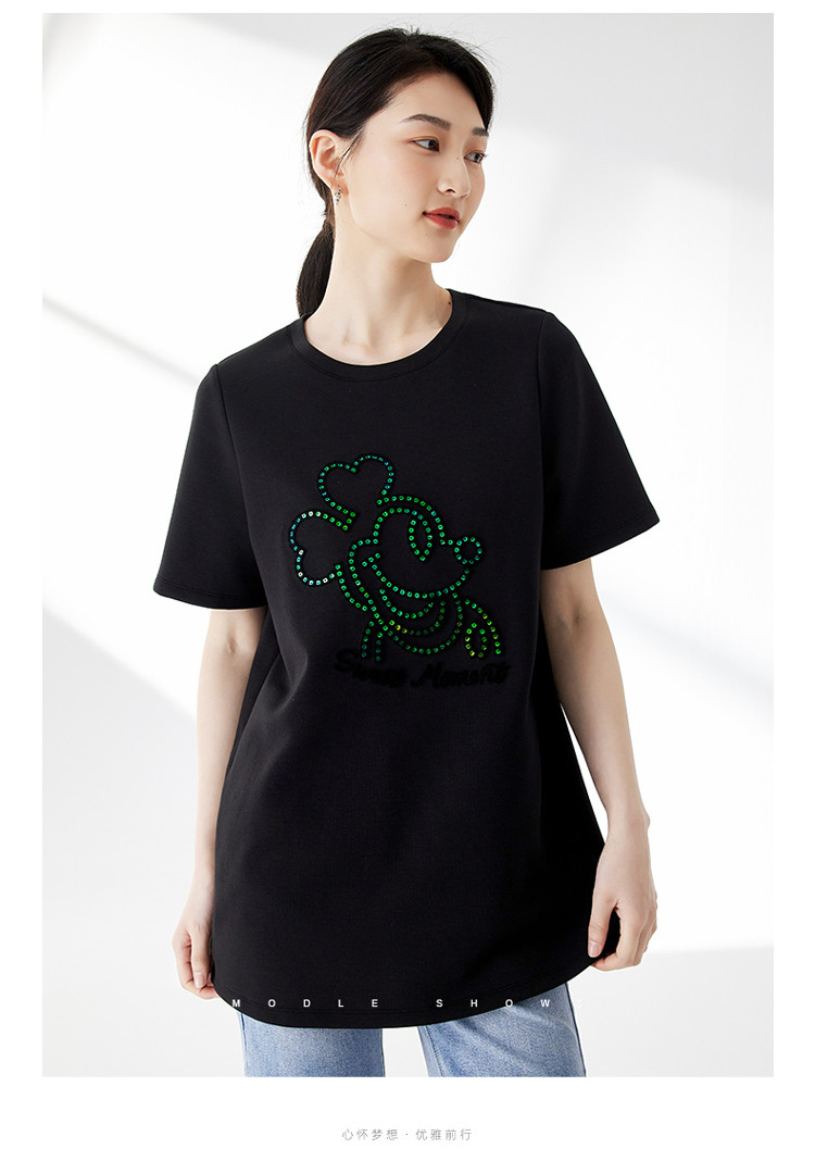 商品名称:宽松圆领短袖T恤女夏季长款休闲百搭显瘦卡通T恤女 483139