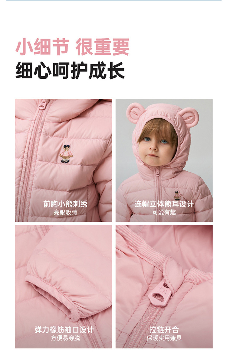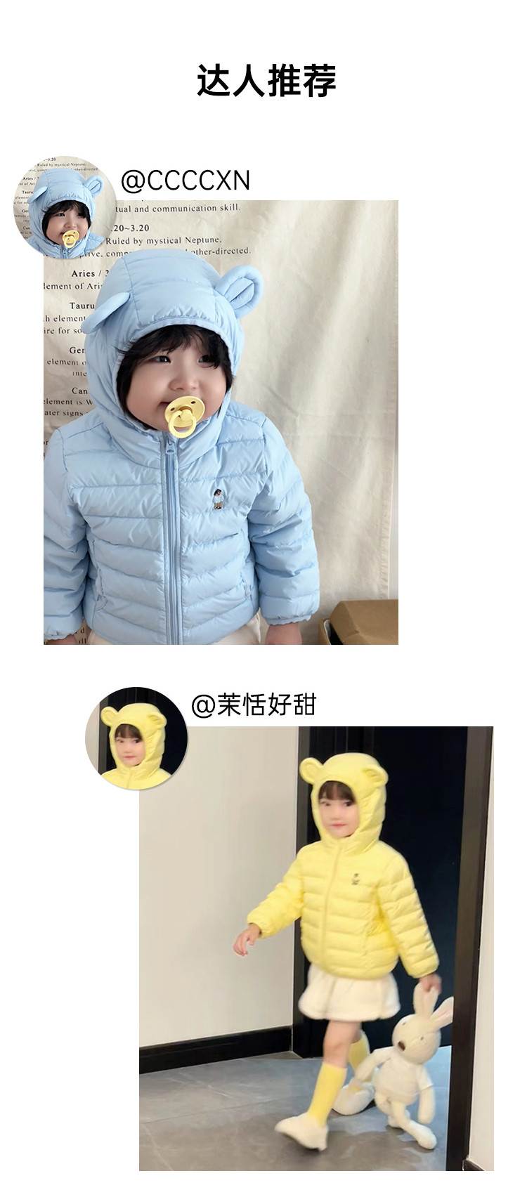 商品名称:【短款连帽羽绒】小熊童装冬季款男女宝宝熊耳连帽羽绒服 014401