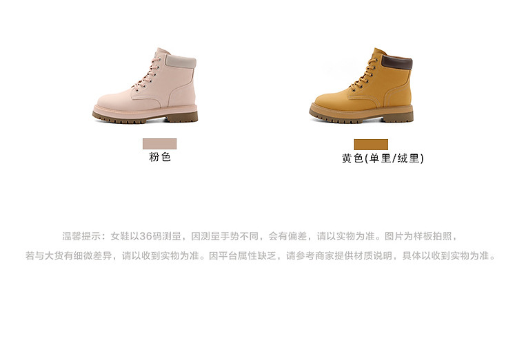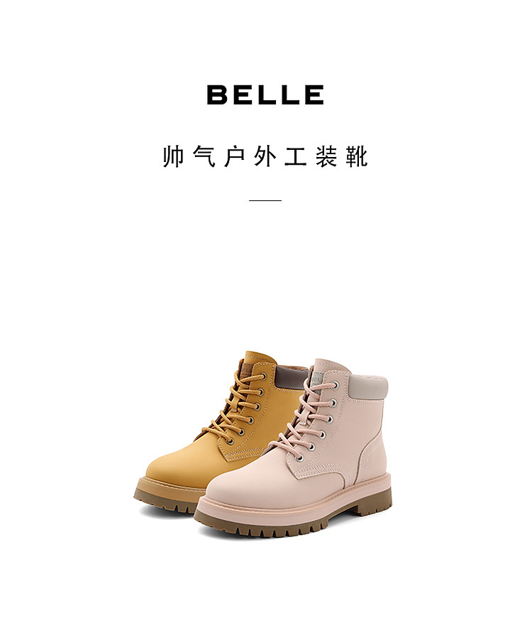 商品名称:百丽大黄靴女靴子短靴厚底马丁靴女款加绒保暖工装靴 162394