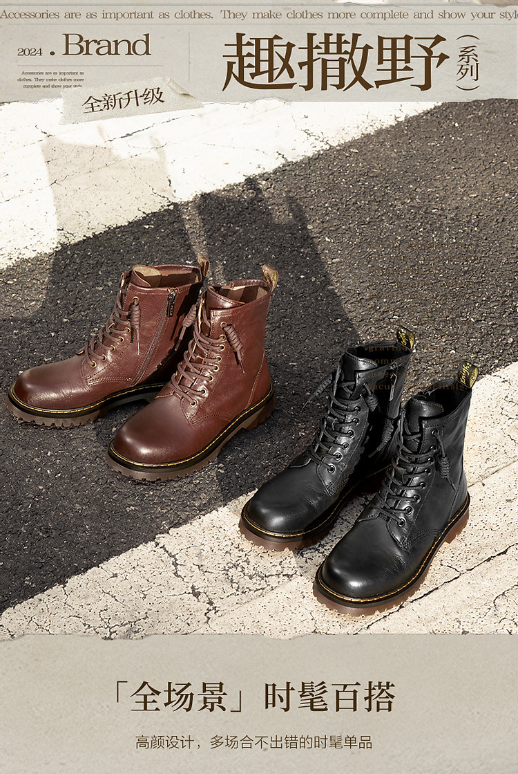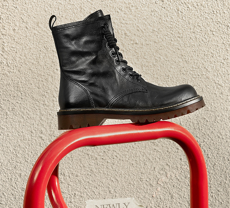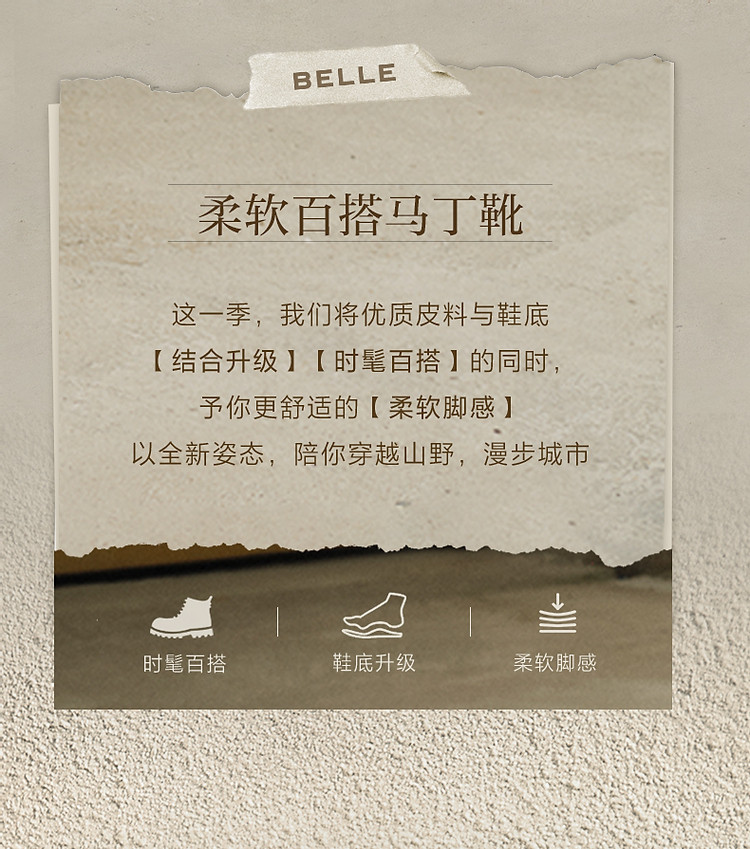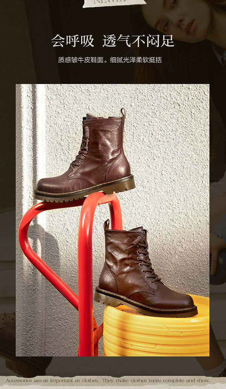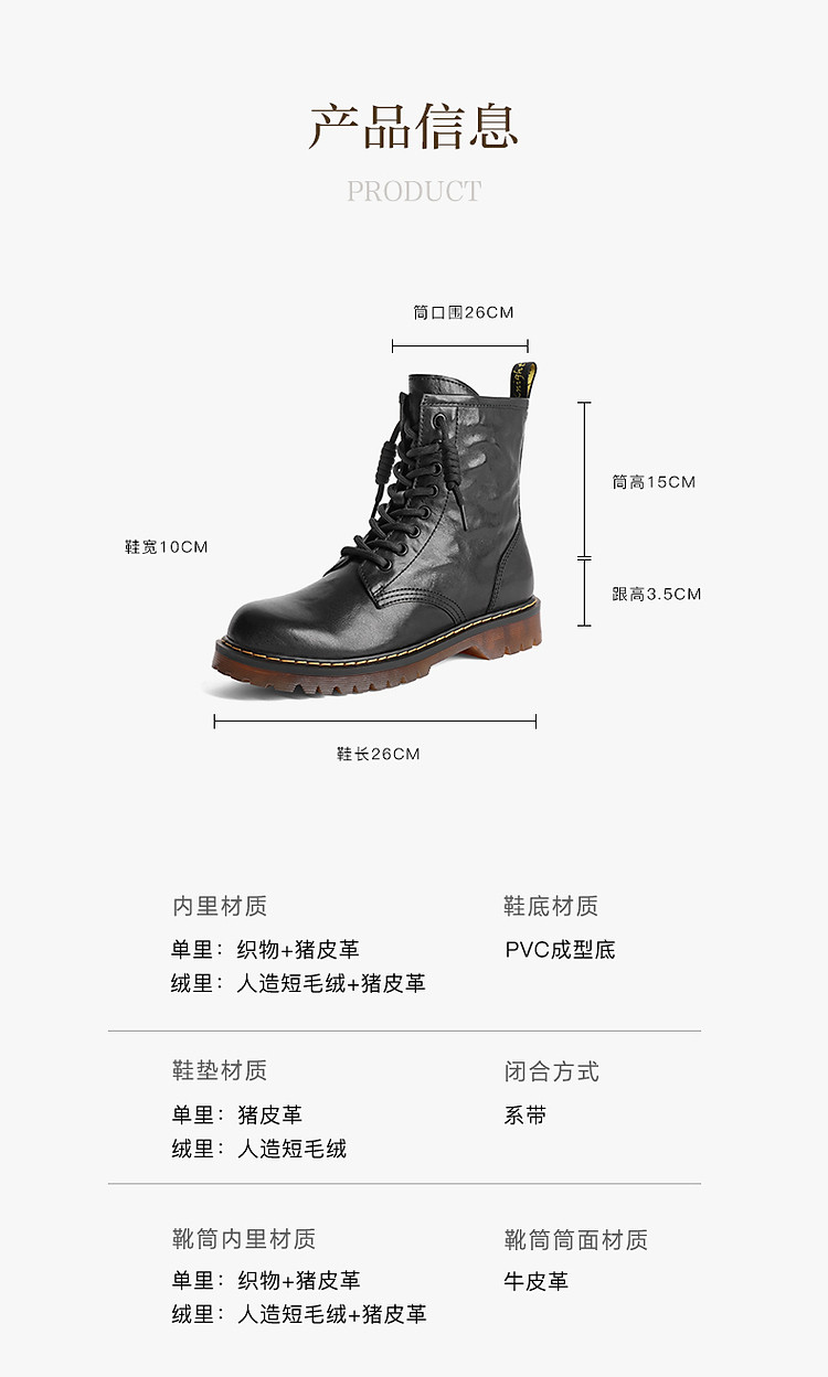 商品名称:百丽女靴子黑色马丁靴复古女靴英伦风短靴软弹鞋底 985882