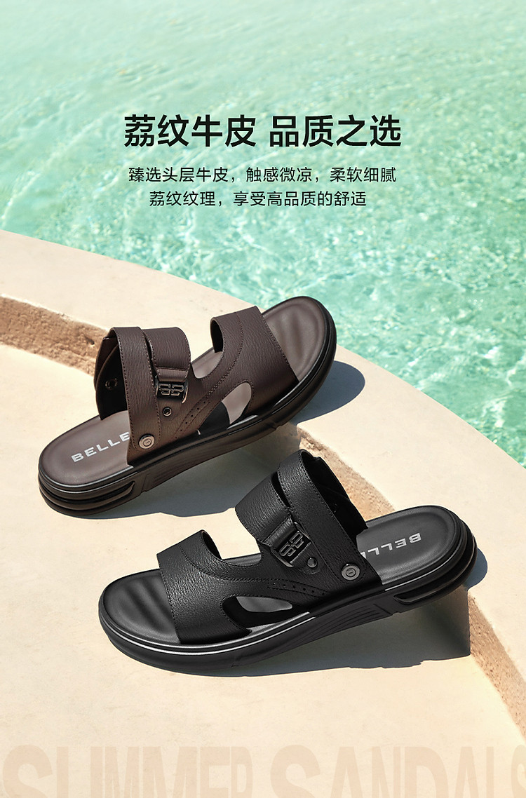 商品名称:百丽户外凉拖男夏新商场同款牛皮革两穿休闲沙滩凉鞋 321626