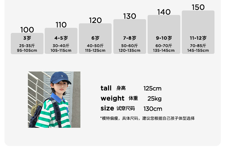 | 130 | 130/64 | 5-6岁 | 130/53 | 51 | 120-130 | 26 | 41 | 46.5 | 130/64 |