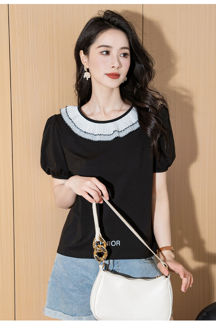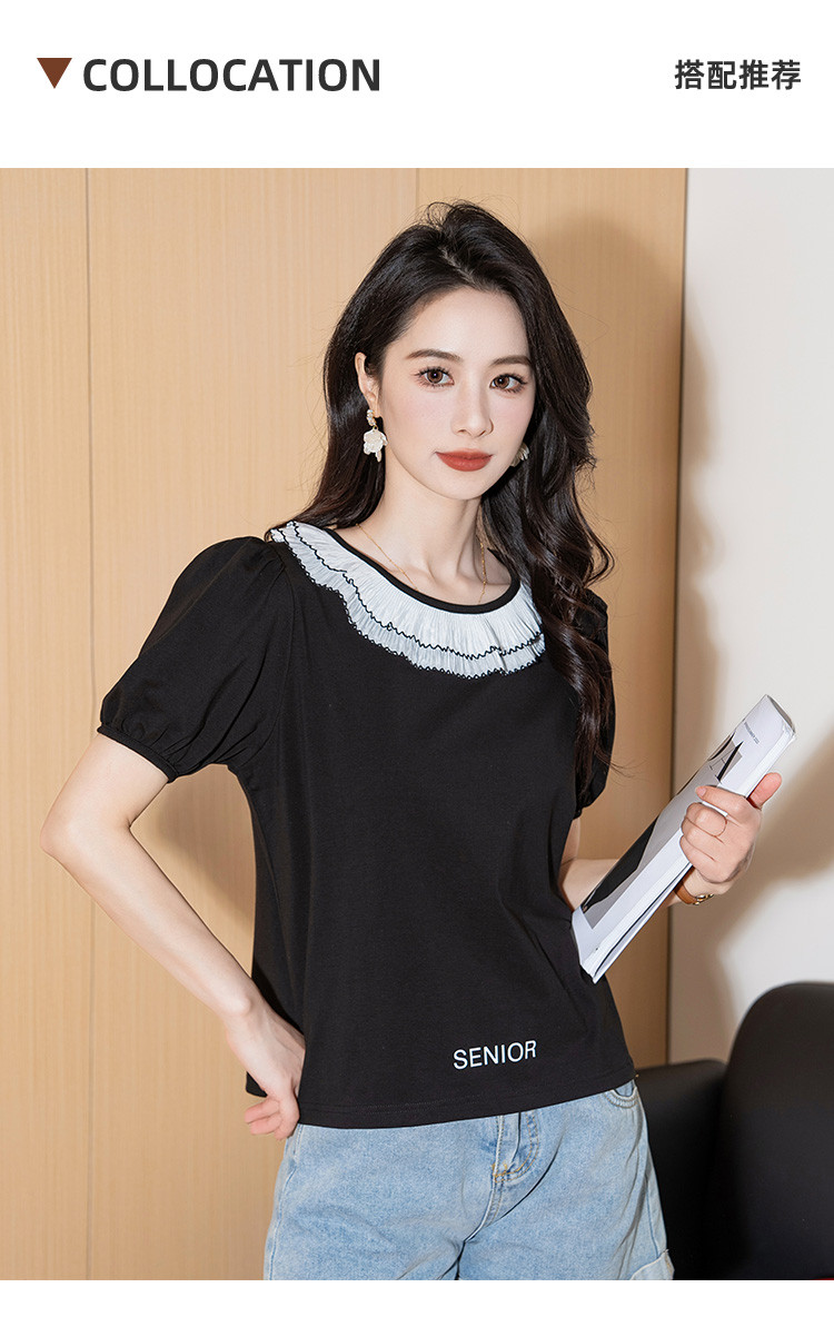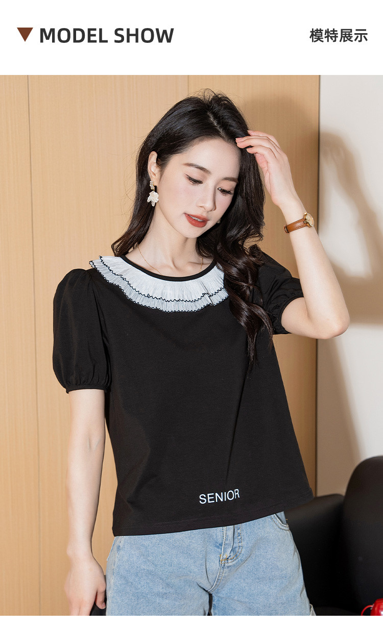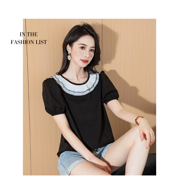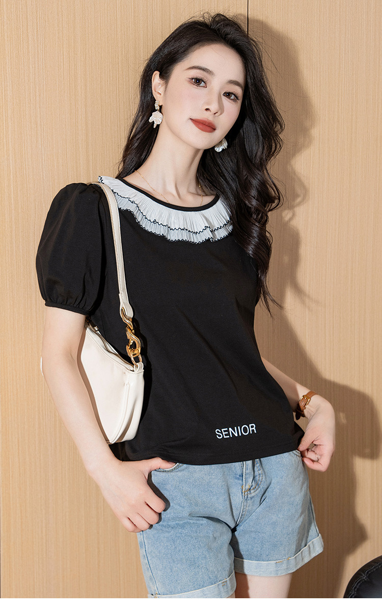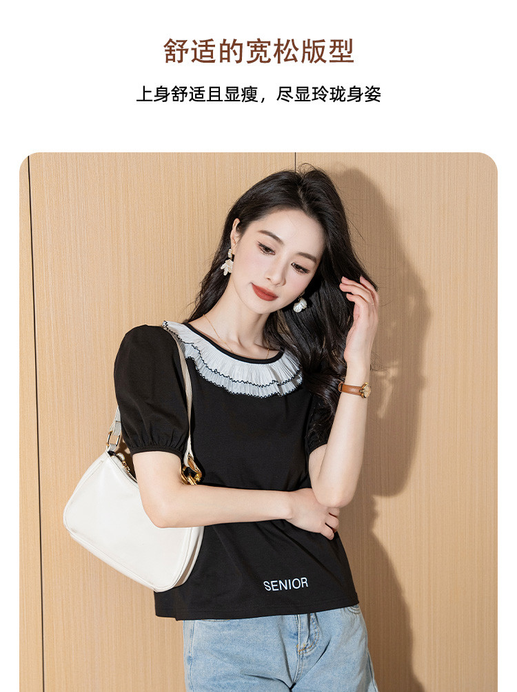 商品名称:泡泡袖时尚圆领宽松女装夏季设计感小众短袖上衣 226008