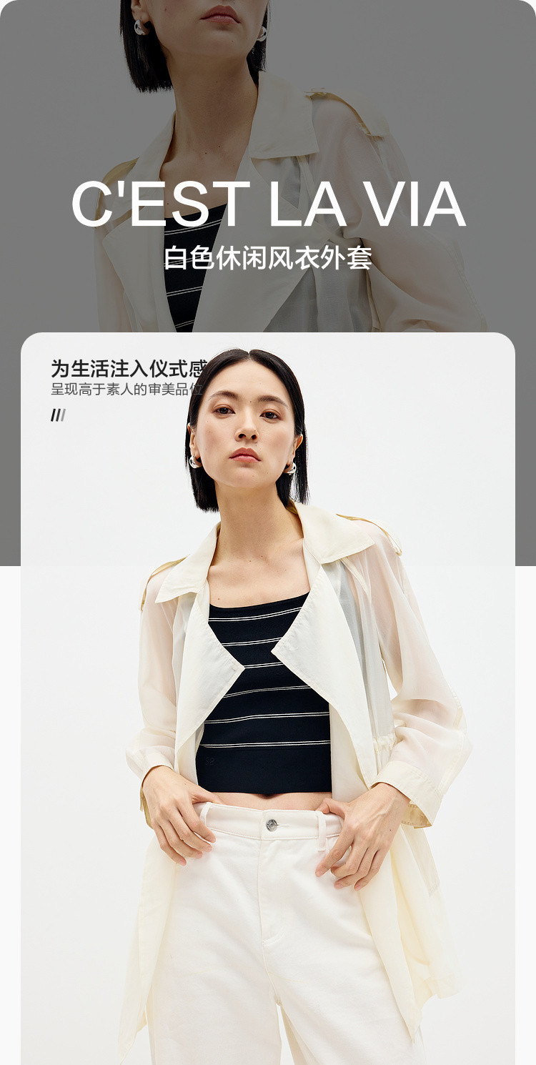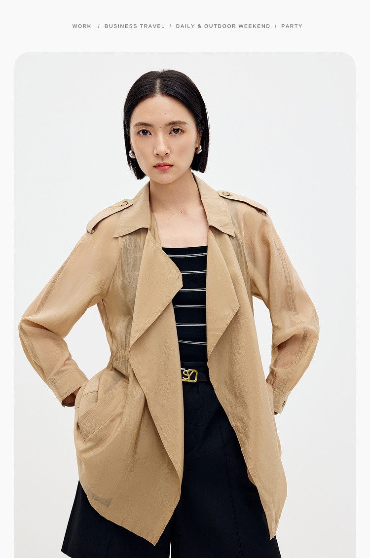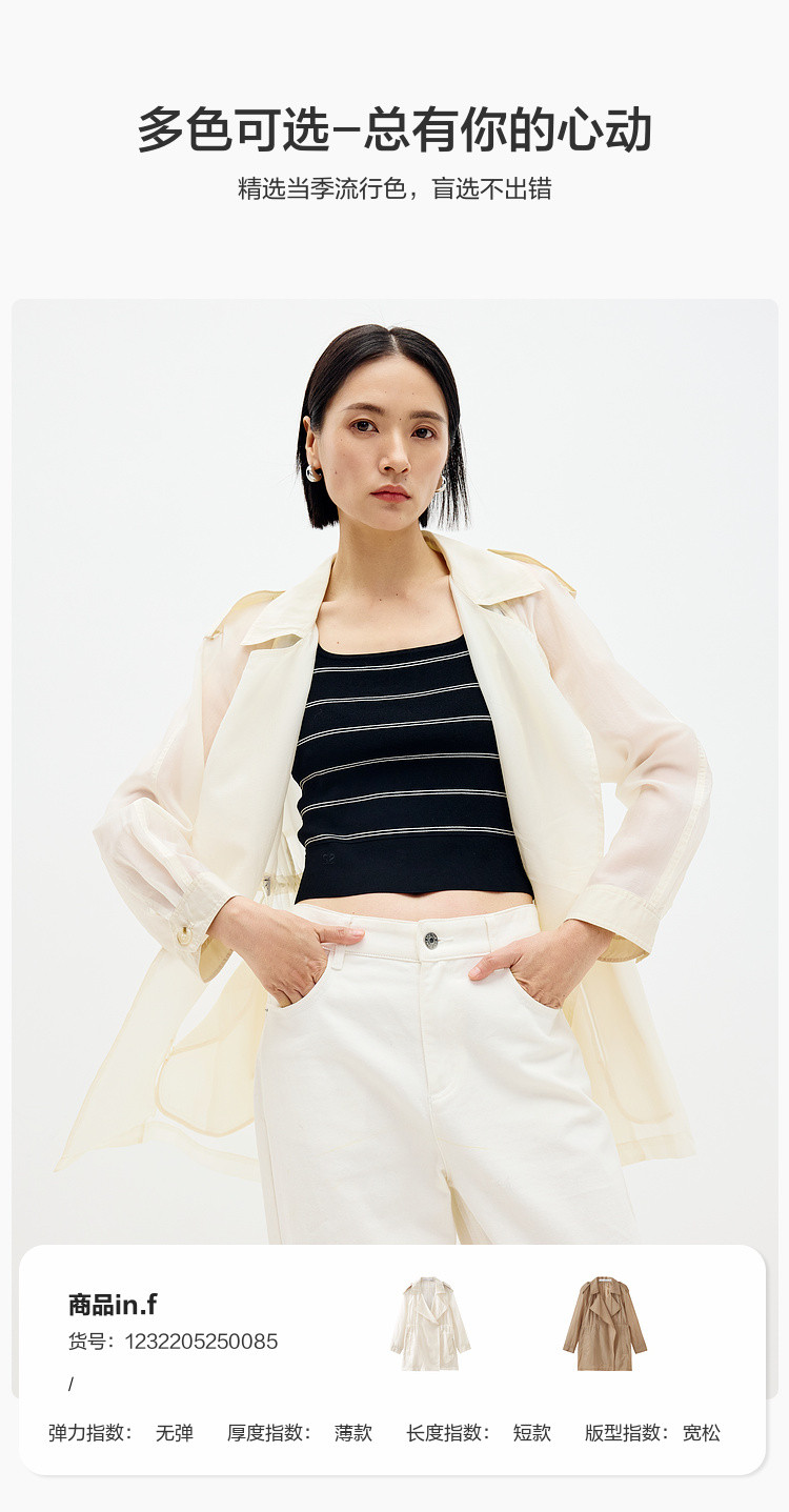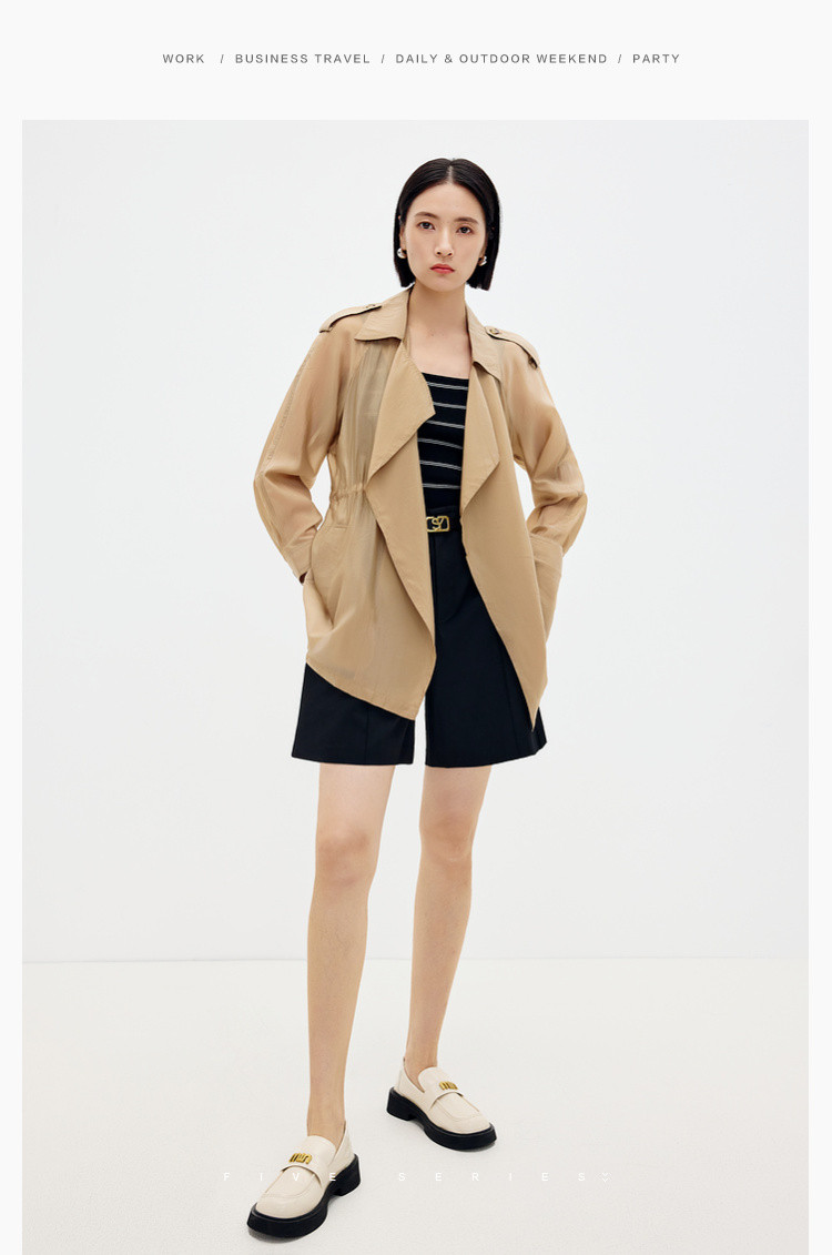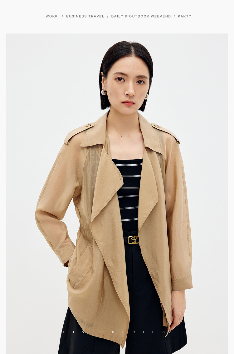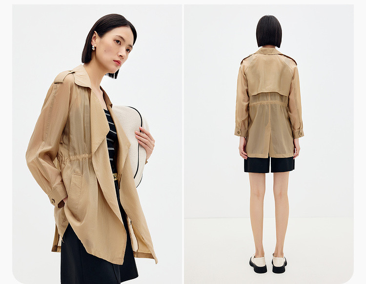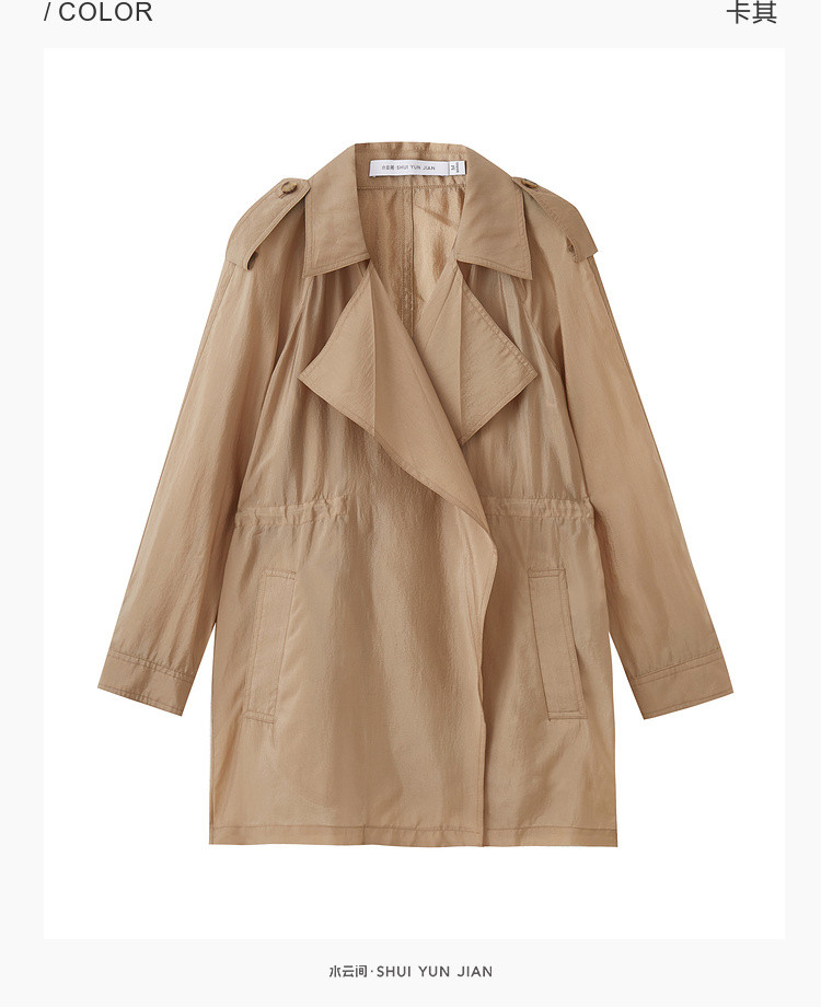 商品名称:英伦休闲纯色风衣女春夏季户外时尚气质中长款简约薄款外套女 556867