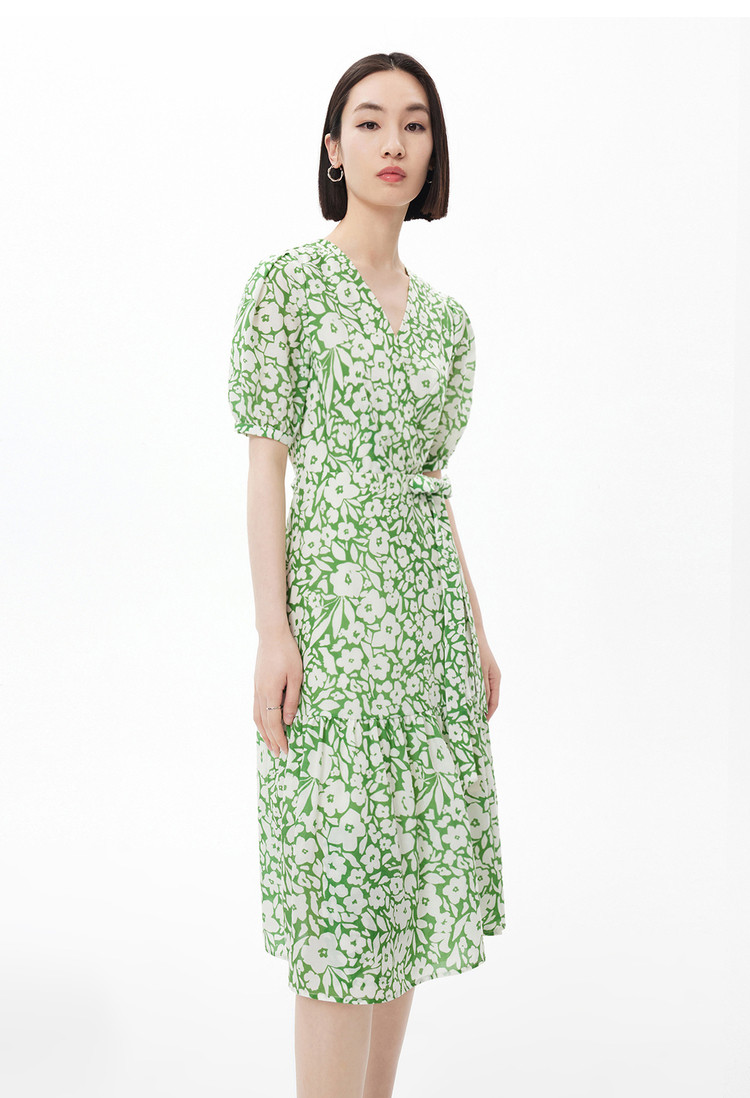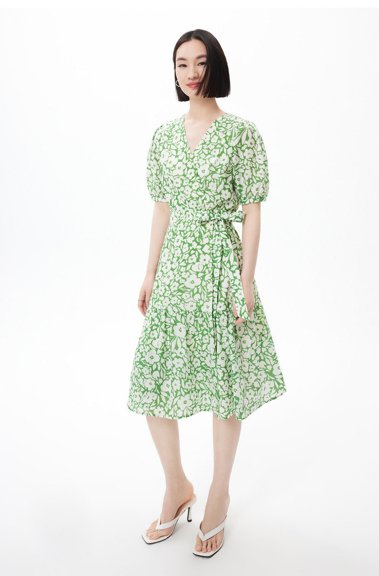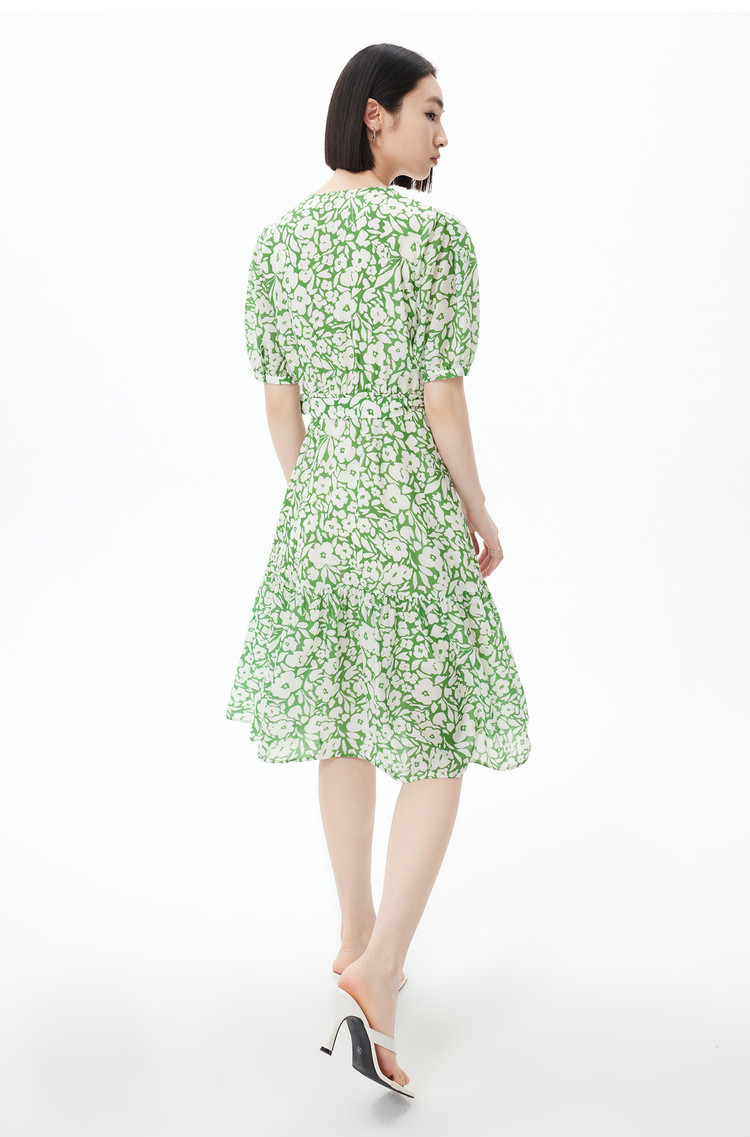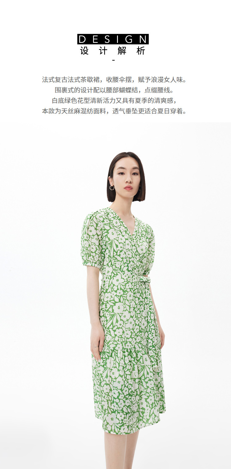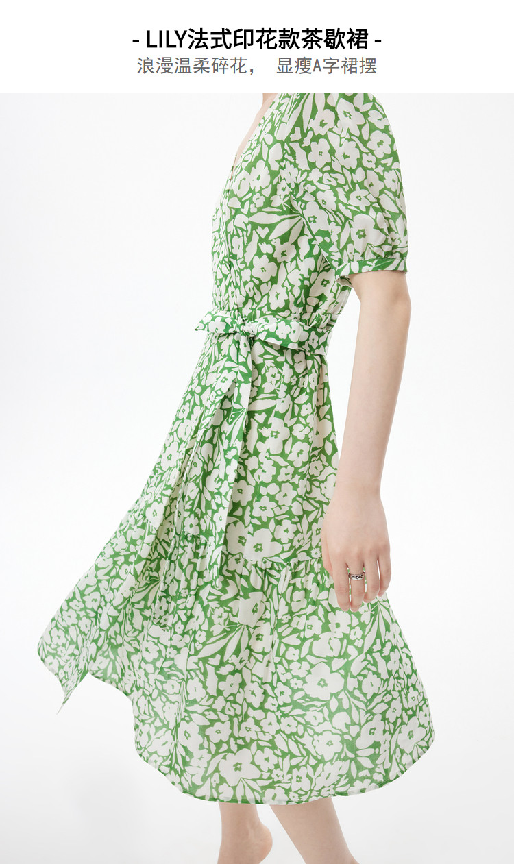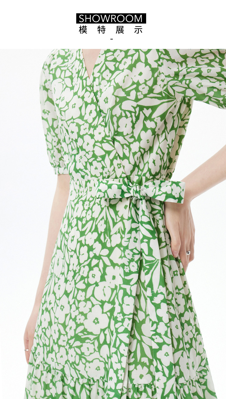 商品名称:度假风浪漫碎花裙连衣裙女夏季法式复古茶歇裙高腰五分袖连衣裙 448155