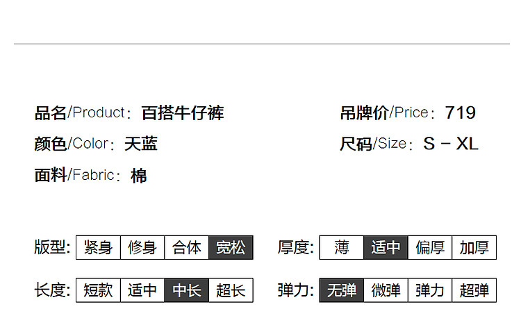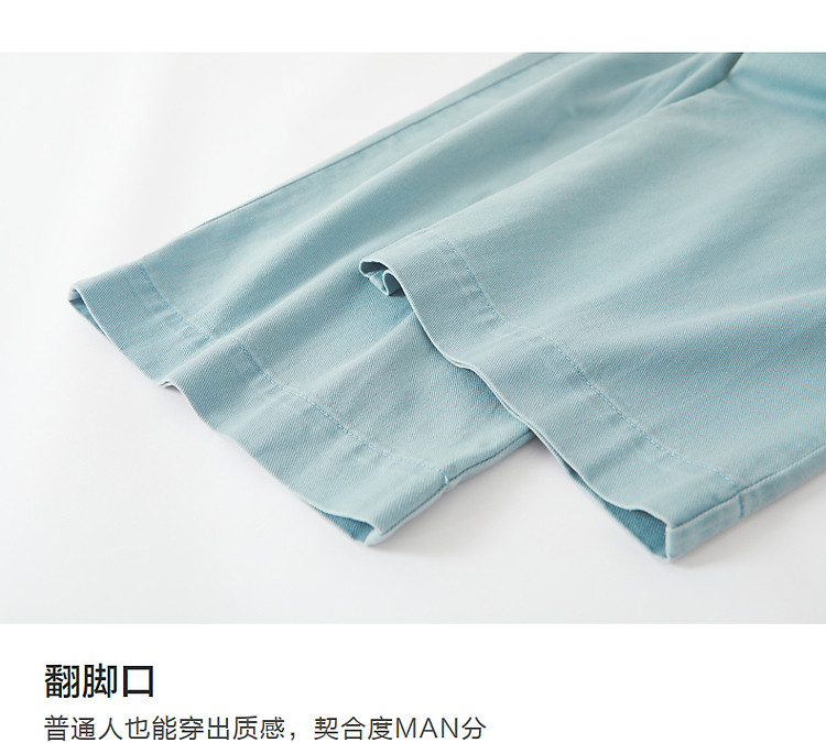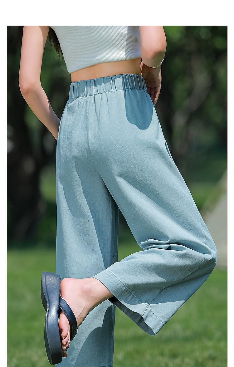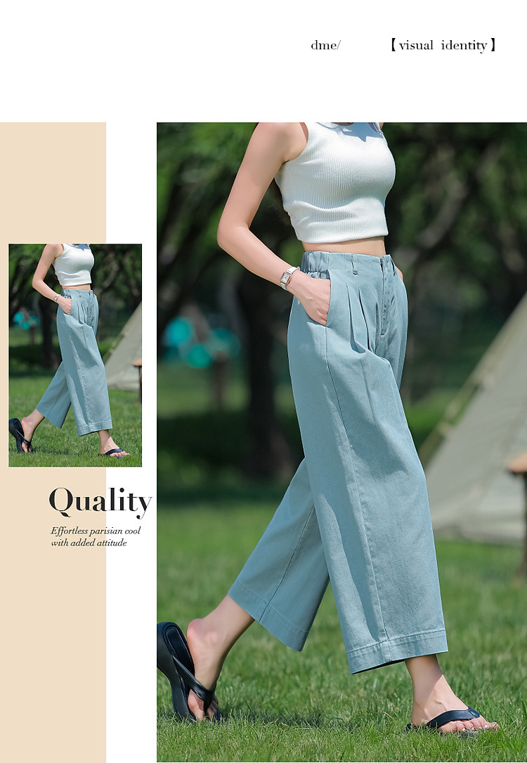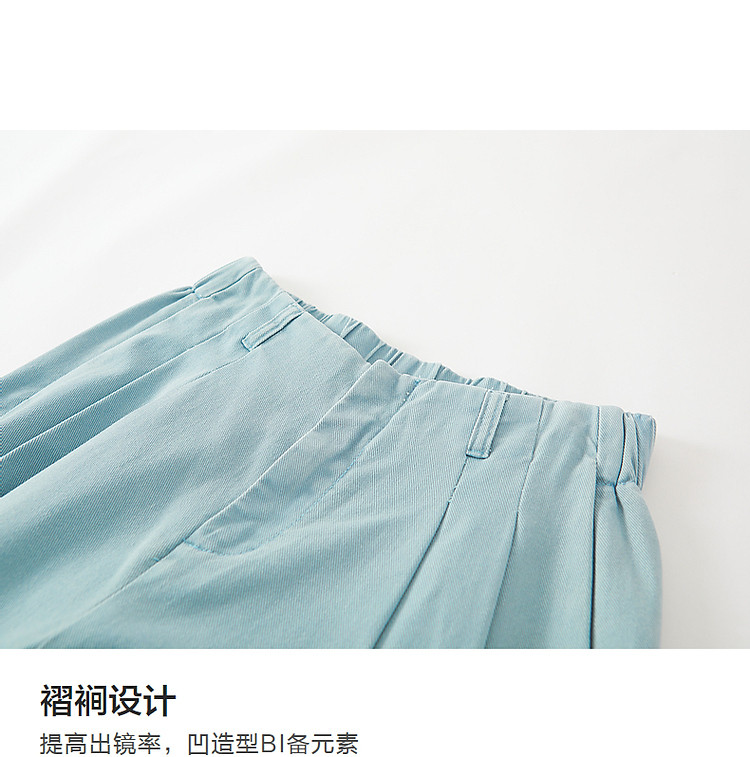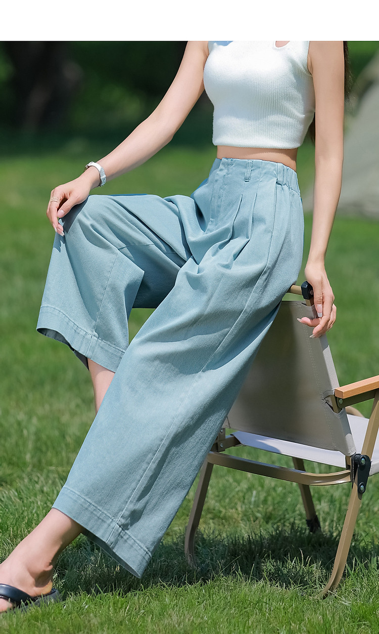 商品名称:【重磅100%棉牛仔九分裤】夏新通勤褶裥翻脚口直筒阔腿牛仔裤 004353