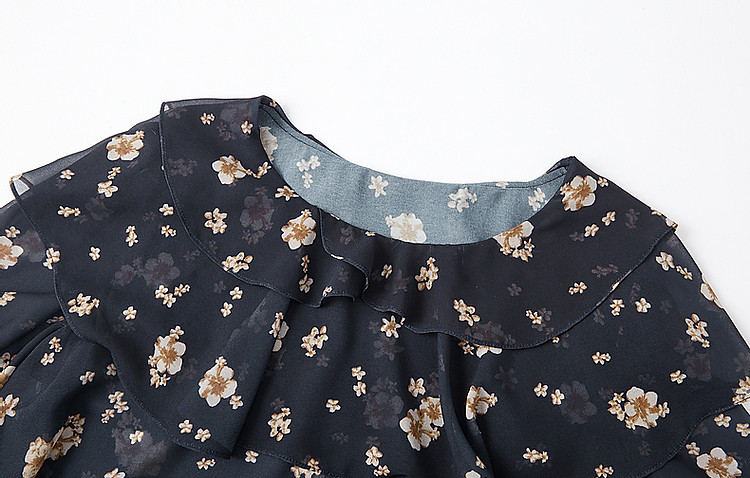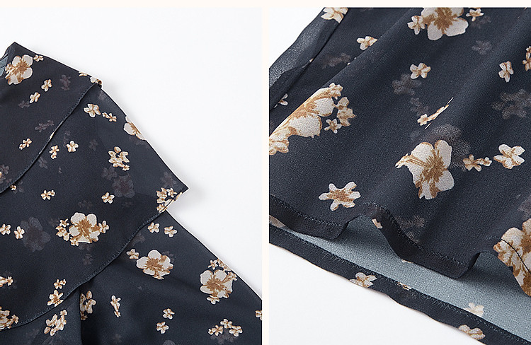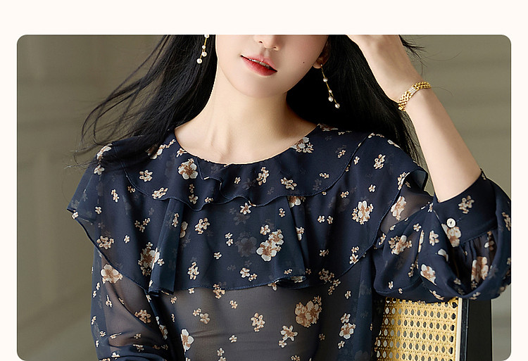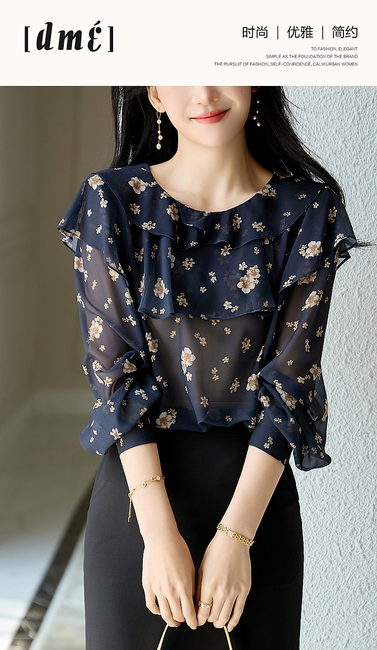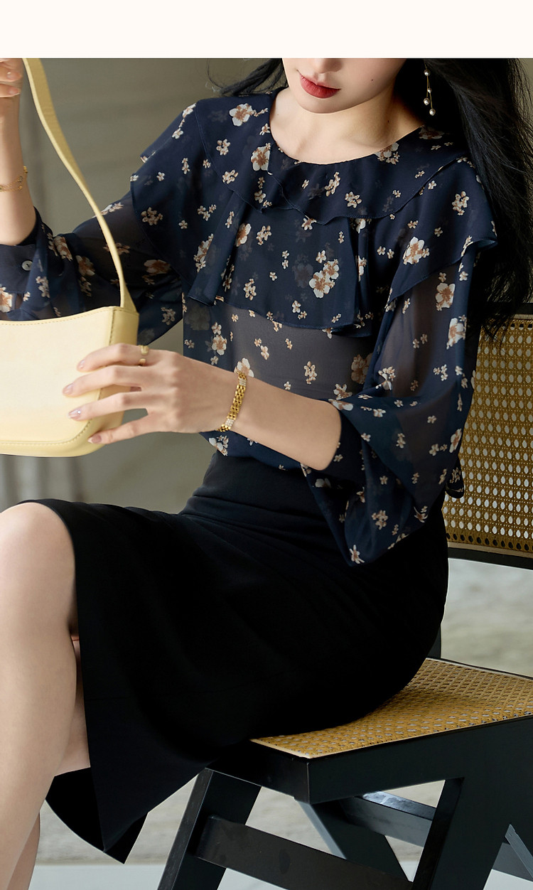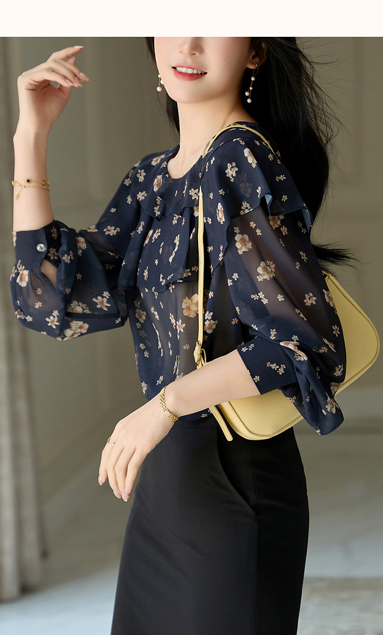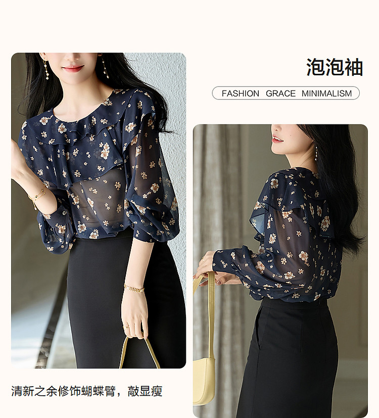商品名称:【山抹微云】秋法式飘逸双层荷边衬衫爽滑雪纺泡泡袖衬衣女装上衣 492865