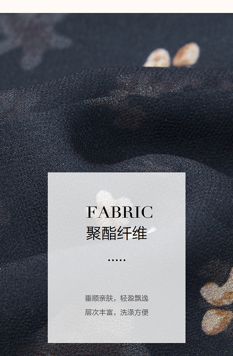 【苏醒玫瑰】春秋浓郁法式V领剪花植物印花a字优雅长款连衣裙女 822785