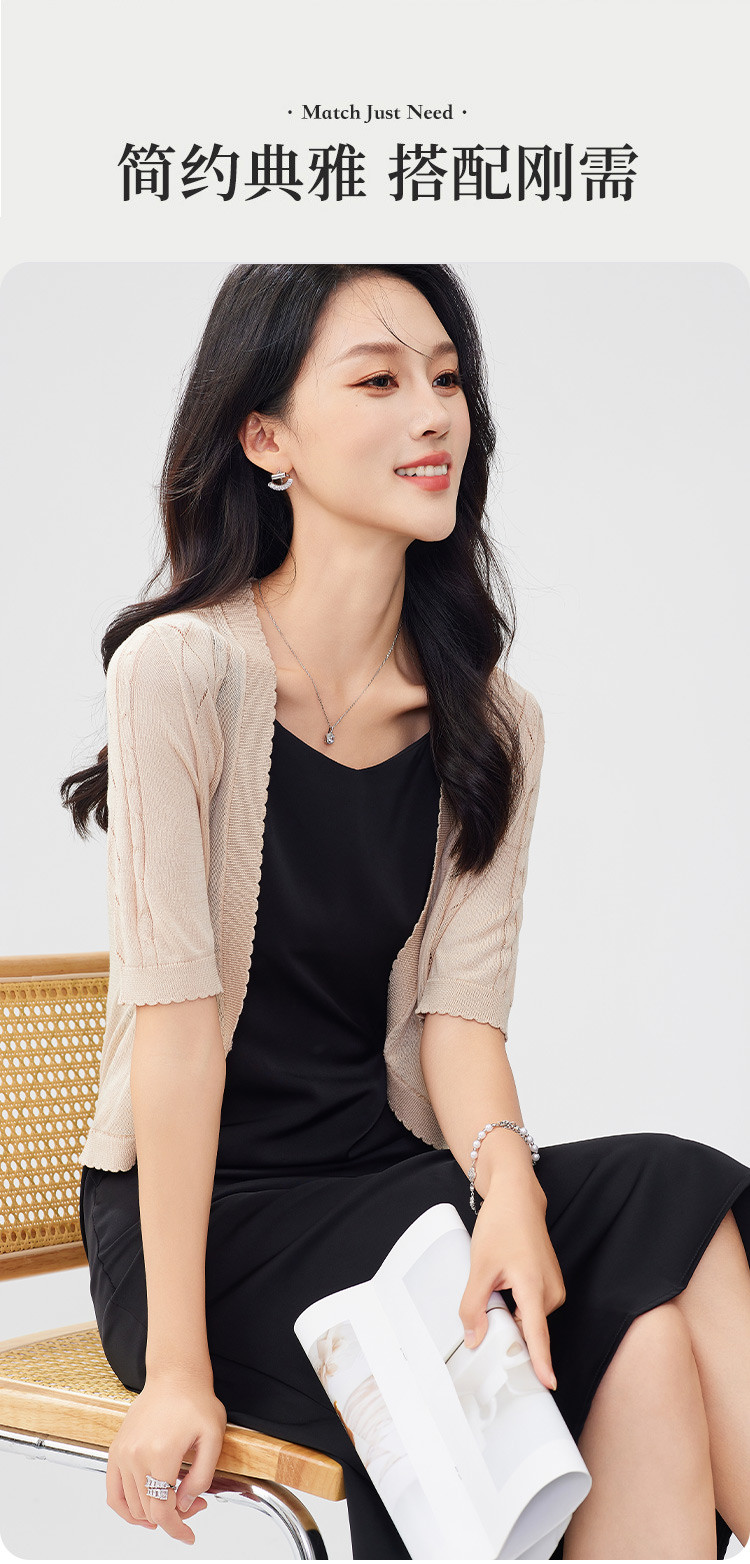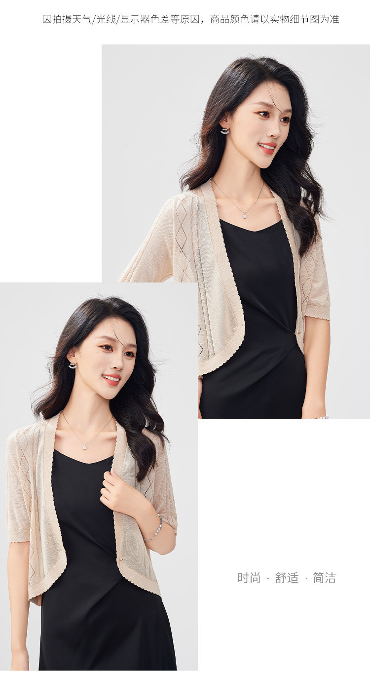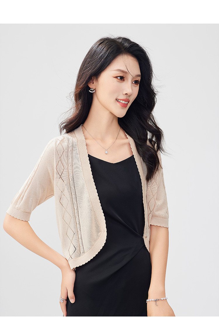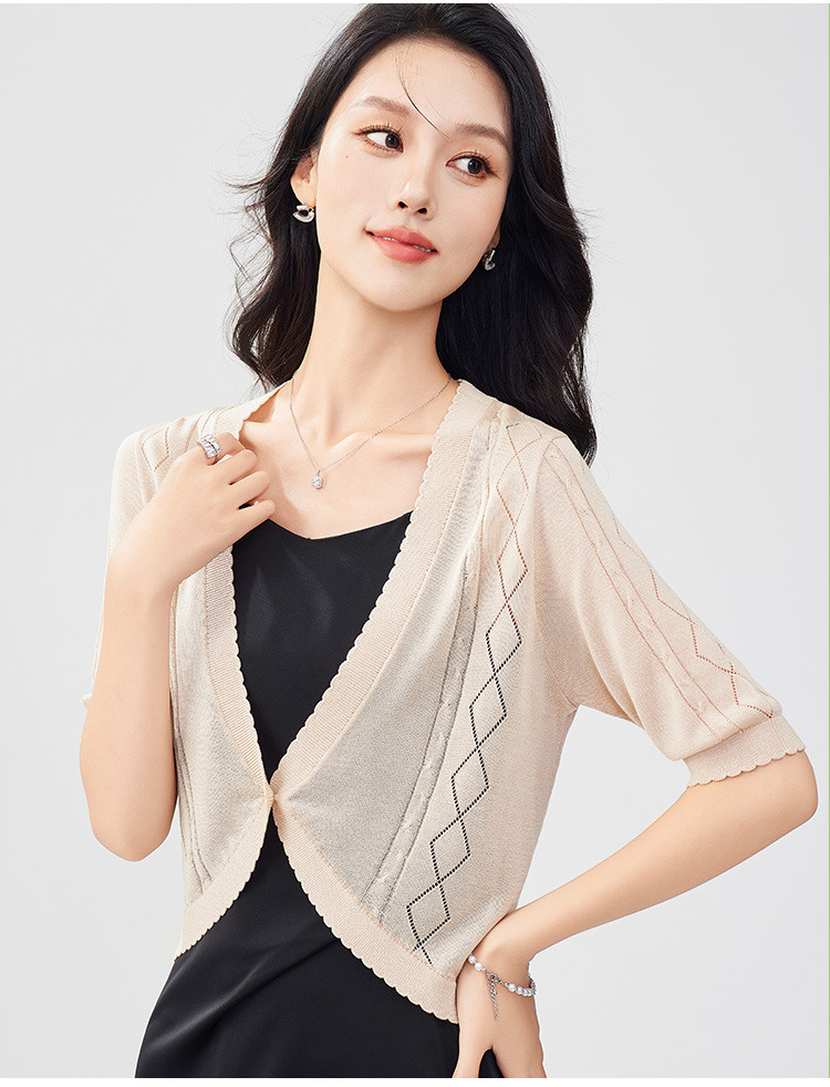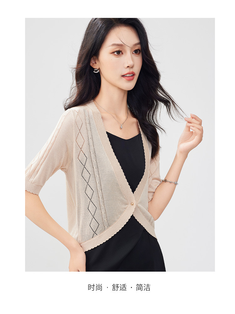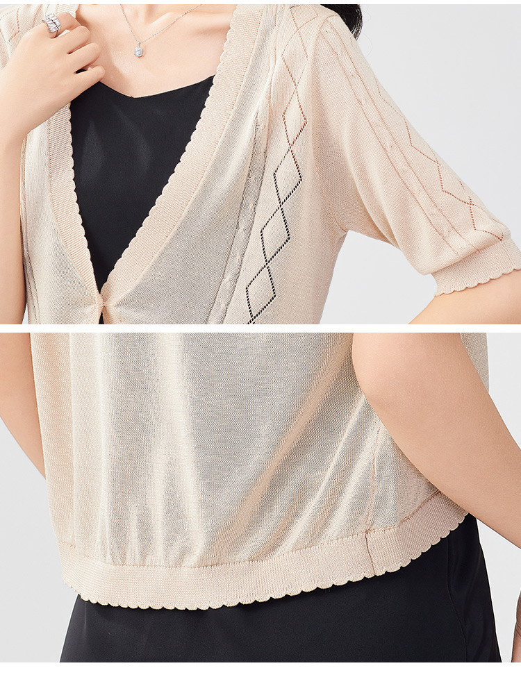 商品名称:【含桑蚕丝含莱赛尔】薄款外套女轻薄夏镂空一粒扣空调衫上衣 331935
