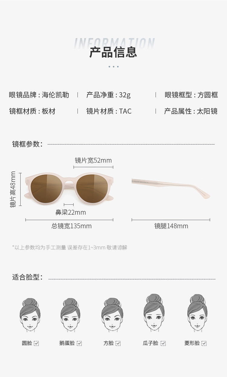 商品名称:海伦凯勒太阳镜女防紫外线修颜显瘦墨镜女韩版潮 311835