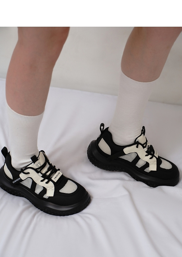 春夏小白鞋女透气网面鞋百搭时尚拼色板鞋厚底鞋舒适休闲运动鞋女 414551