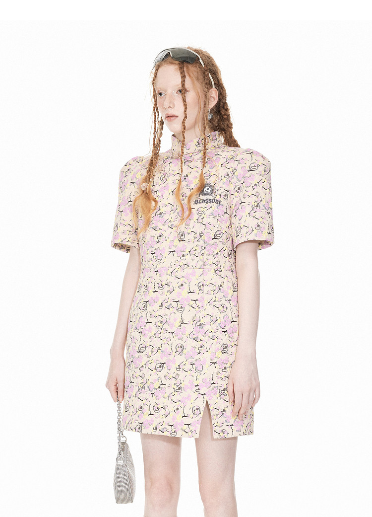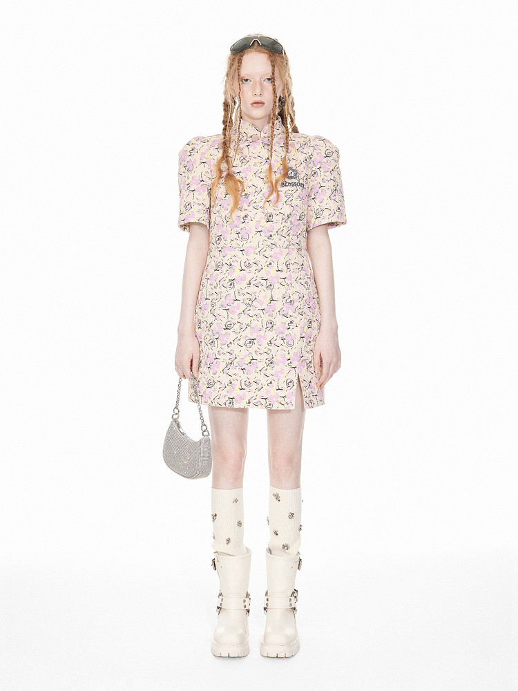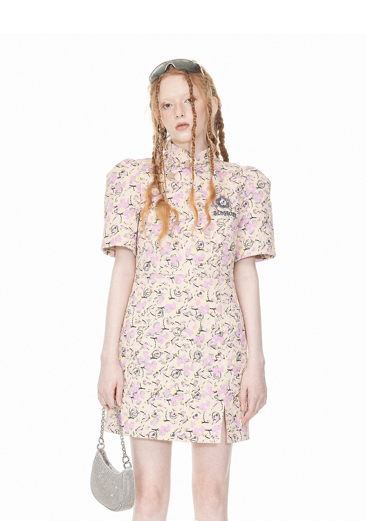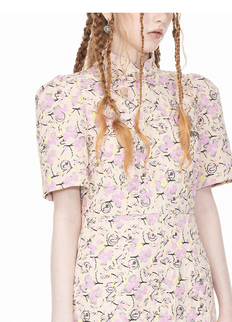 地素提花新中式旗袍春季专柜气质短袖桃花连衣裙女 307851