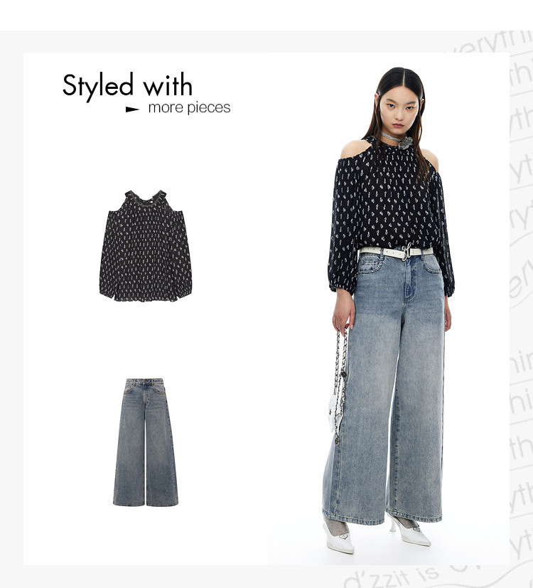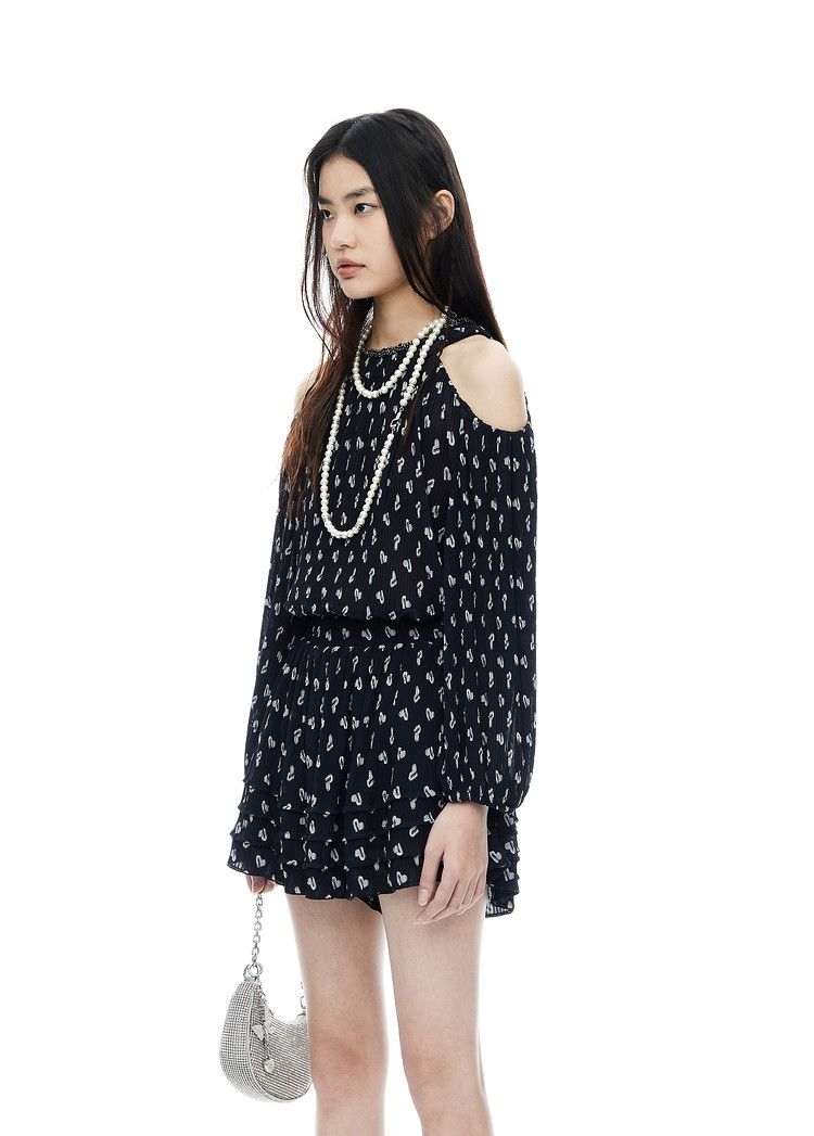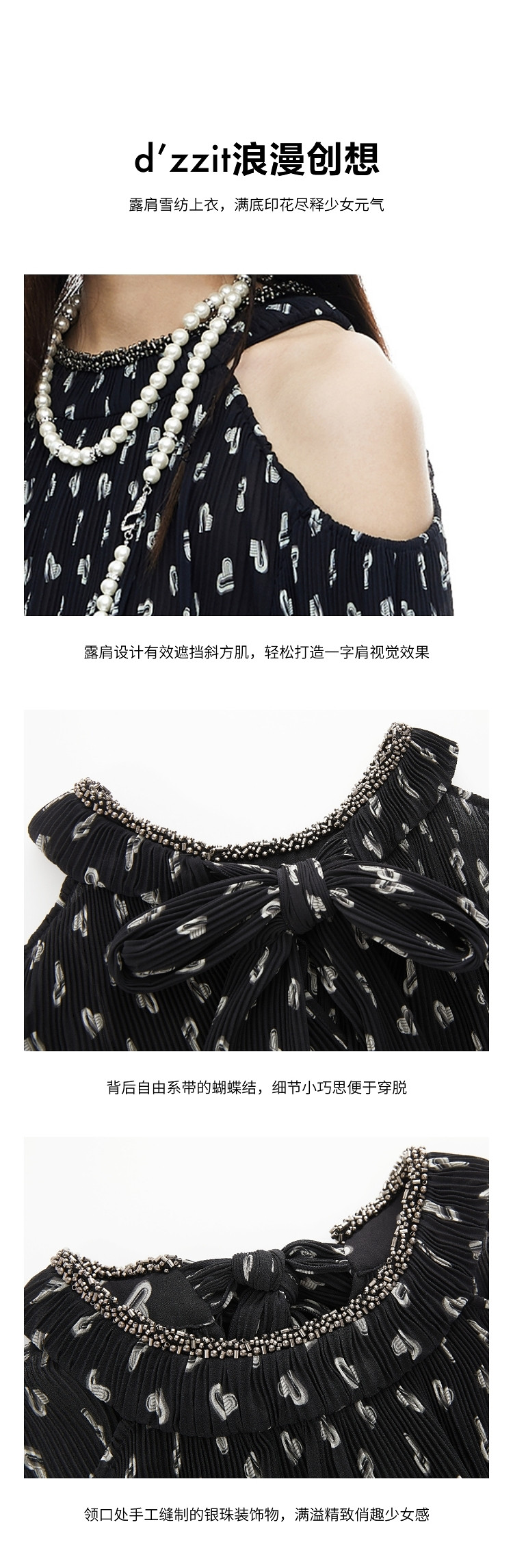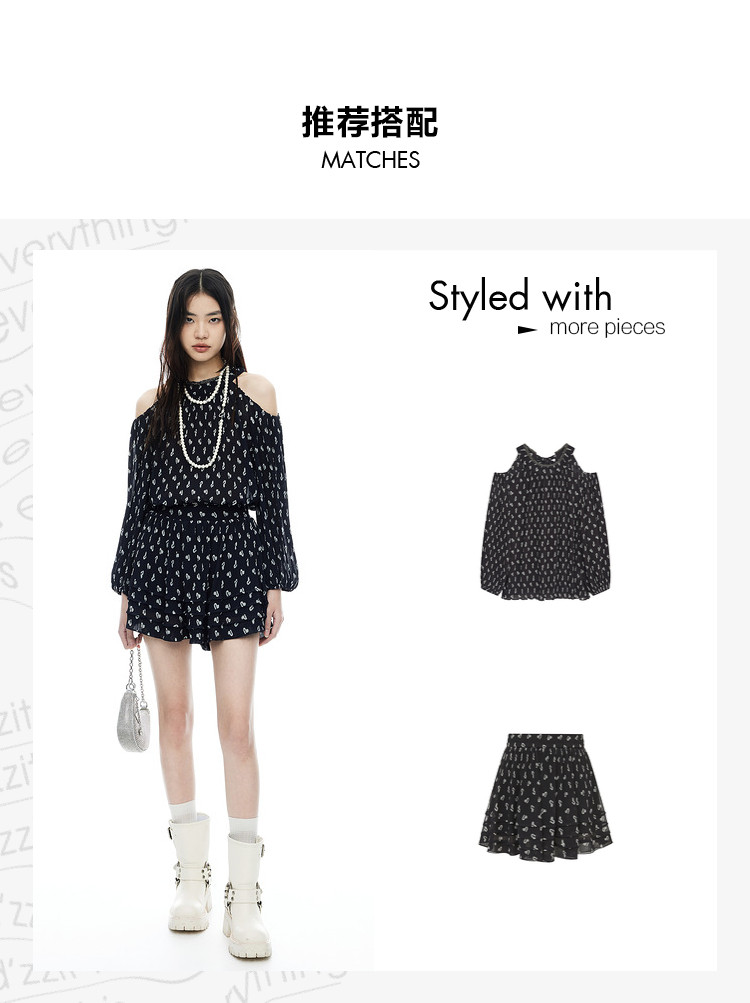 商品名称:地素雪纺上衣夏季露肩设计感长袖爱心老花衬衫女 317899