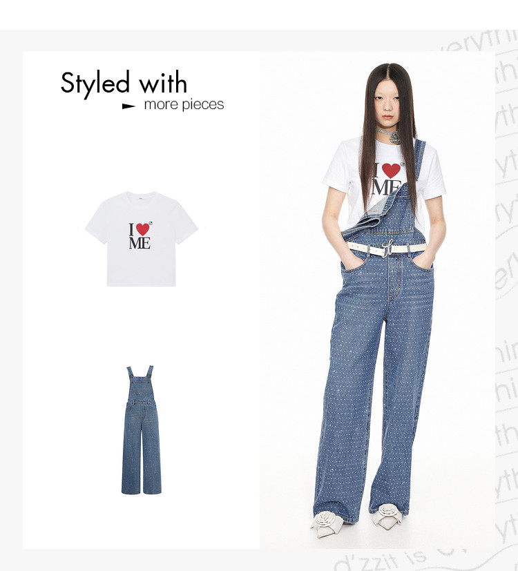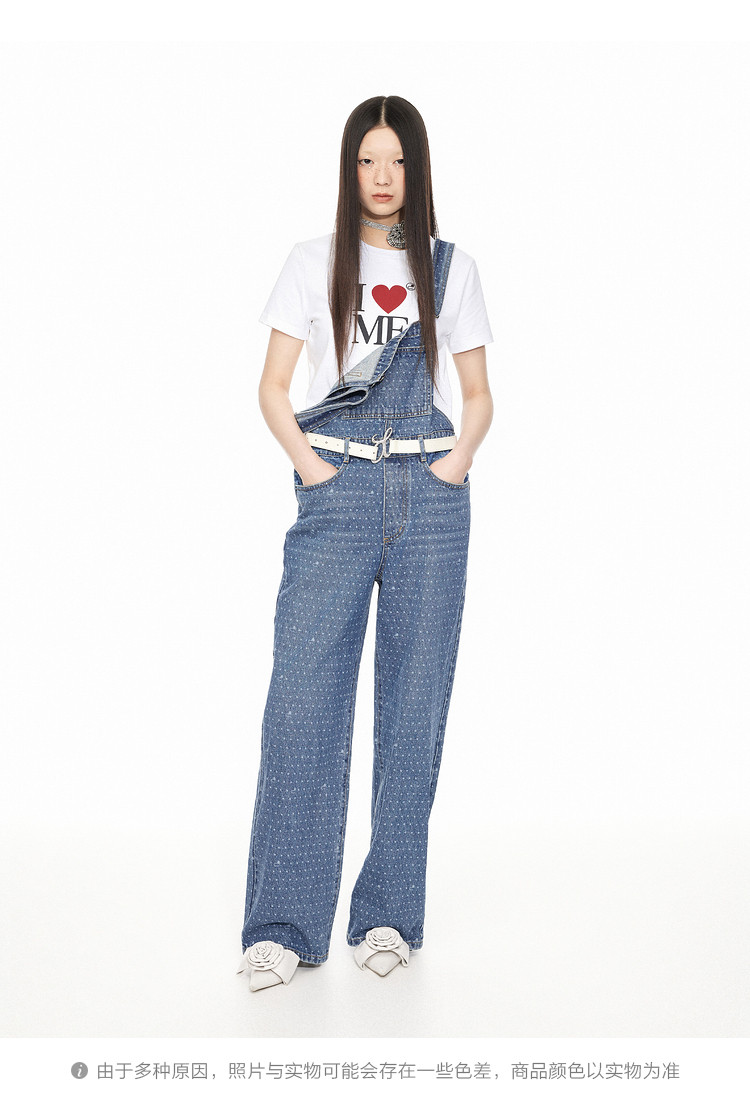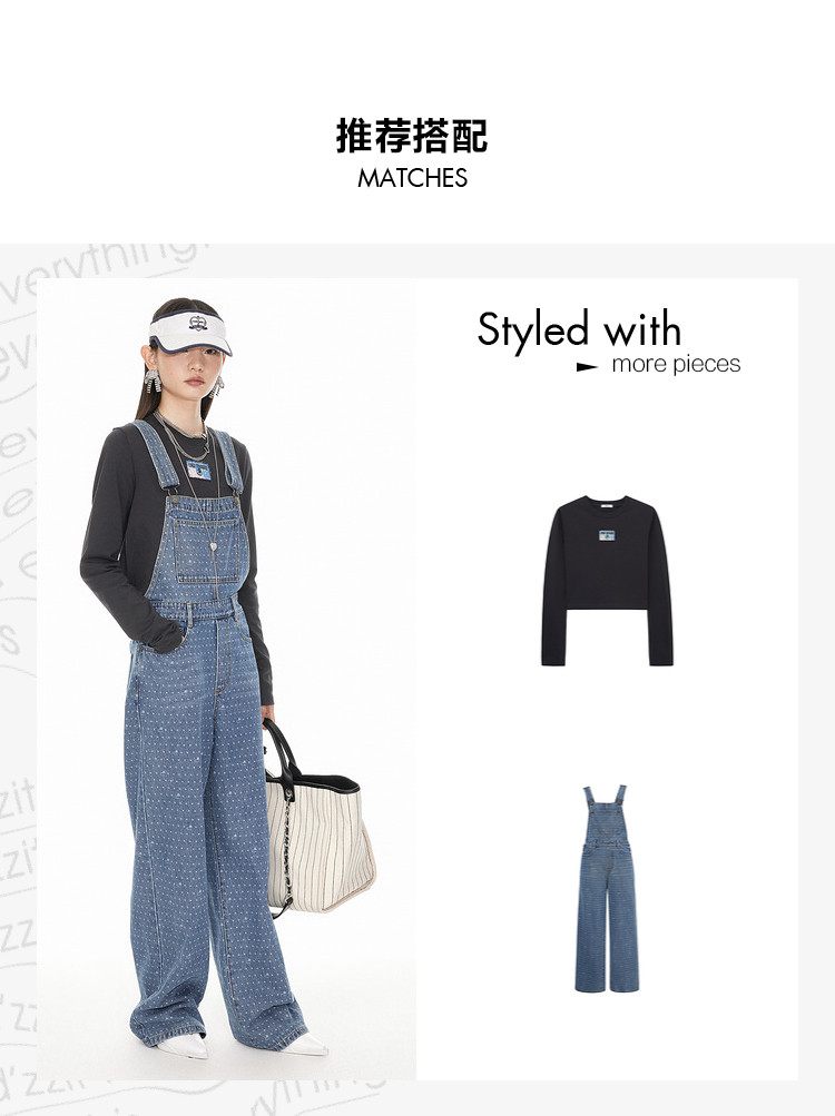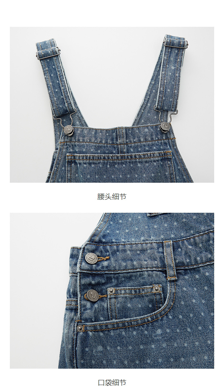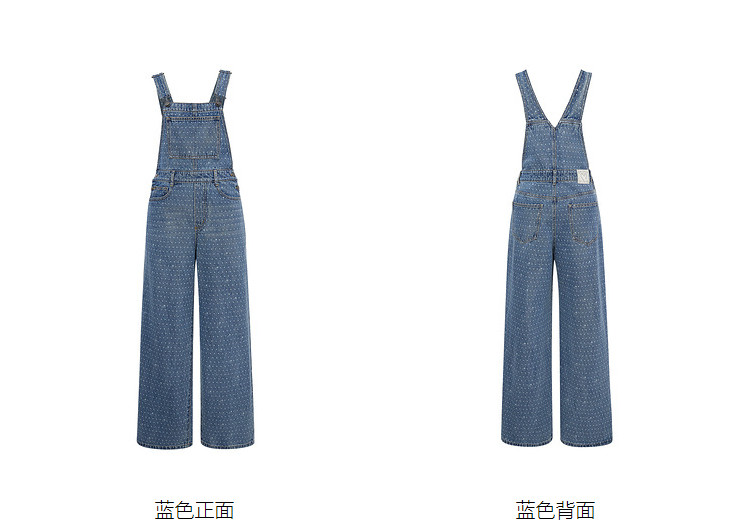 商品名称:地素牛仔背带裤春秋波点满印宽松拖地长裤女 679307