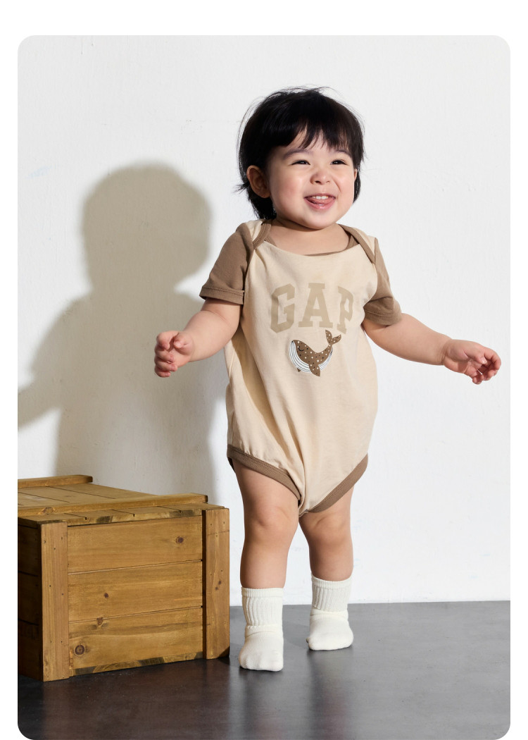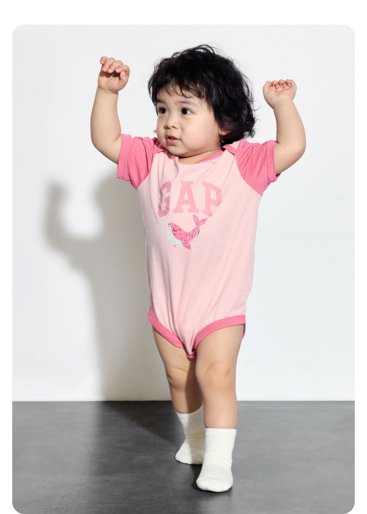 Gap婴儿春秋logo纯棉连体衣儿童装包屁衣爬服505609 979994