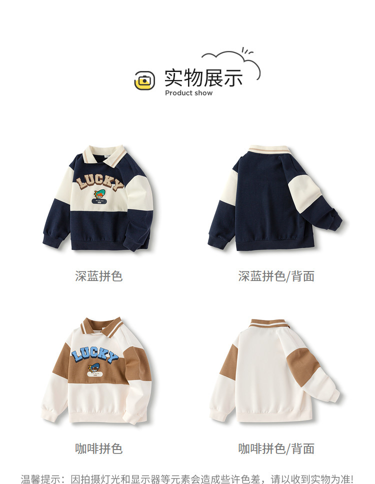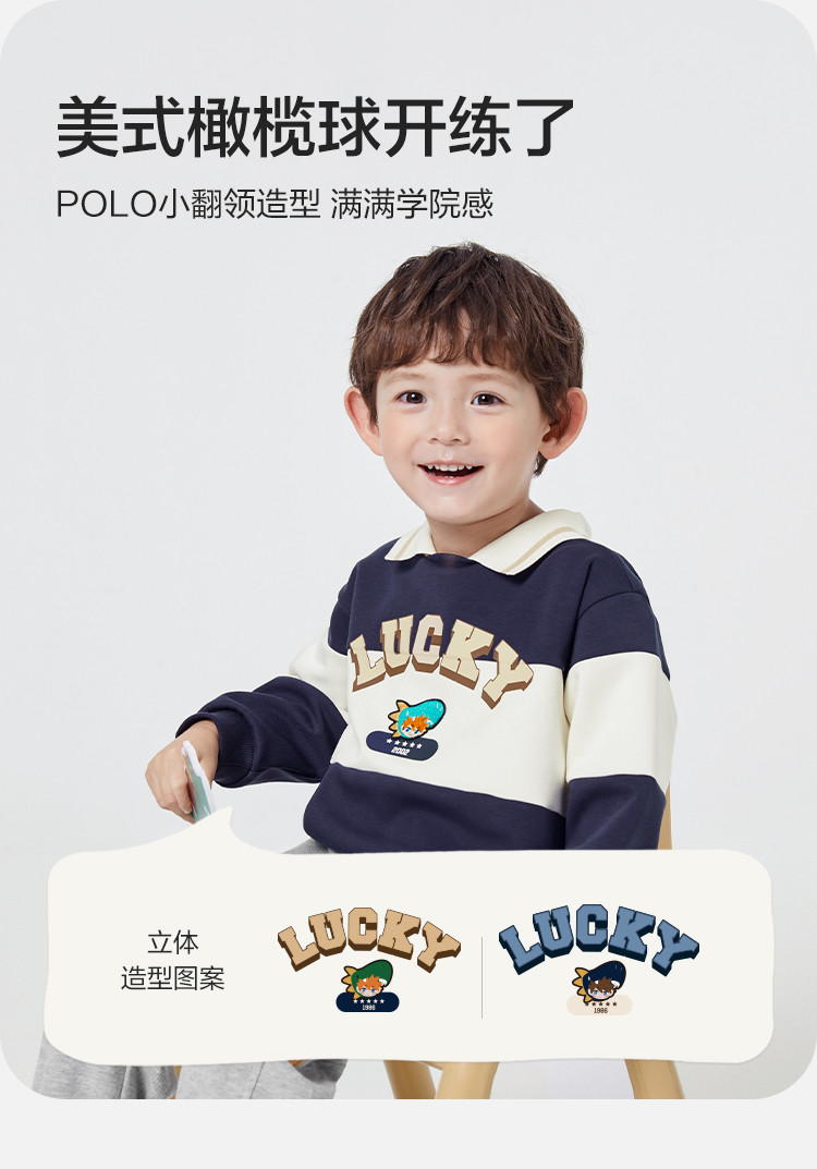 商品名称:polo领条纹撞色儿童长袖上衣男童套头卫衣秋装潮 093701