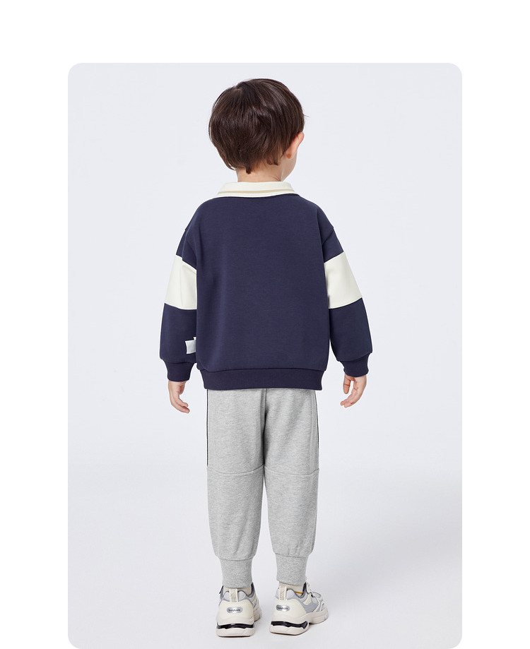 撞色拼接翻领儿童针织衫男童春秋装婴幼套头毛衣宝宝保暖长袖上衣 552197