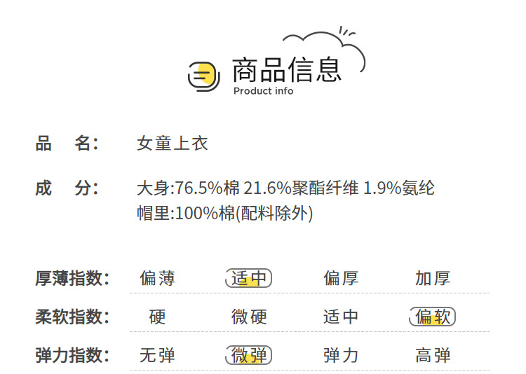 商品名称:华夫格连帽儿童外套开衫女童秋装中大童上衣软肌理感 019973