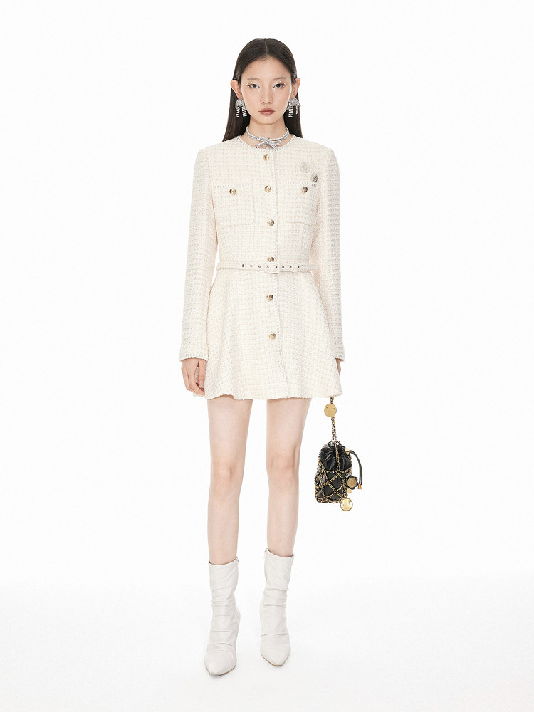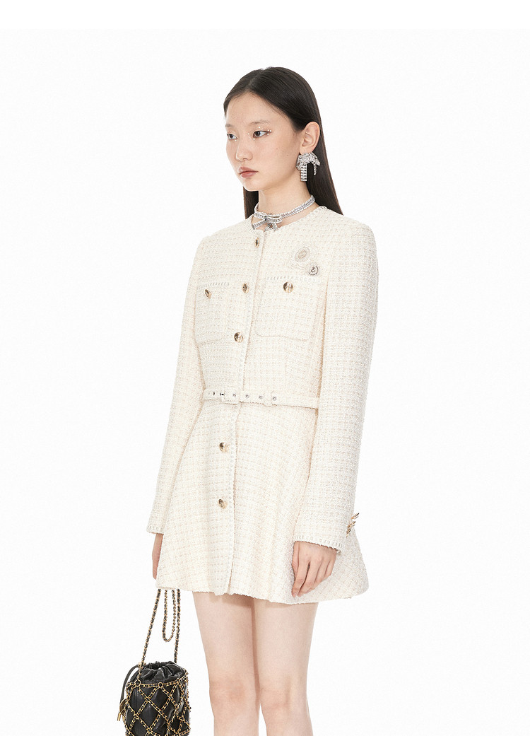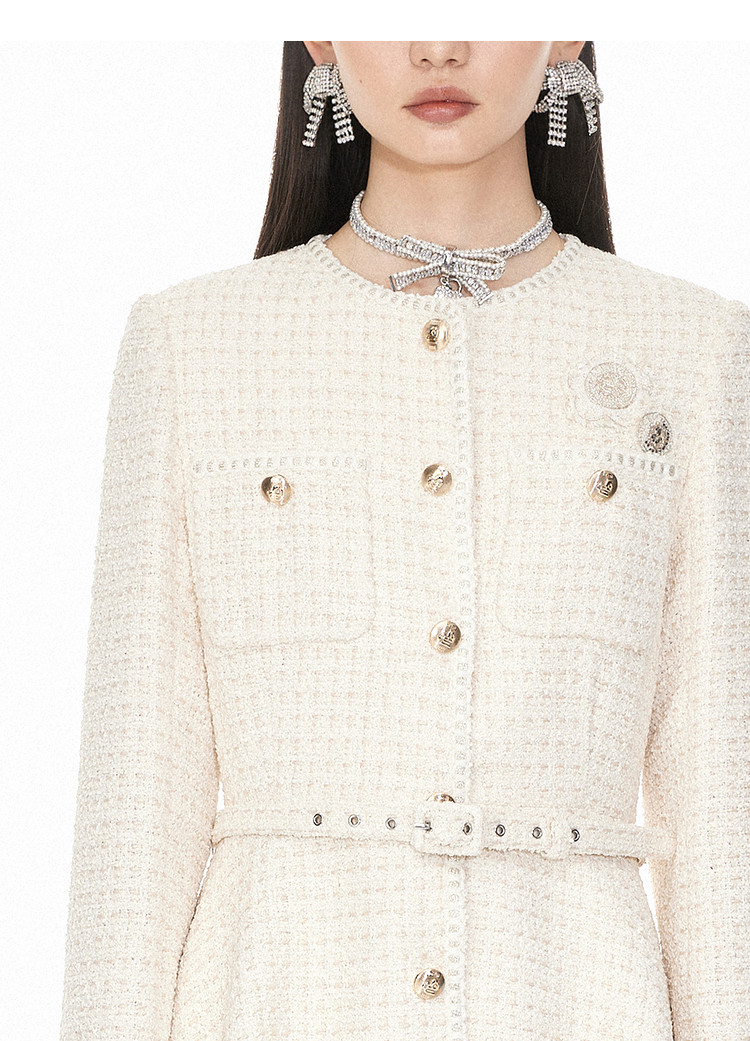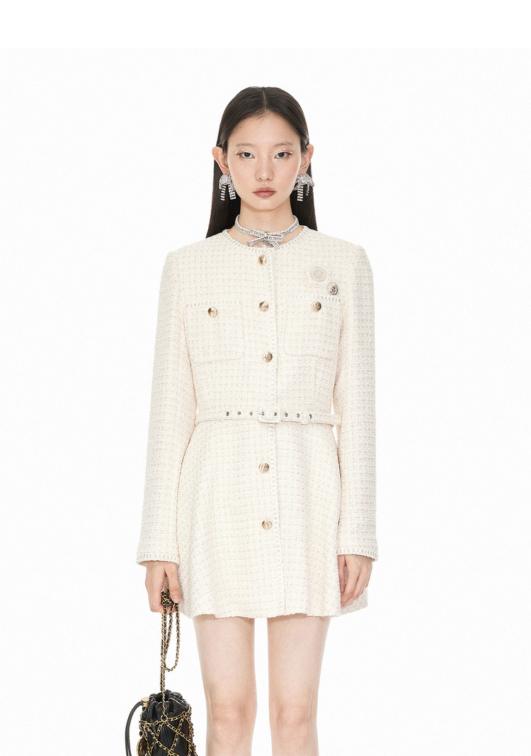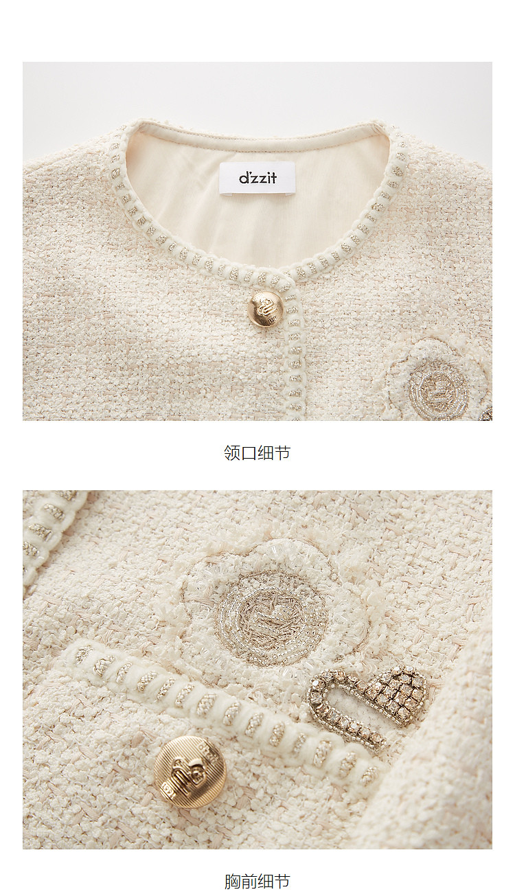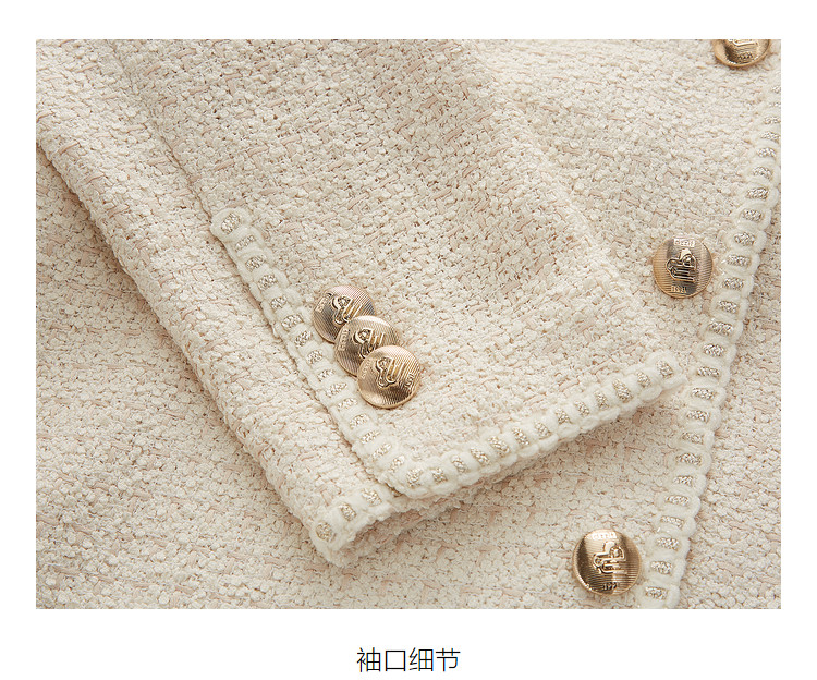 商品名称:地素粗花呢中长外套春秋小香风爱心钉钻设计女 124299