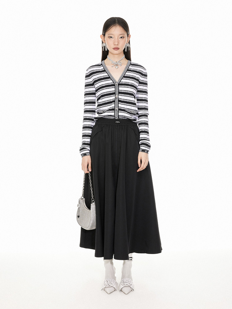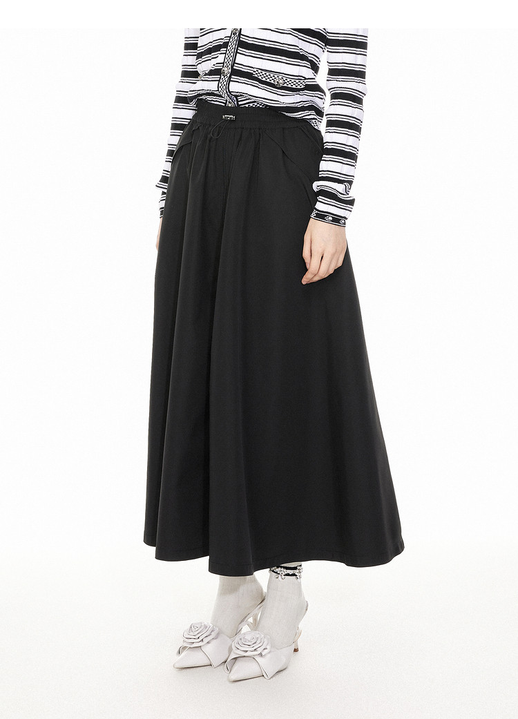 商品名称:地素平纹布半长裙春季松紧抽绳腰大摆裙女 626059