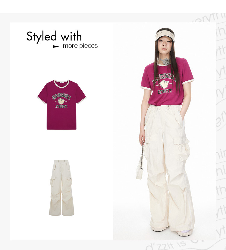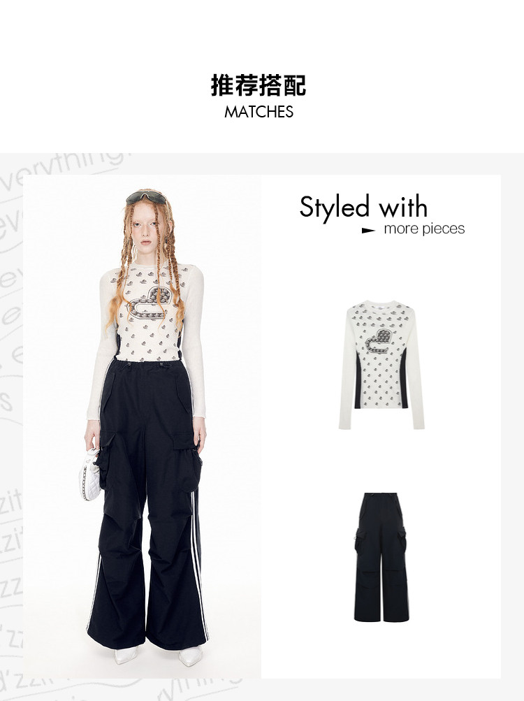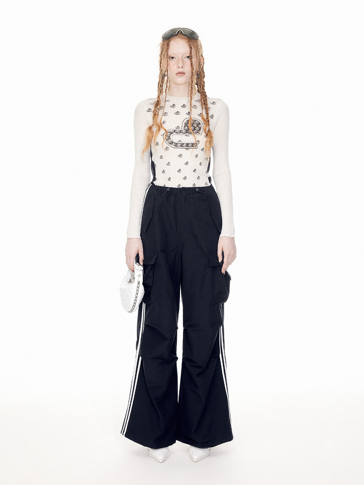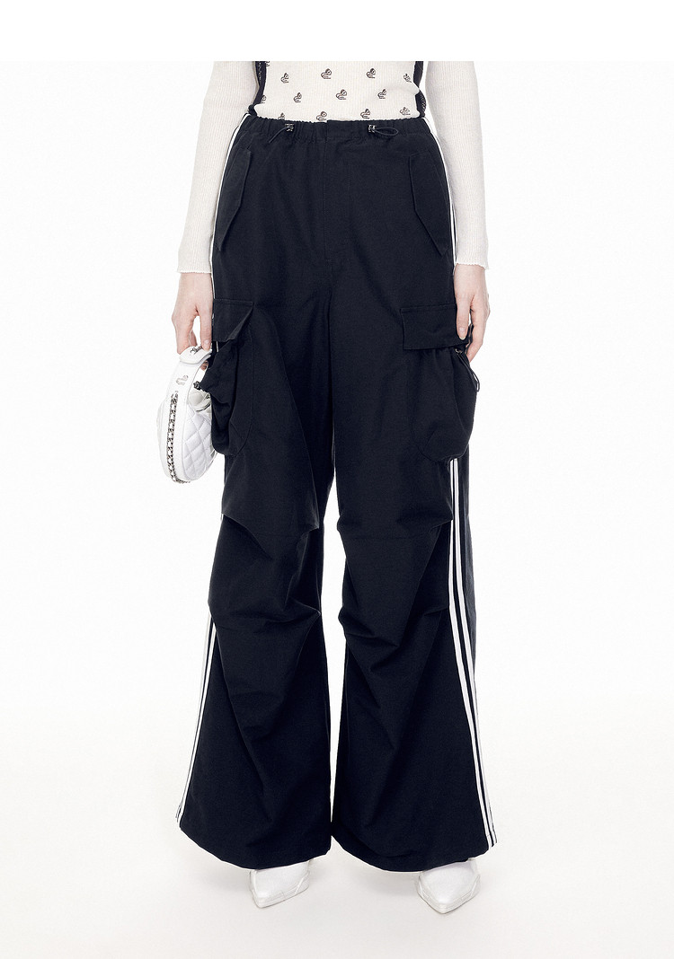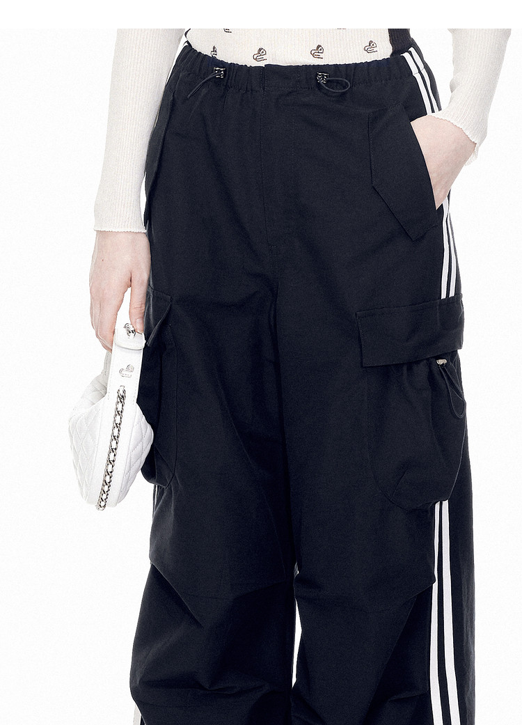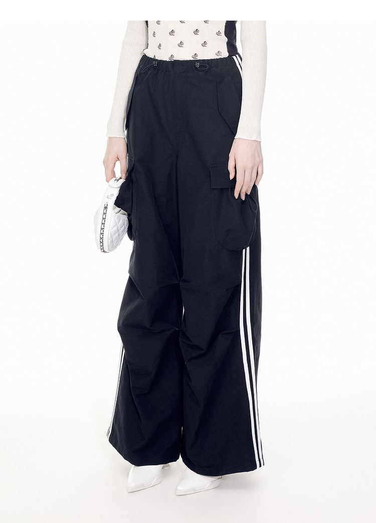 地素 运动休闲裤春秋工装风松紧抽绳腰宽松阔腿长裤女 445963