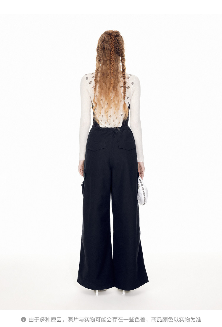商品名称:地素 运动休闲裤春秋工装风松紧抽绳腰宽松阔腿长裤女 445963