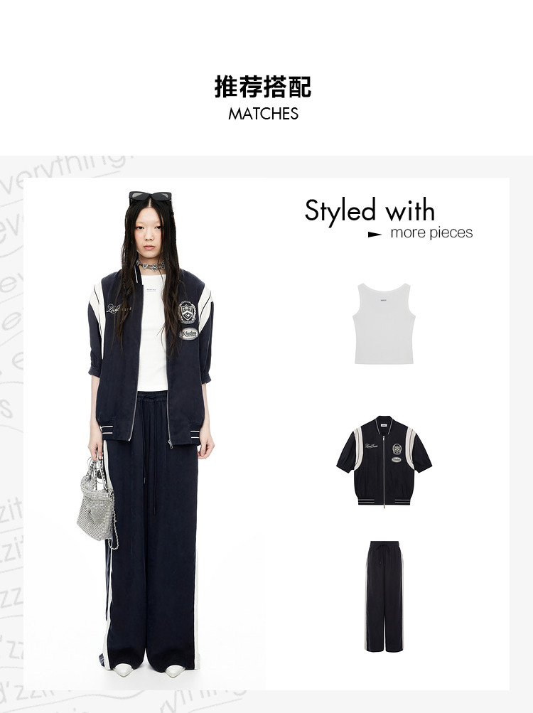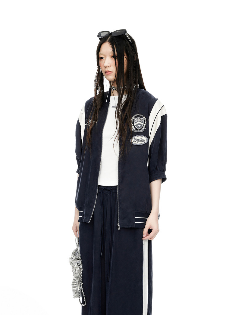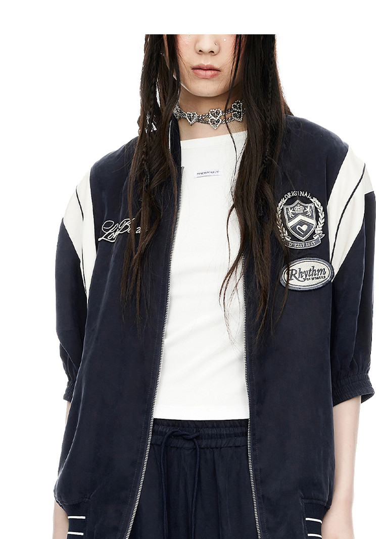 地素棒球外套夏季运动风休闲撞色五分袖设计女 986123