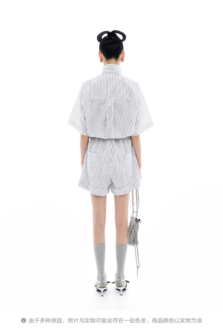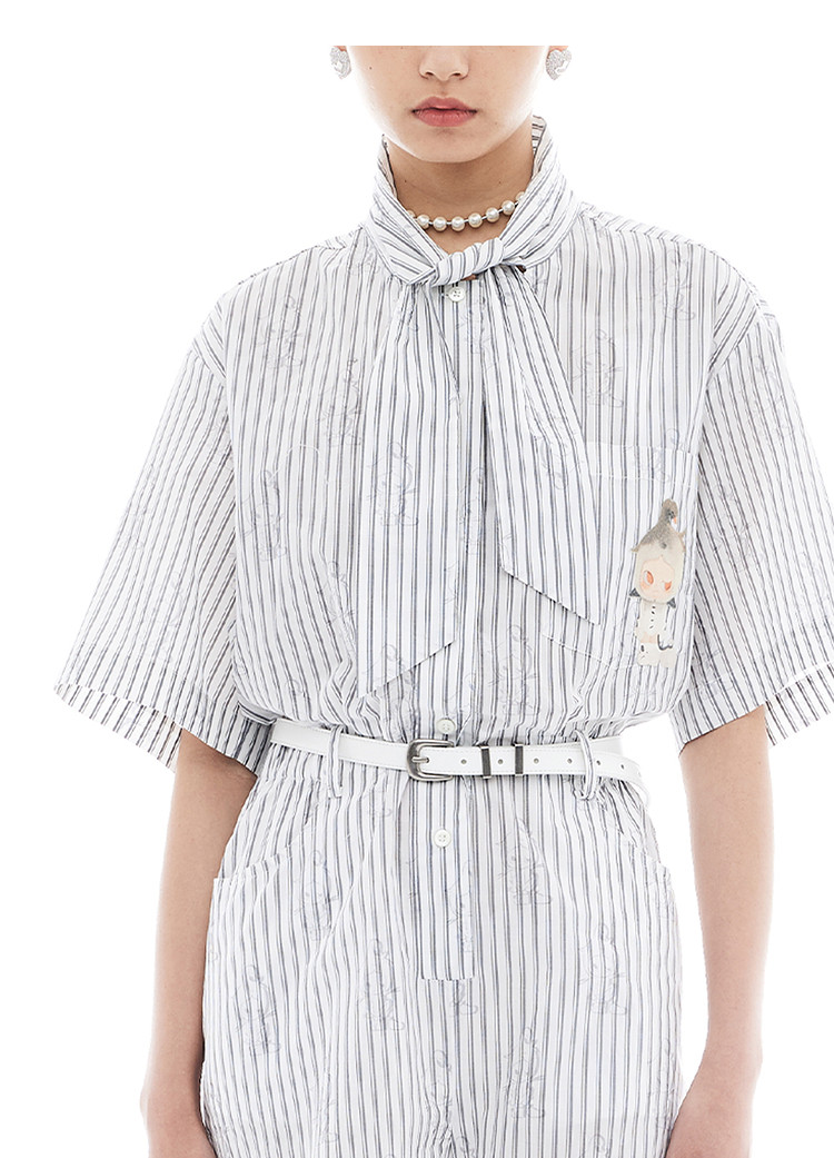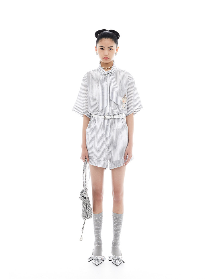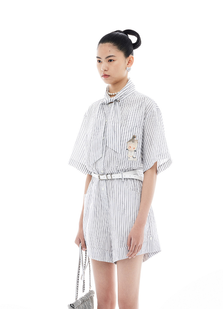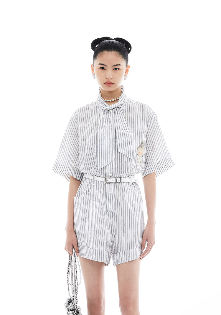 地素泡泡玛特联名连体裤夏季系带领条纹短袖连体短裤女 309707