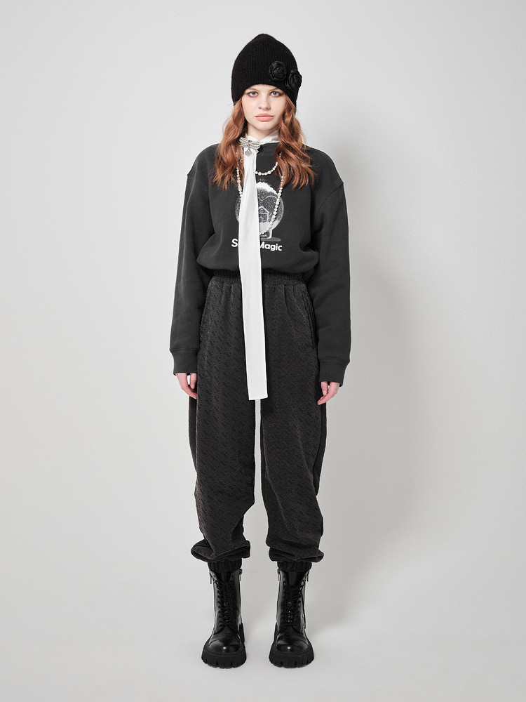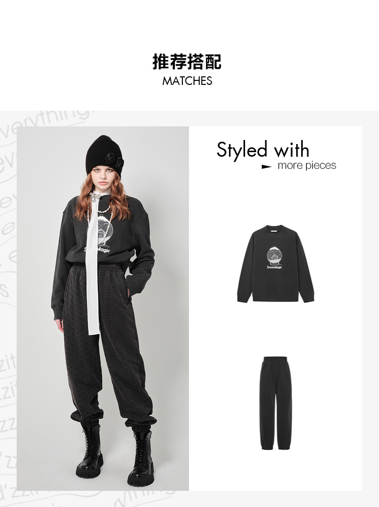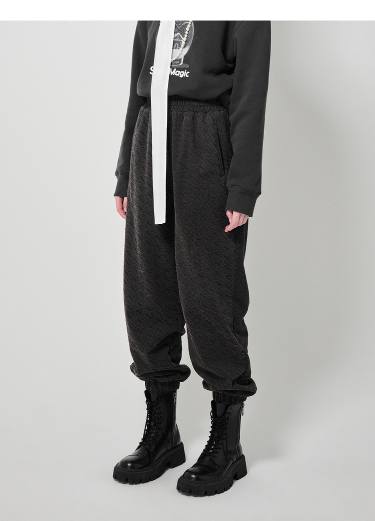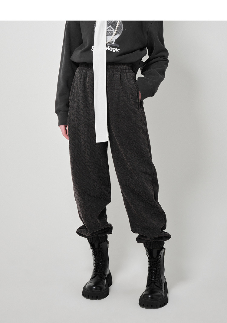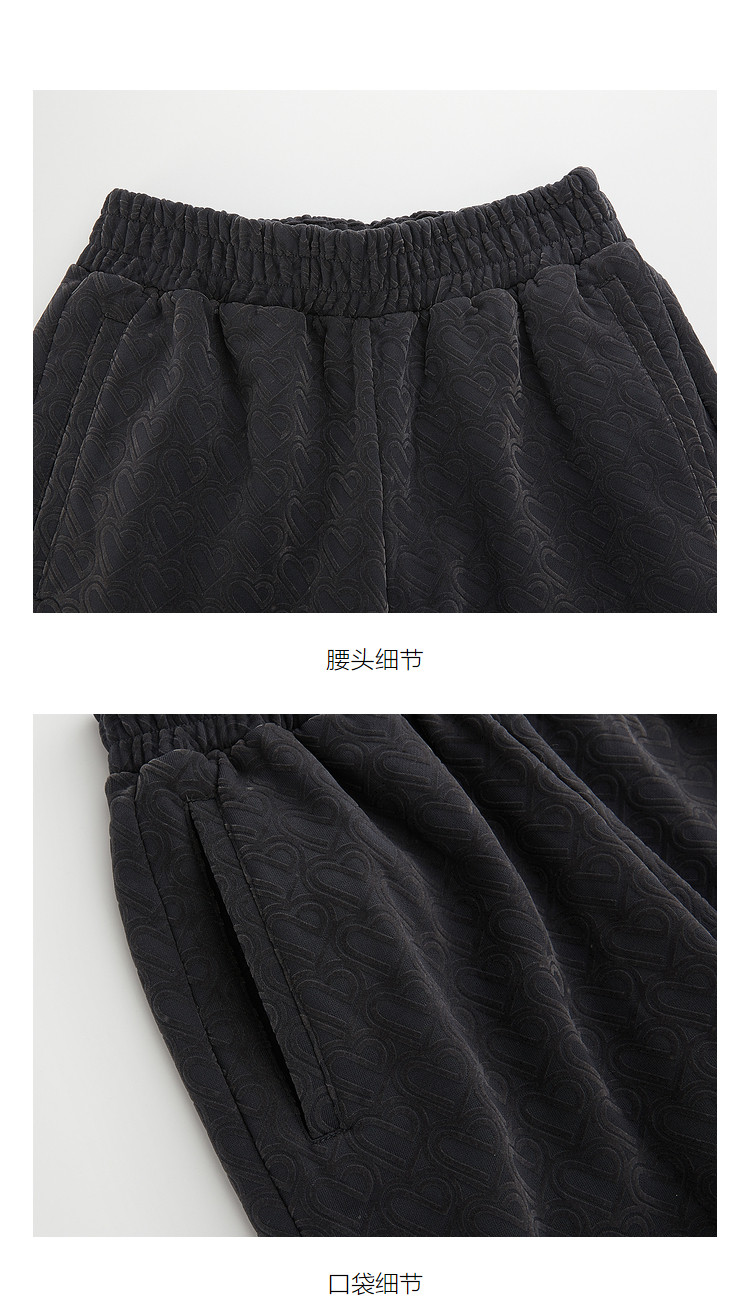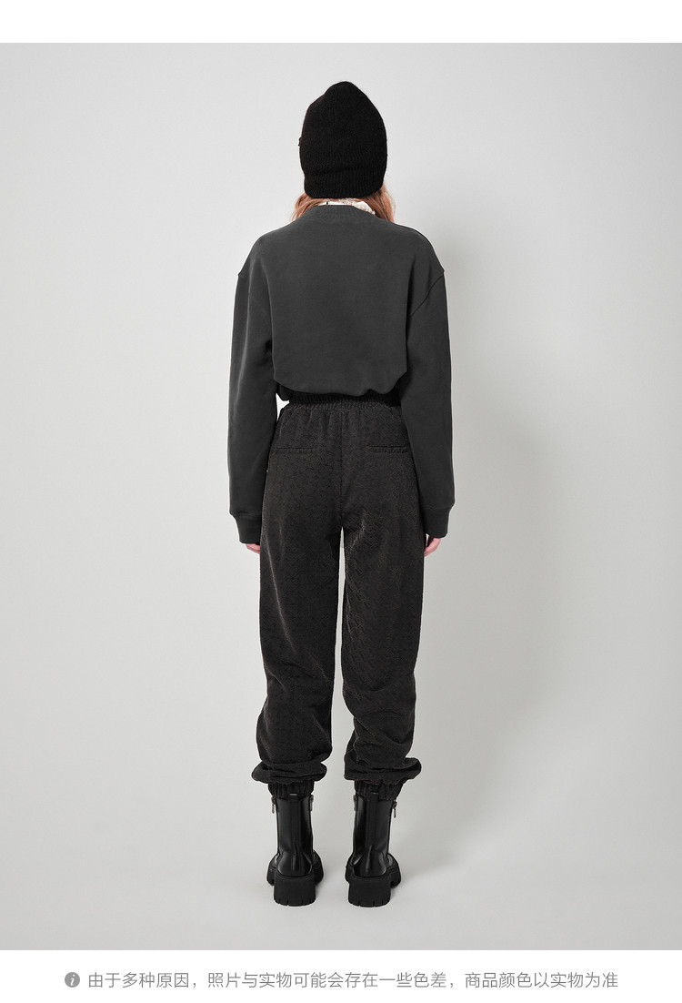 地素加绒植绒卫衣长裤春时尚舒适休闲松紧腰束脚裤女 793163