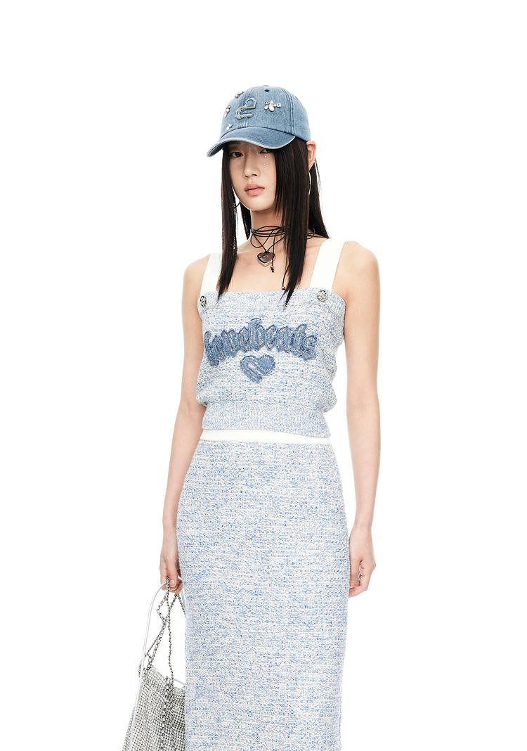 地素针织背心夏季辣妹风贴布烫钻设计上衣女 947083
