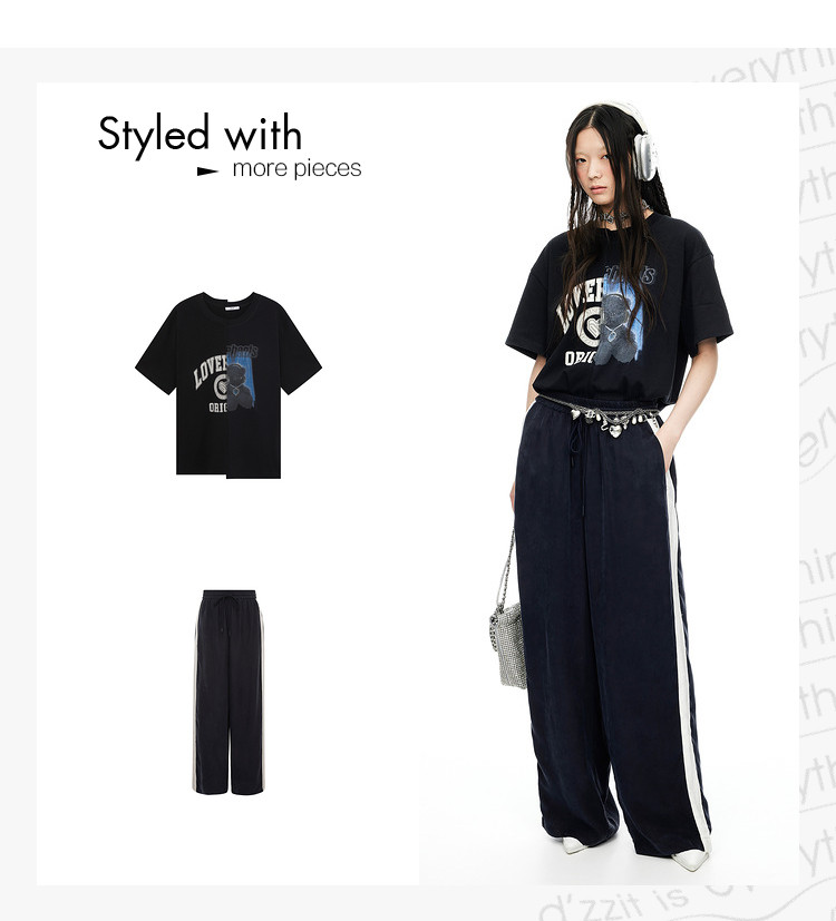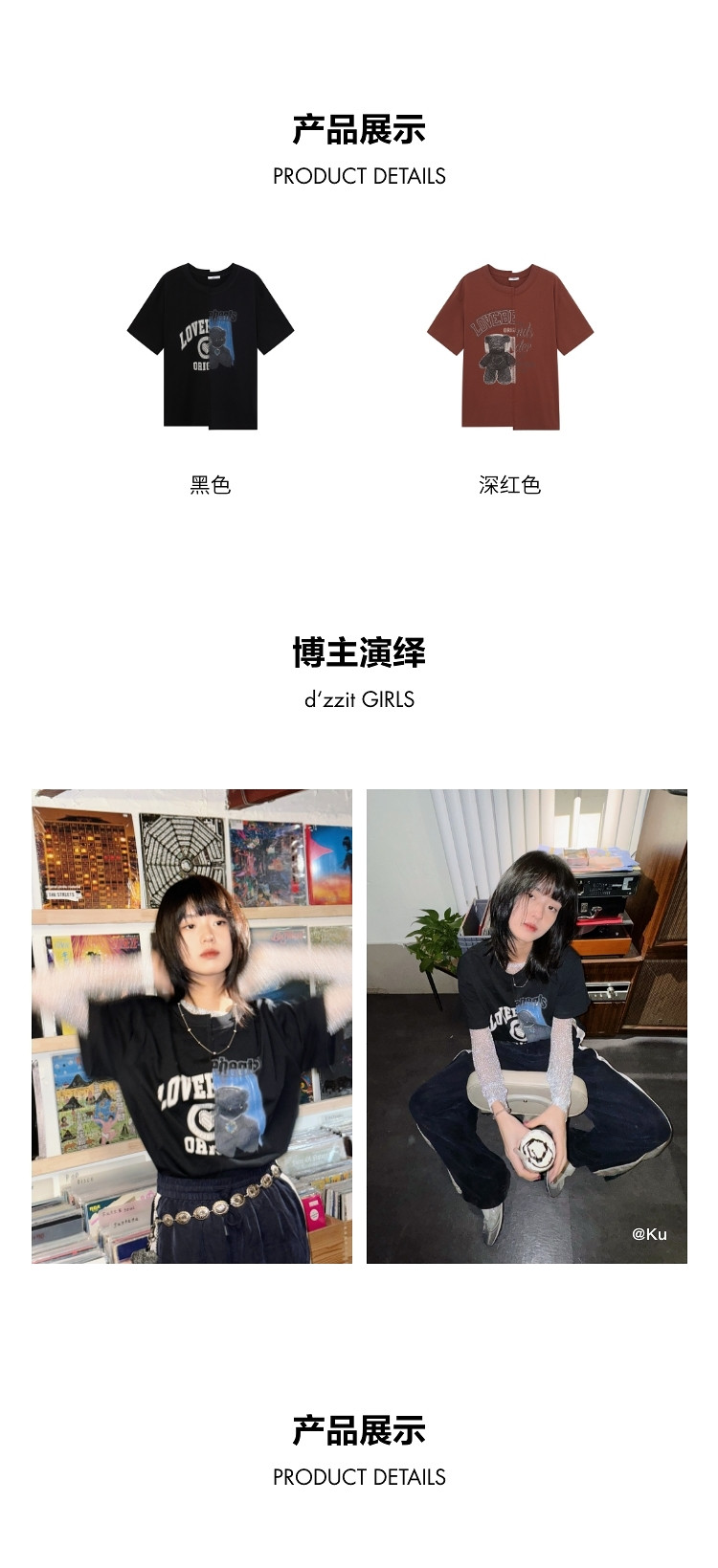 商品名称:地素拼接t恤夏季复古运动风印花半袖上衣女 885643