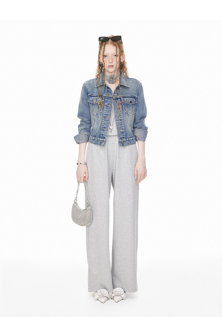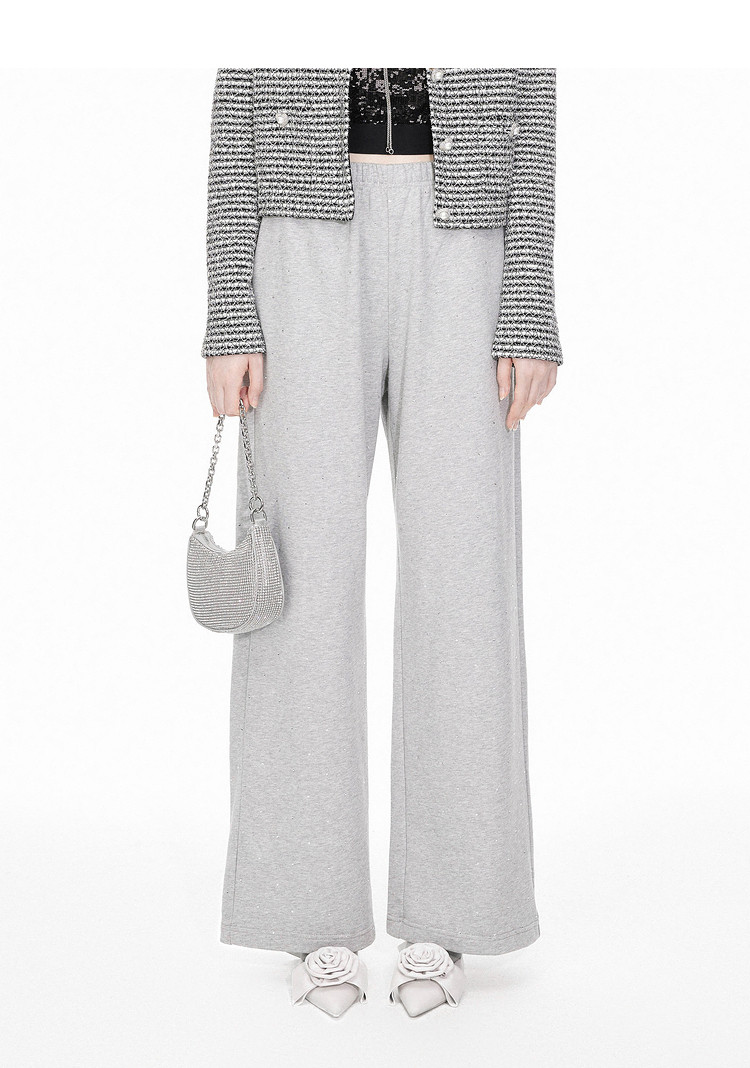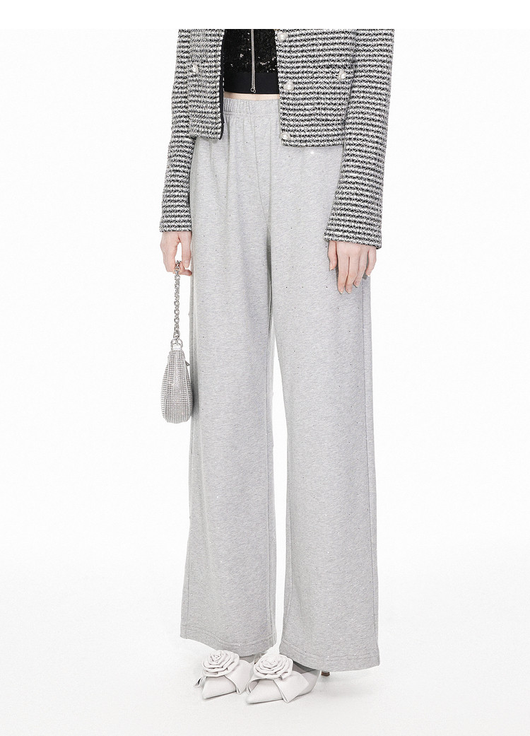 地素烫钻长裤春秋运动休闲棉质阔腿裤女 771723