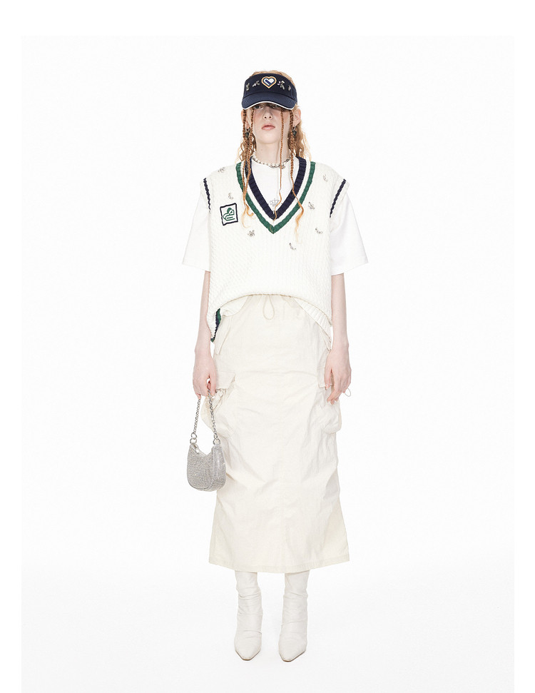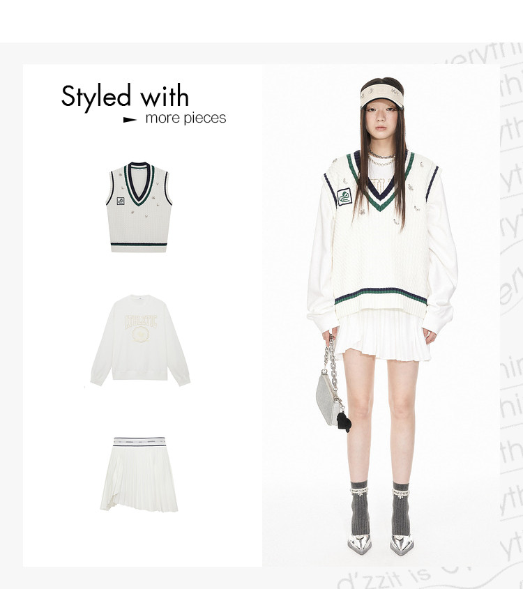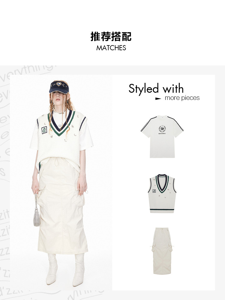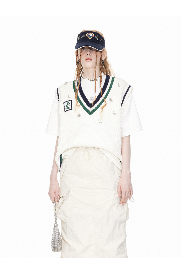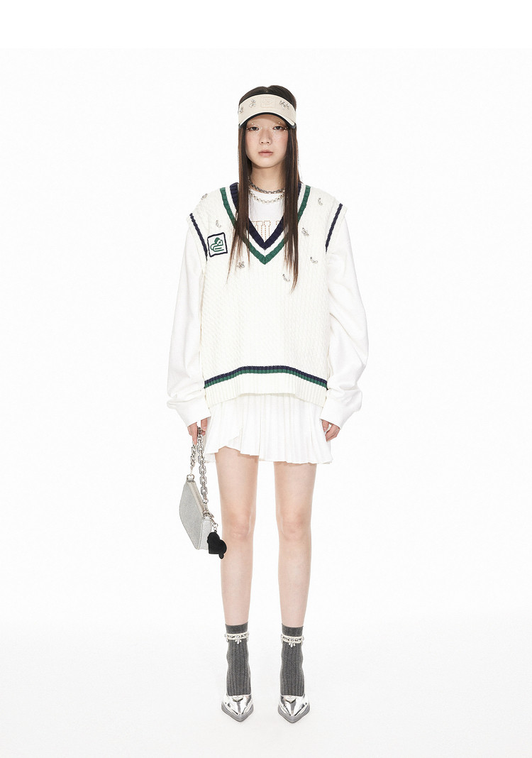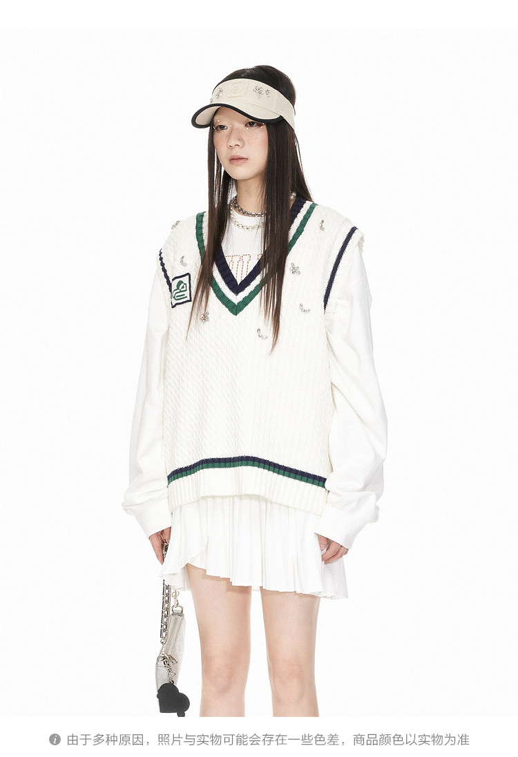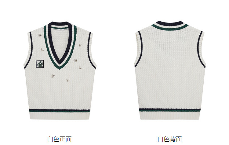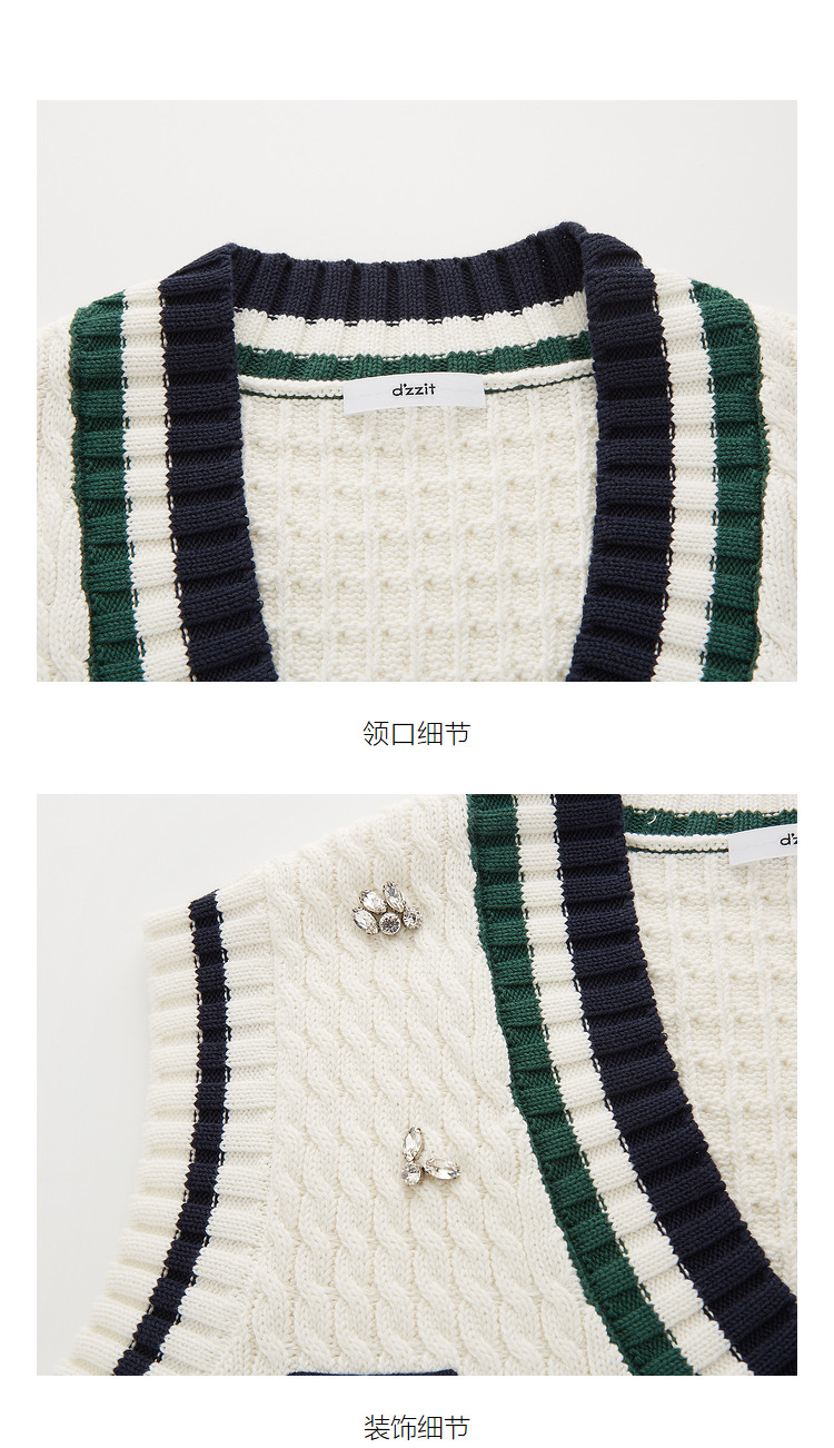 商品名称:地素针织背心春秋学院风缝钻上衣女 181323