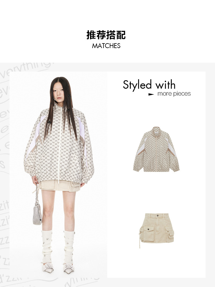 商品名称:地素老花拼色外套夏专柜运动宽松休闲服潮服女 471499