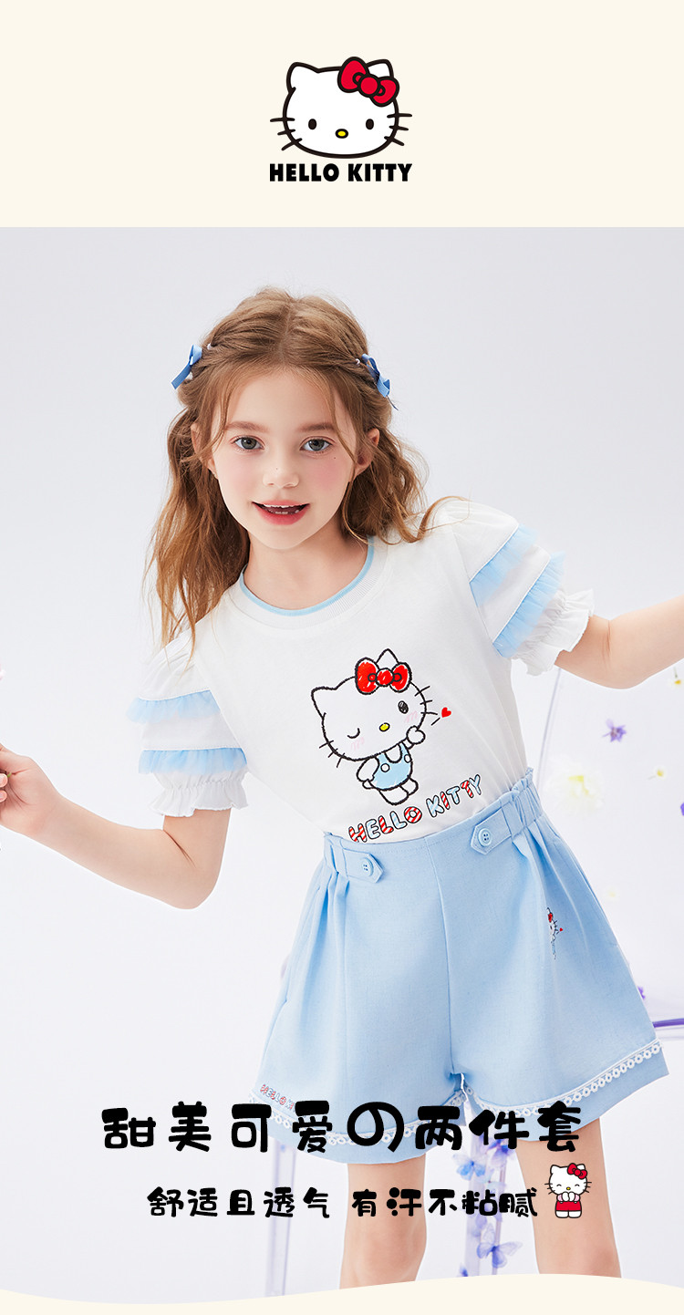商品名称:【女童夏季卡通印花两件套】2025夏新款甜美元气中大童套夏装 304734