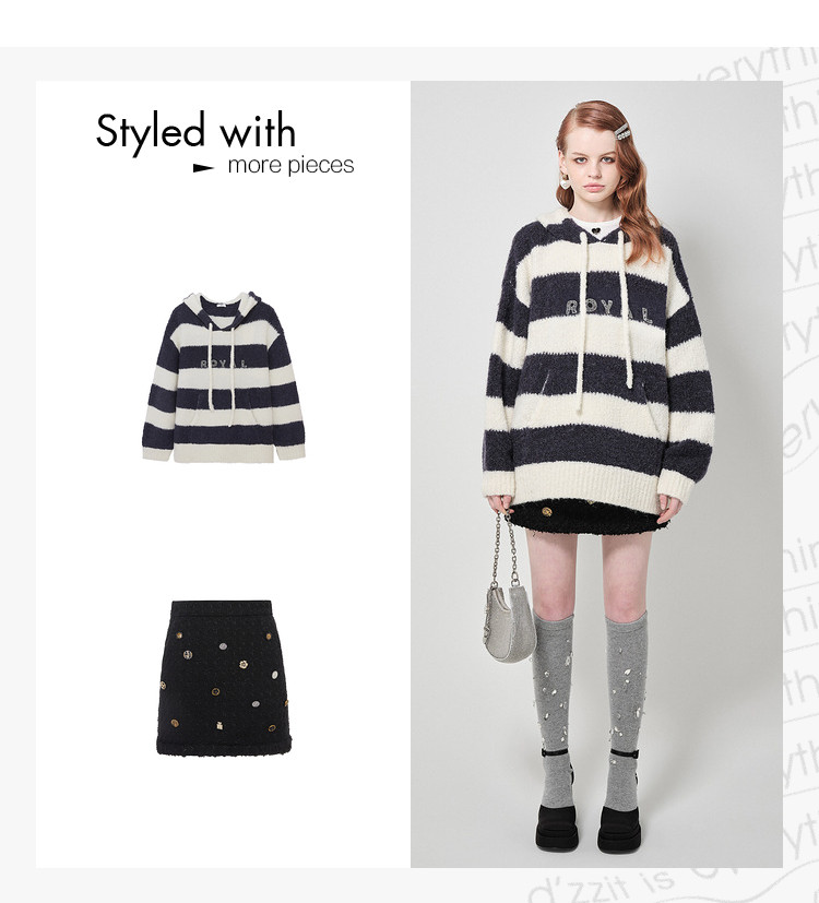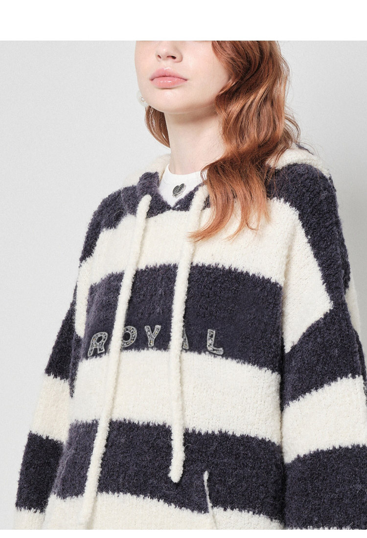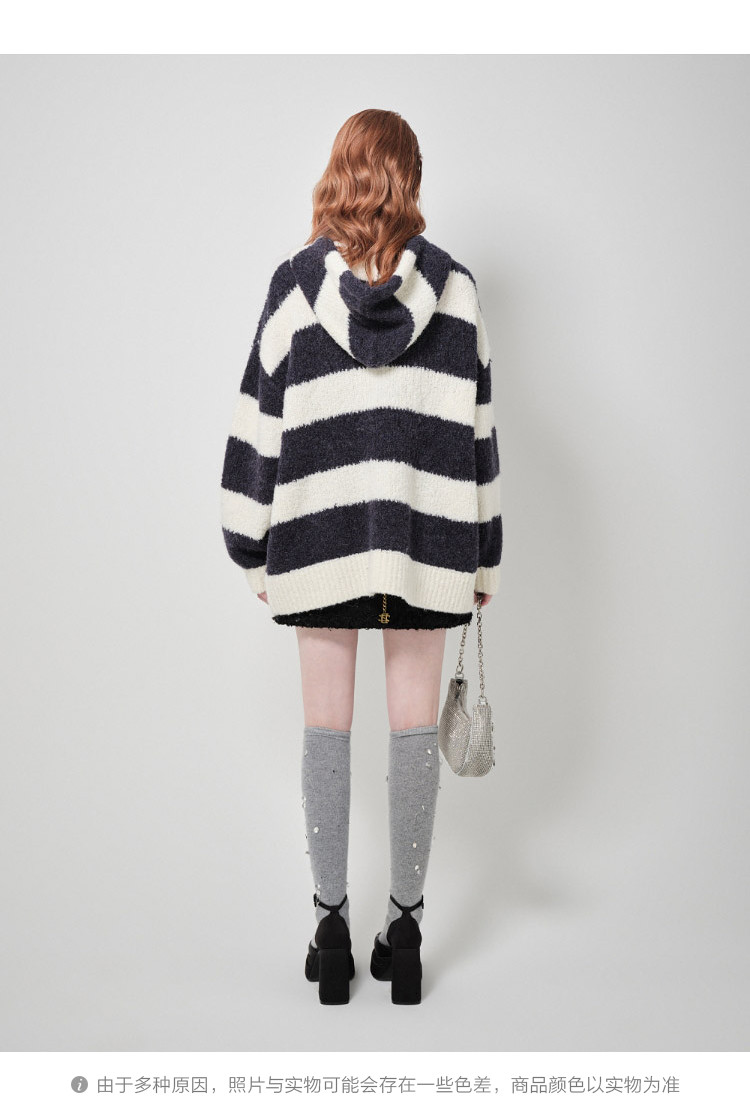 商品名称:地素针织连帽套头衫秋冬季专柜甜酷风多巴胺条纹女 903563