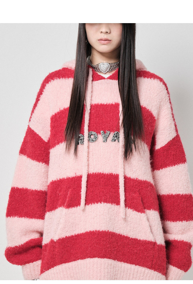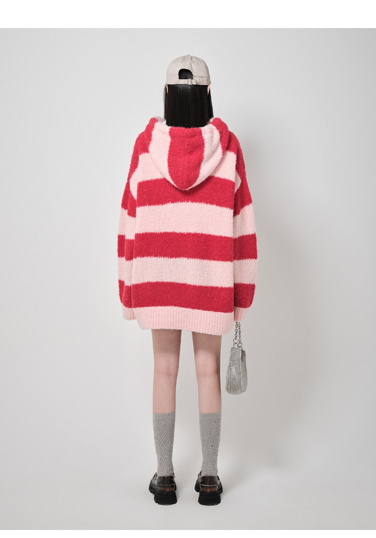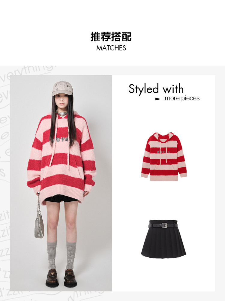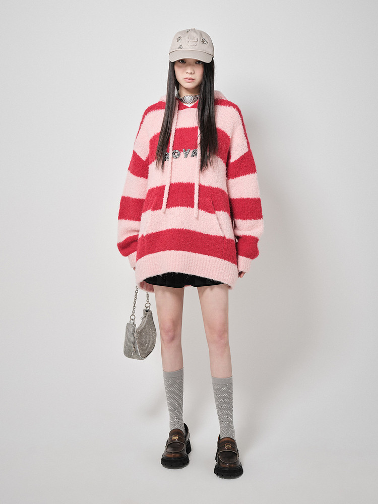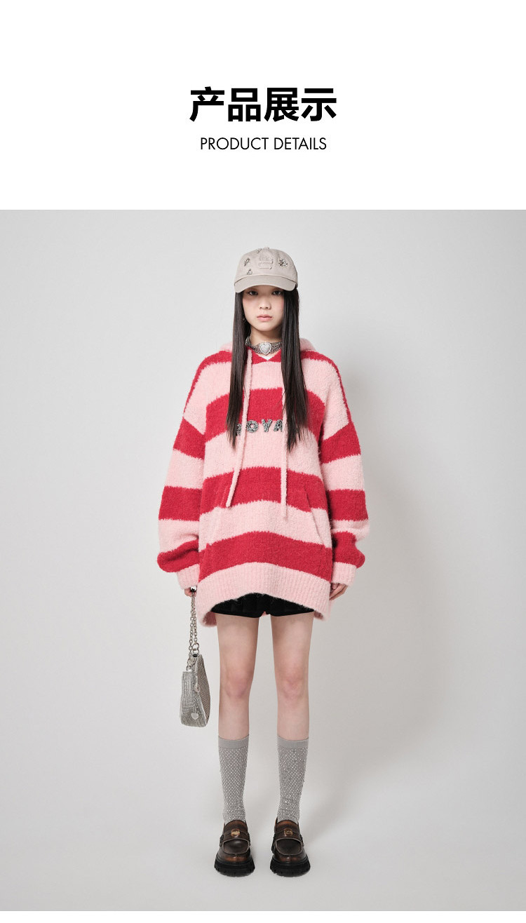 地素针织连帽套头衫秋冬季专柜甜酷风多巴胺条纹女 903563