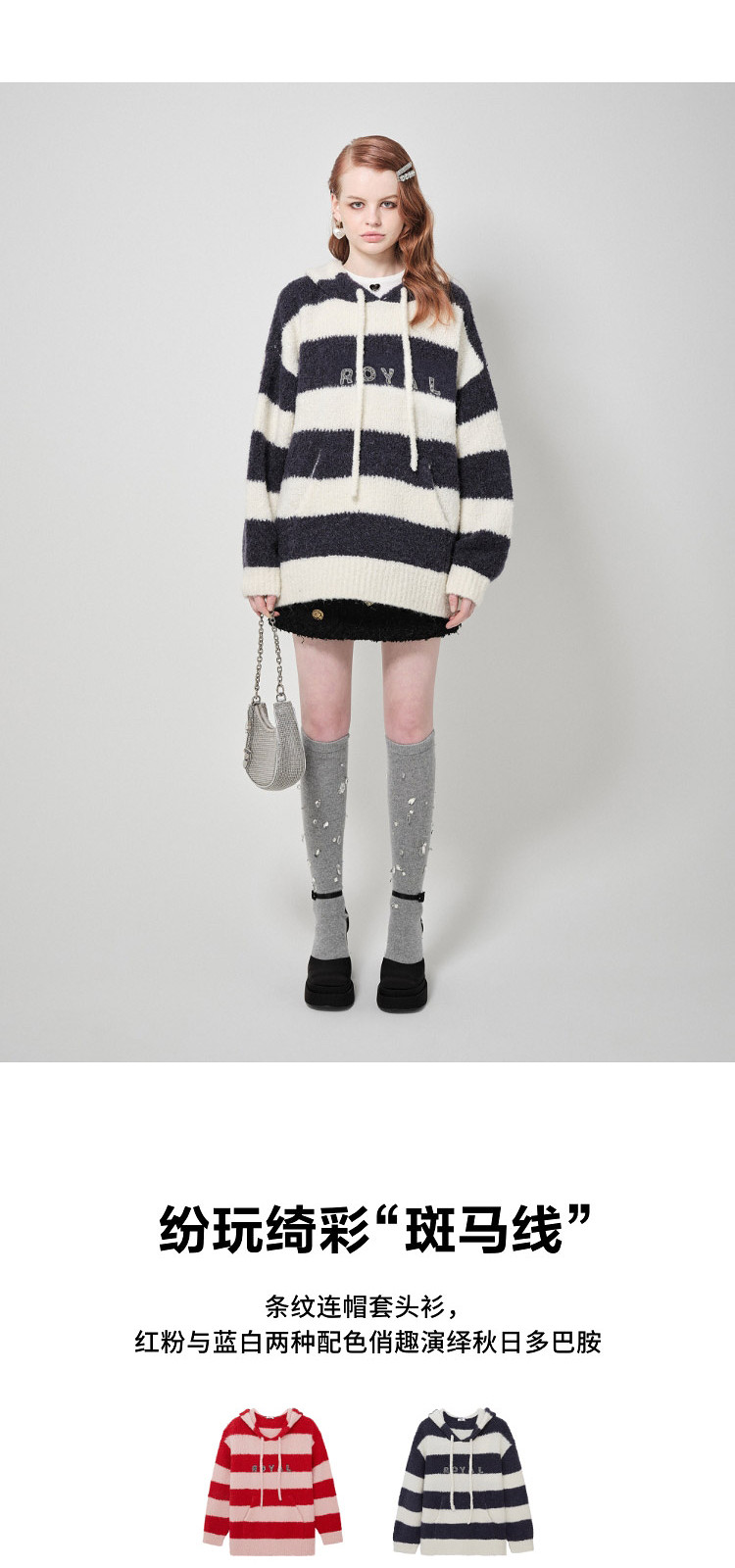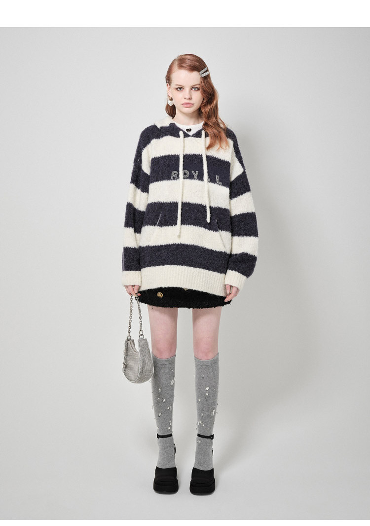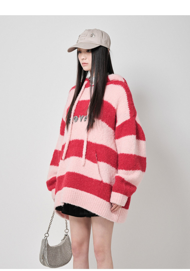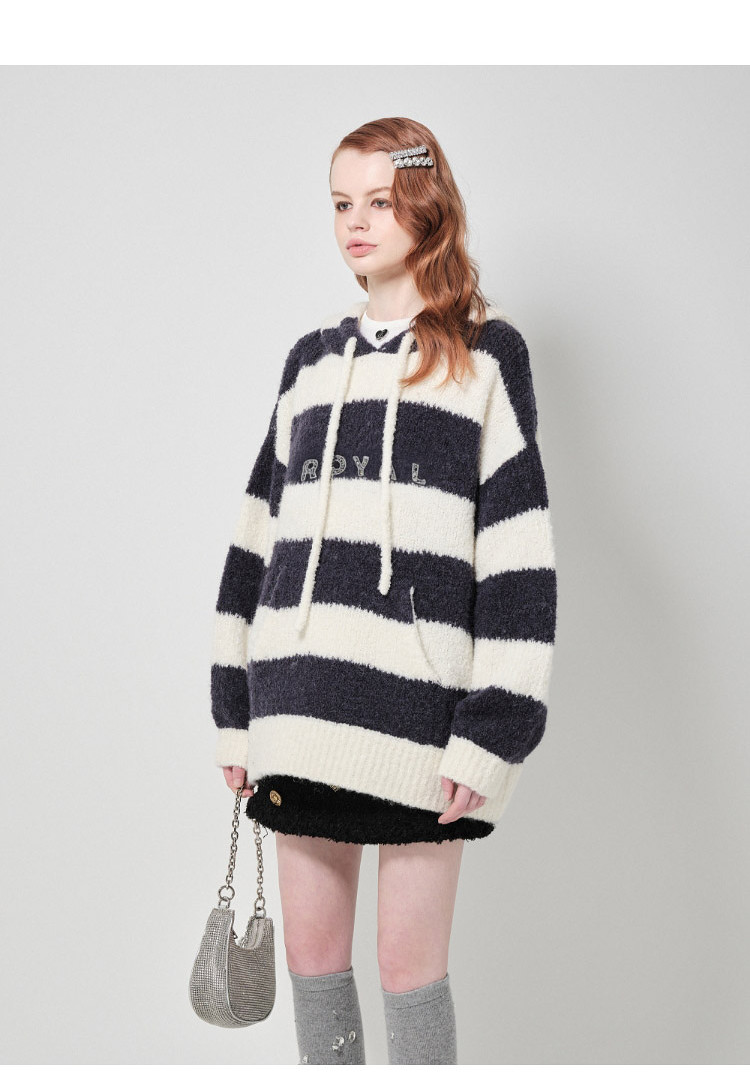 地素针织连帽套头衫秋冬季专柜甜酷风多巴胺条纹女 903563